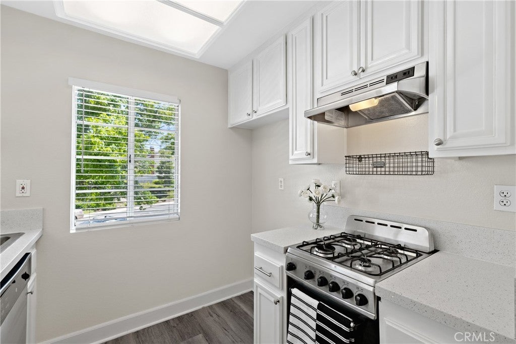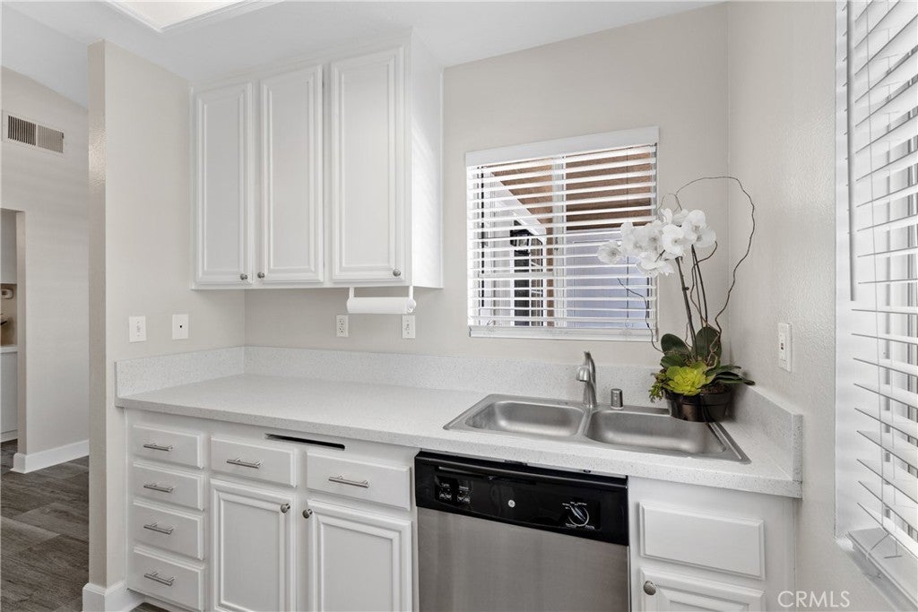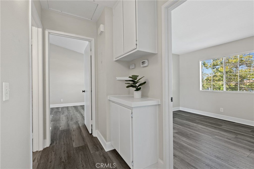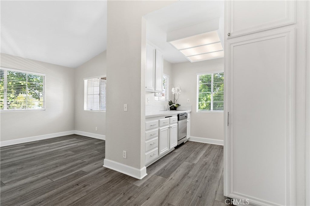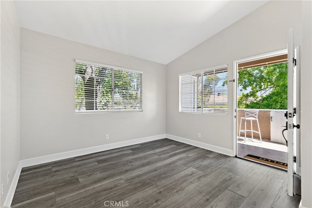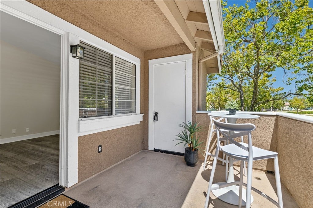 Welcome to this beautifully updated upper-level condo in the heart of Rancho Santa Margarita! This bright and airy two-bedroom, one-bath home features warm neutral-tone laminate flooring, fresh baseboards, and timeless white paint throughout. Enjoy your own private front porch shaded by mature trees—perfect for morning coffee or evening unwinding—with a peaceful view of the Saddleback Mountains in the distance. The kitchen and bathroom shine with sparkling quartz countertops in “Sparkling Ice,” complemented by freshly painted cabinets and modern hardware. Enjoy vaulted ceilings in the living and dining areas that create a spacious, open feel, along with stainless steel appliances and an in-unit stackable washer and dryer for everyday convenience. The private gated entry and dedicated carport offer both security and ease. You'll love the resort-style amenities including a pool, spa, and access to the picturesque RSM Lake. Located in a pet-friendly community that's walkable to schools, shops, and restaurants—and with easy access to the 241 Toll Road—this condo is the perfect blend of comfort, style, and location! Features You’ll Love: • Two Bedrooms, One Bathroom and CORNER / END unit!! • Warm neutral-tone laminate flooring & fresh baseboards • Bright quartz counters (Sparkling Ice!) in kitchen & bath • Freshly painted kitchen cabinets with new hardware • Freshly painted throughout in timely neutral whites • Stainless steel appliances (dishwasher + oven) • Upstairs unit with vaulted ceilings in living room & primary bedroom = airy & inviting • Private gated porch entry + assigned carport #118 • Closest official parking spot PLUS Excess parking on street at Corner • Mirrored closet doors, in-unit stackable washer/dryer • Access to resort-style pool, spa, and RSM Lake & amenities & Super Close to on site Pool! • Pet-friendly (HOA pet restrictions in place) and walkable to schools, shops, and restaurants • Super convenient to the 241 Toll Road Whether you’re upsizing, downsizing, or rightsizing – this cheerful condo is calling your name! Make your move now and be settled in before the holidays begin!