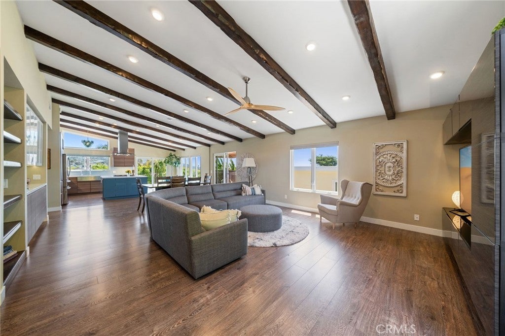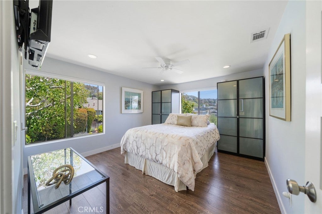 Available June 18, 2026! Experience the epitome of coastal living in this stunning contemporary two-story home with some ocean views! Spanning 2,090 square feet, this meticulously designed residence offers 2 spacious bedrooms and 2 luxurious bathrooms, perfect for those who appreciate both style and comfort. As you step inside, you'll be greeted by a light-filled, open floor plan that seamlessly blends modern design with elegant charm and a peak-a-boo ocean view. The main living area features rich wood floors that extend throughout the space, complemented by highly upgraded cabinetry that offers both functionality and elegance. The gourmet kitchen is a chef's dream, boasting top-of-the-line appliances and ample counter space, ideal for preparing meals. The bedrooms are generously sized, with thoughtful built-ins providing plenty of storage space. The bathrooms are equally impressive, featuring modern fixtures and finishes that create a spa-like atmosphere. Located just a short stroll from the local shops and the iconic Laguna Beach boardwalk, this property combines convenience with the tranquility of coastal living. Don't miss the opportunity to make this ocean-view beauty your new sanctuary. Rate varies based on term. $6,800/month for 6+ month stays, $7,000/month for 2–5 month stays, $7,200/month for 1 month only. Cleaning fee $450, utilities included with $100 credit for gas and electric each.