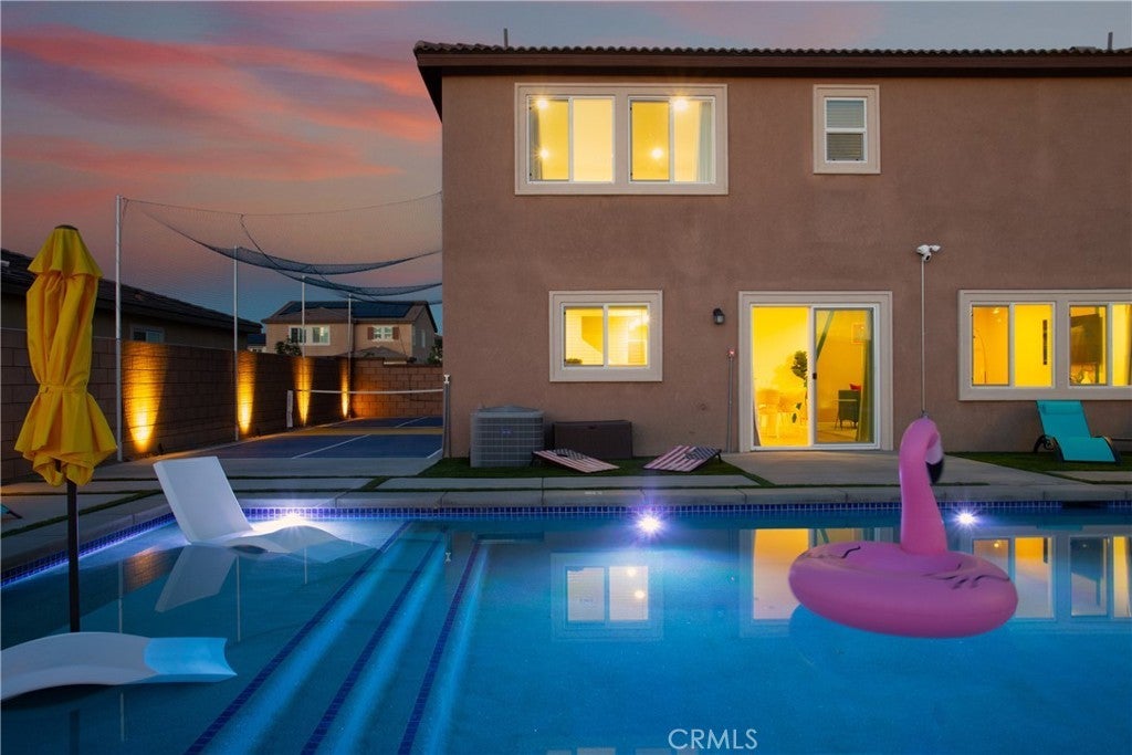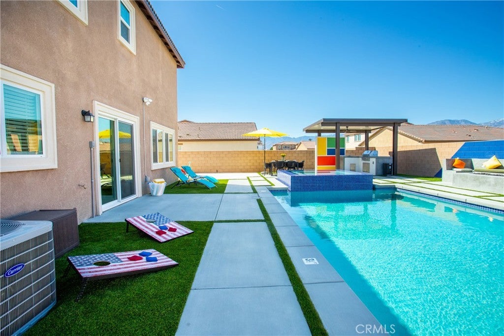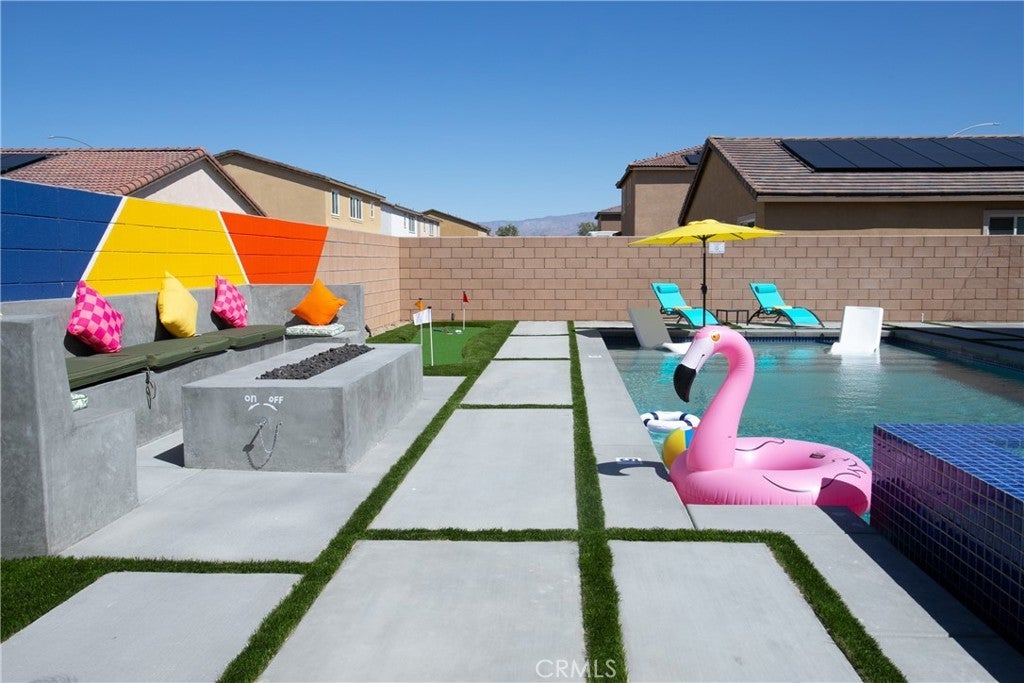 Stunning Coachella Retreat – Built in 2024 by Pulte Homes, this one-of-a-kind residence was designed with style, comfort, and entertainment in mind. Featuring 5 spacious bedrooms, a versatile loft, and 3 contemporary bathrooms, the home sits on a huge lot filled with incredible amenities. Step inside to an open-concept living area flooded with natural light, showcasing a sleek chef’s kitchen perfect for cooking and entertaining. Your private backyard oasis is the ultimate retreat—complete with an oversized saltwater heated pool and spa with tanning shelf, ideal for soaking up the desert sun or enjoying peaceful evenings under the stars. For those who love to entertain, this property is truly unmatched: Epic indoor game room for year-round fun Pickleball court, mini golf course, racing track Outdoor BBQ, dining area, and fire pit for unforgettable gatherings Additional highlights include solar panels for energy efficiency and long-term savings. Whether you’re looking for a move-in-ready primary home or a high-return investment property, this retreat checks every box. Conveniently located just minutes from top schools, golf, parks, and the world-famous Coachella & Stagecoach festivals—plus bordering the city of Indio—this property is truly an all-in-one desert paradise.