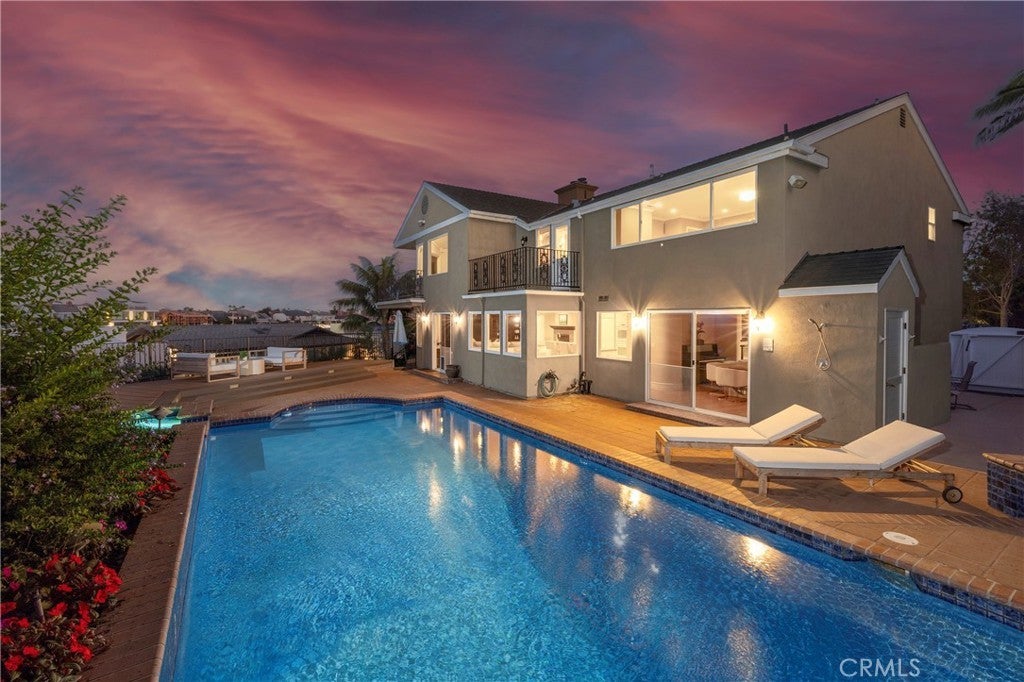 Perched high atop a serene cul-de-sac on Huntington Harbour’s coveted Gilbert Island, this elegant coastal retreat offers breathtaking channel views and the best of Southern California living. Spanning nearly 4,400 square feet, the residence features four spacious bedrooms, including a main-floor suite ideal for guests or multi-generational living. Throughout the home, custom built-ins, rich wood floors, crown molding, and fine finishes create an atmosphere of timeless sophistication. The gourmet kitchen overlooks a resort-style backyard—perfect for entertaining—with a sparkling pool and spa, built-in BBQ/bar, and lush tropical landscaping that captures the essence of a private paradise. Upstairs, the primary suite is a true sanctuary with panoramic channel views, a cozy fireplace, spa-inspired bath, and dual walk-in closets. Two additional guest suites each offer private en-suite baths and generous closet space. Enjoy cool ocean breezes and a lifestyle that blends luxury and leisure—walk or bike to Bolsa Chica Beach and Wetlands, or enjoy nearby dining, shopping, and entertainment just minutes away. A charming park and playground sit just steps from the front door. This remarkable home combines coastal elegance, comfort, and convenience in one of Huntington Harbour’s most desirable enclaves.