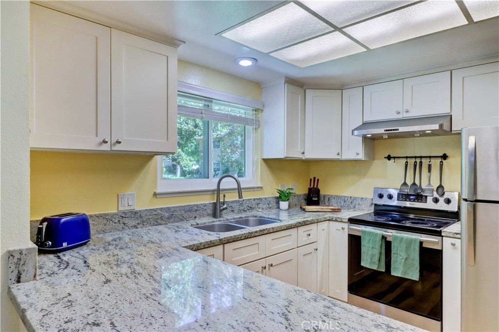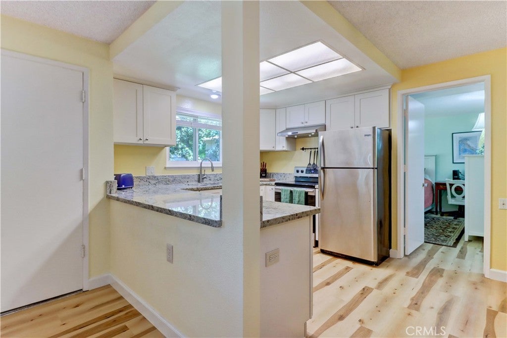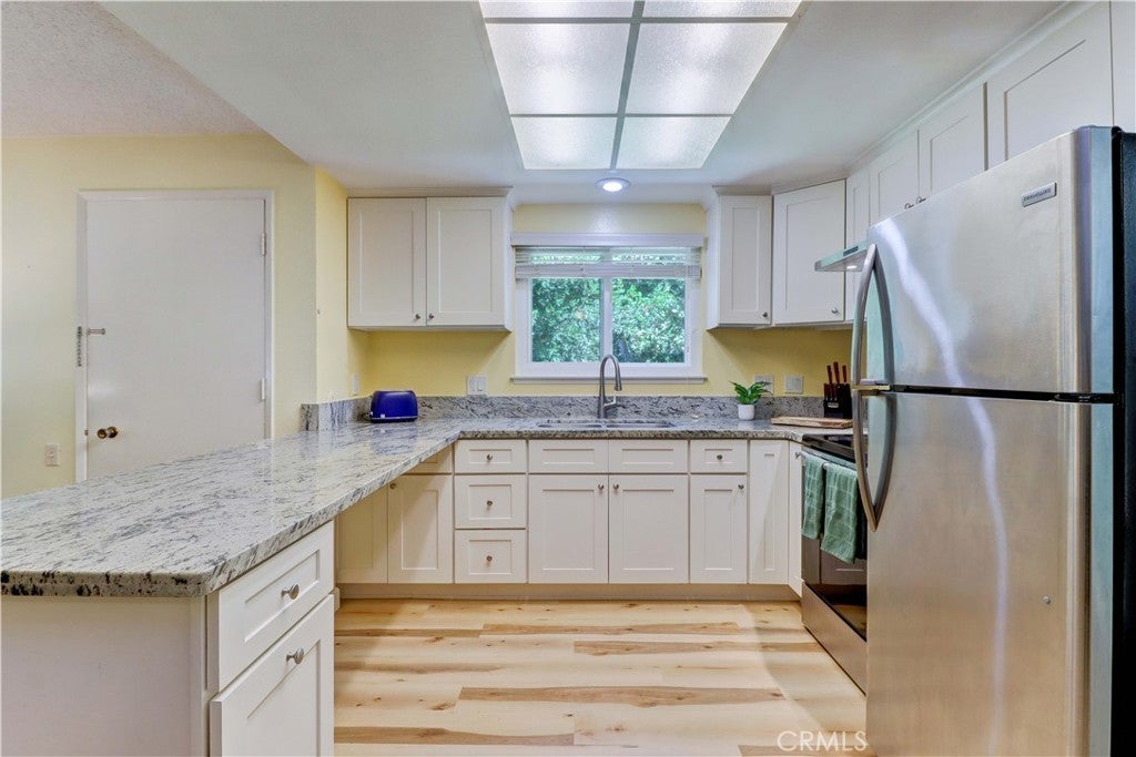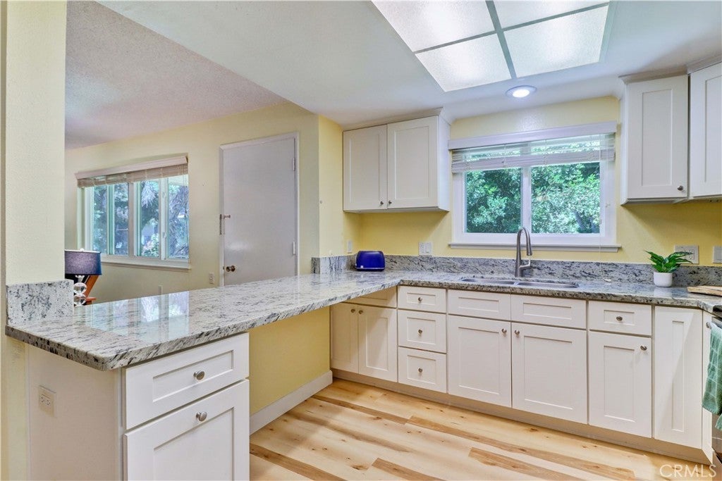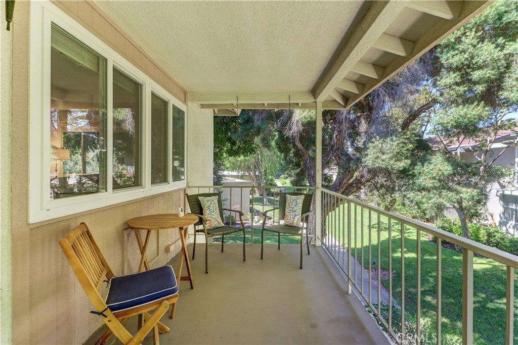 Welcome to this beautifully upper-level Cadiz corner unit, a 1-bedroom, 1-bath co-op located in the highly sought-after 55+ community of Laguna Woods Village. Step inside this airy 770-square-foot layout and you’ll find brand-new wood flooring, fresh finishes, and an inviting sense of openness. Expansive dual-pane picture windows fill the space with natural light while showcasing tranquil views of lush greenery, giving the home an almost “treehouse” feel. The spacious living room opens to a private balcony shaded by mature trees—ideal for relaxing or entertaining. An upgraded kitchen features a granite countertop, new cabinets and stainless steel sink. Both the living room and bedroom include split air conditioning units for year-round comfort. With its modern upgrades, peaceful setting, and fresh, move-in ready condition, this Cadiz model is truly a gem.Beyond the home itself, life in Laguna Woods Village offers the best of resort-style 55+ living. This gated community spans over 2,100 acres with 24-hour security and features two golf courses, five pools, multiple fitness centers, and seven clubhouses. With more than 250 clubs and organizations, an equestrian center, and a performing arts theater, there’s truly something for everyone. Convenient transportation services, nearby shopping and dining, and quick access to Laguna Beach and top medical care make this location both active and convenient.