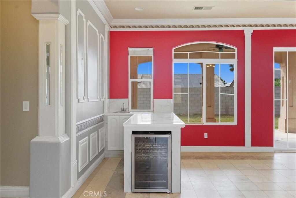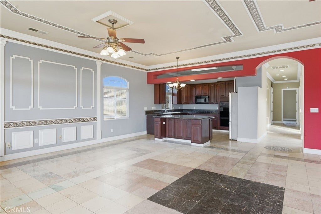 Wet Bar, Breakfast Bar, Breakfast Area, Tray Ceiling(s), Chair Rail, Ceiling Fan(s), Ceramic Counters, Crown Molding, Dry Bar, Separate/Formal Dining Room, Eat-in Kitchen, Granite Counters, High Ceilings, Open Floorplan, Pantry, Paneling/Wainscoting, Stone Counters, Recessed Lighting, See Remarks, Storage, Tile Counters