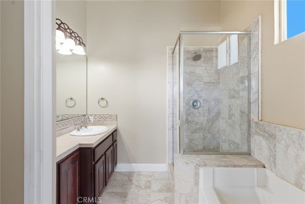 Step inside this stunning Mediterranean inspired retreat in North Bakersfield- refined, & ready for modern living. With over 2,600 sq ft of beautifully designed space, this 3-bedroom, 3-bath home delivers the perfect blend of casual elegance & smart function. A gated courtyard welcomes you in, leading to a split-wing layout that offers both privacy and flexibility. The heart of the home is a massive open kitchen with a statement granite island, custom cabinetry, & seamless connection to the expansive great room and sunny nook/bar flex areas ideal for gatherings or just enjoying daily life. Custom woodwork & tile inlays with statement fireplace bring texture & warmth. While the formal dining room easily doubles as a home office, 4th bedroom or flex space. The oversized primary suite features a gorgeous remodeled bathroom, & both hall baths have been updated with stylish finishes as well. Set on a manageable lot with just the right amount of yard, this home checks every box & style!