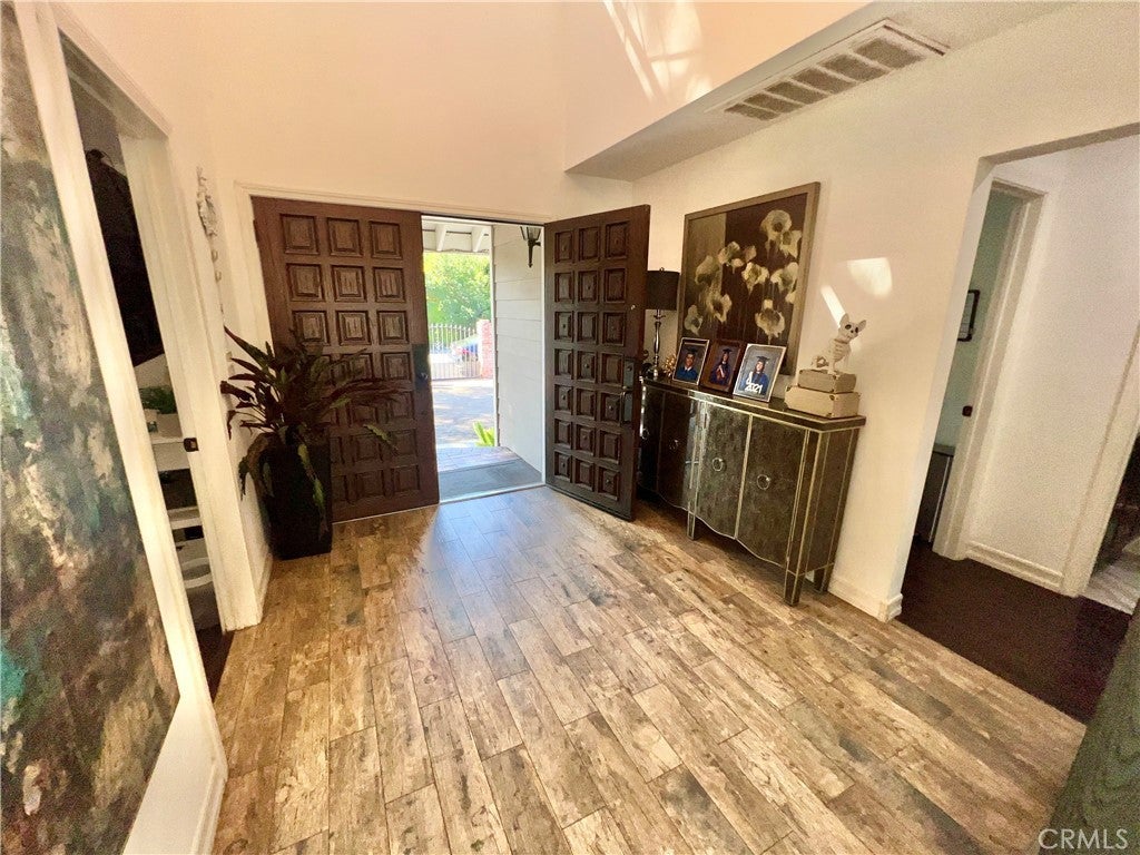 Gorgeous, architecturally stunning home on a peaceful street. Rarely does a property of this caliber come on the market in such a desirable neighborhood, tucked away on a quiet and tranquil street. Situated behind a charming wrought-iron fence on a spacious 13,000+ sq ft lot, this home is truly unique. Originally rebuilt in 2003 and fully remodeled again in 2016, it feels brand new, with soaring 20-foot ceilings, walls of glass, and abundant natural light throughout. The formal entry opens to a spacious living room and an impressive dining area featuring walnut floors and custom-built-in cabinets. The brand-new gourmet chef’s kitchen, equipped with top-of-the-line appliances, flows seamlessly into the oversized family room, which boasts stunning views of the lush backyard. Outdoor spaces feature mature shade trees, a koi pond, and plenty of room for entertaining—or even adding a pool. An oversized garage with a bonus room or office, RV access, and space for more than five cars, all behind a private gate, offers unparalleled convenience. The primary suite is a retreat, complete with a loft area, a massive walk-in closet, and a private balcony overlooking the beautiful yard. Additional highlights include recessed lighting, abundant storage, and a flexible floor plan designed for comfort and style.? Don’t miss this rare opportunity—it won’t last long!
