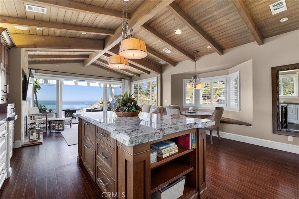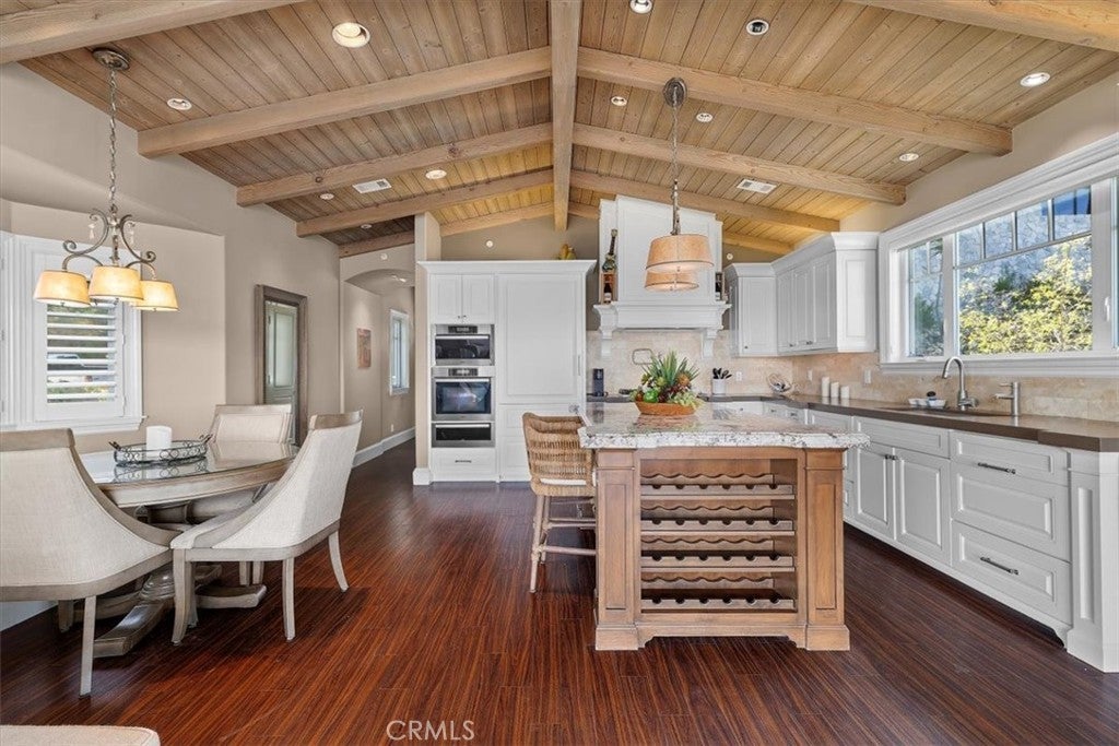 Beamed Ceilings, Breakfast Bar, Built-in Features, Balcony, Crown Molding, Cathedral Ceiling(s), Coffered Ceiling(s), Eat-in Kitchen, Granite Counters, High Ceilings, Open Floorplan, Pantry, Paneling/Wainscoting, Quartz Counters, Recessed Lighting, Storage, Unfurnished, Wired for Data, Wired for Sound, All Bedrooms Down, Dressing Area