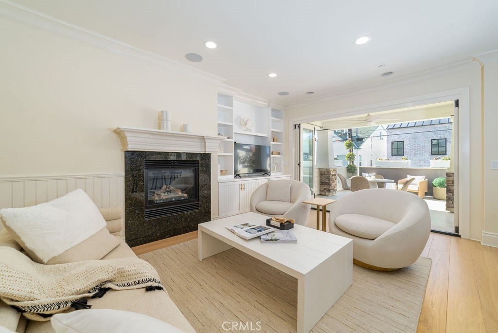Welcome to the fabulous Flower Sreets of Corona Del Mar! This stunning beautifully fully furnished Craftsman-style home, inspired by Montage Resort, boasts a unique corner location that enhances its bright and airy ambiance, and ideally located just a short stroll from world famous beaches, shops and restaurants. No detail was overlooked in its construction, ensuring an exceptional ocean-close living experience with top-tier materials and craftsmanship. The home features La Cantina bi-fold doors that open up to a spacious covered loggia, perfect for seamless indoor-outdoor entertaining. The upper deck off the master suite offers breathtaking views of the city lights, ocean, and dreamy sunsets. With only one shared wall between the front unit's garage and this unit's stairwell, privacy is a key benefit. Inside, the gourmet kitchen is a chef's dream, complete with a center island breakfast bar, granite countertops, a travertine backsplash, shaker-style cabinets, a built-in refrigerator, and high-end appliances, including a wine unit. The main living area is adorned with cherry floors and a cozy fireplace, creating a warm atmosphere.On the top floor, the spacious master suite features vaulted plank ceilings and French doors leading to the upper deck. The master bath includes a fireplace, a luxurious spa tub, dual glass sinks, and a generous walk-in closet. The home also has a beautiful foyer that leads to two additional bedrooms, a full bathroom, and a separate laundry room. Additional highlights include central A/C and an attached two-car side-by-side carport—no tandem parking here! With three bedrooms, this unit offers a unique advantage. Don't miss out on this immaculate property in a Coveted Destination.