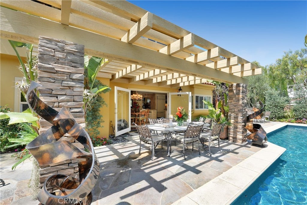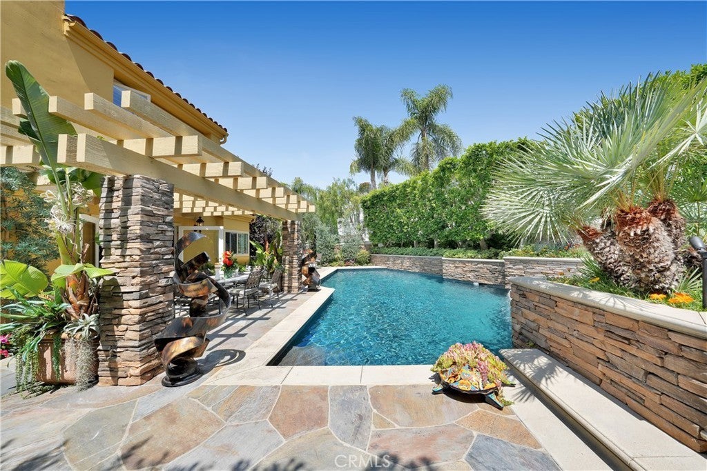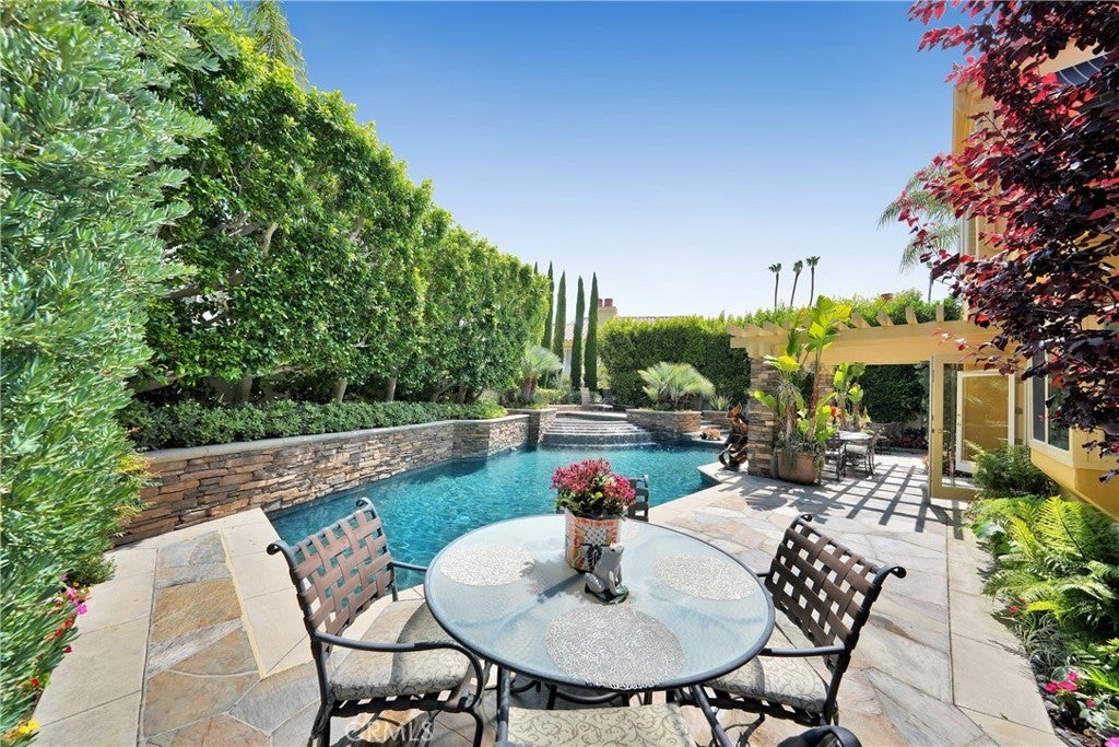 Must see! Don't miss out! "Breathtaking Home" available in Newport Canyon Community - Prime Location!! Showcasing one of the largest backyards in the entire community. The highlight of this home is the gorgeous pool, spa and running fountains! Experience comfort, sophistication, and the pride of a prime neighborhood in this beautifully maintained 3-bedroom home with a loft (optional fourth bedroom) on a private cul-de-sac. Offering 2,432 sq ft of refined living, this residence showcases a substantial investment in custom mill work, Lauzen wood floors, Wood-Mode custom built-in cabinetry, new windows and French doors with 1/2 inch single pane glass and V-groove etching, custom leaded glass throughout. The high-end kitchen is equipped with a Sub-Zero refrigerator and an industrial Dacor eight-burner oven, perfect for the culinary enthusiast. Step outside to a stunning backyard retreat with a sparkling pool, spa and tranquil running fountains surrounded by lush, beautifully landscaped grounds-perfect for relaxing and entertaining. The outside bar seats 10 comfortably. Built-in Dacor BBQ, burners, refrigerators, and mature vegetation. The front landscaping enhances the inviting curb appeal, reflecting the care and pride found throughout the home. Additional highlights include a garage with custom cabinets and overhead storage. With proximity to John Wayne Airport, award-winning beaches, top-rated schools, and easy freeway access, this rare opportunity offers a well-cared-for home ready for you to enjoy, blending sophistication, exceptional location, and the warmth of a truly special property.