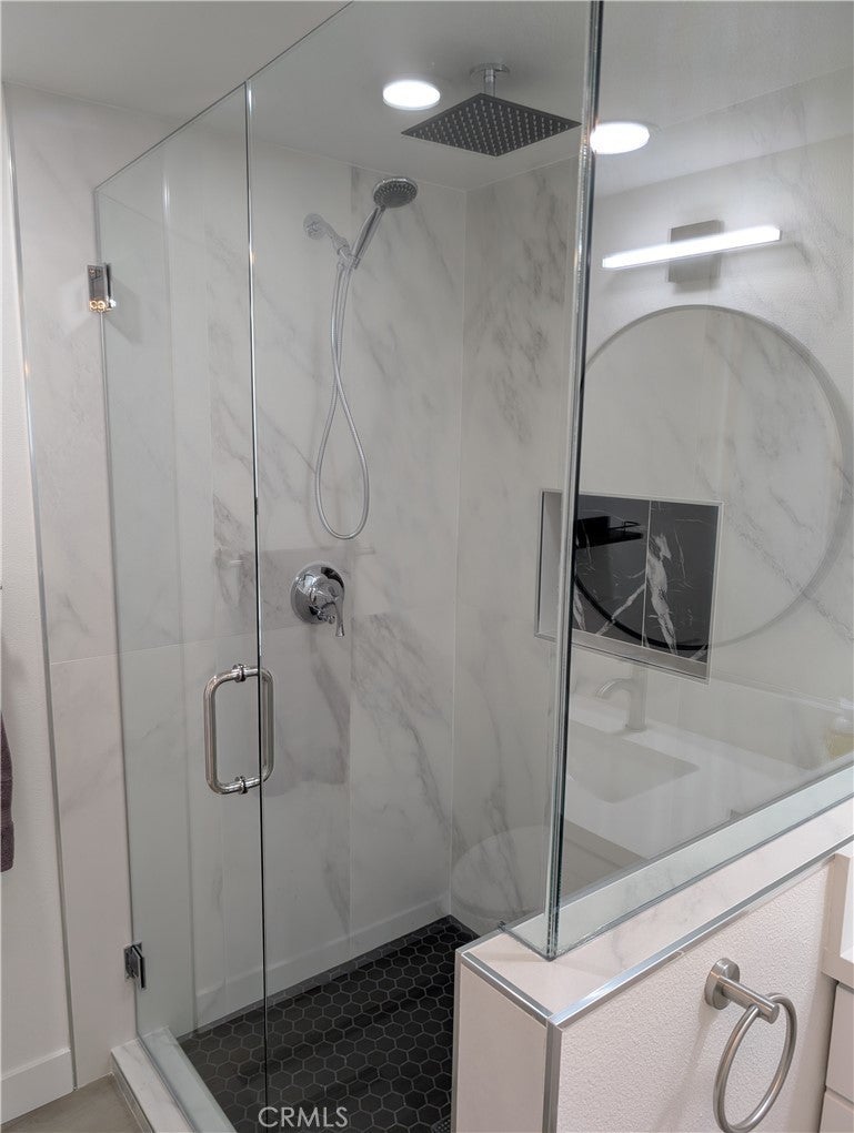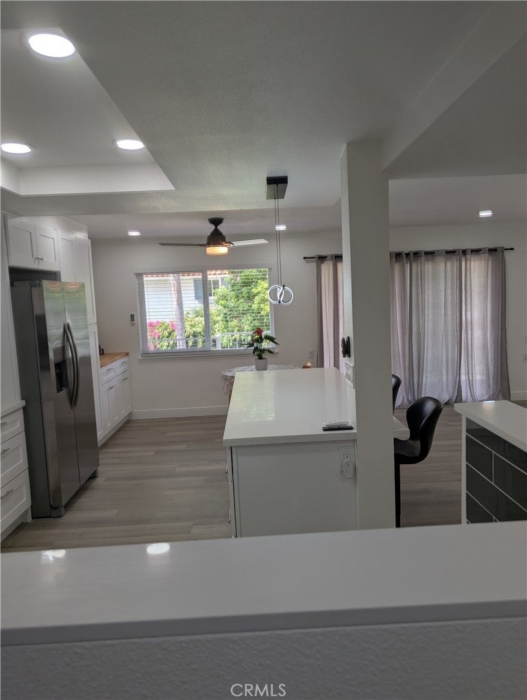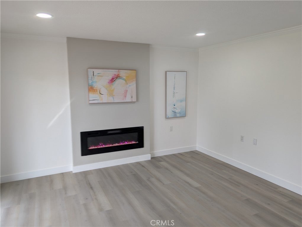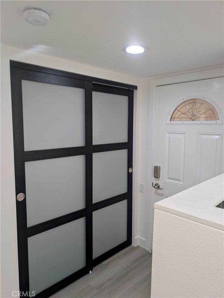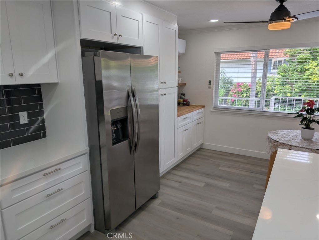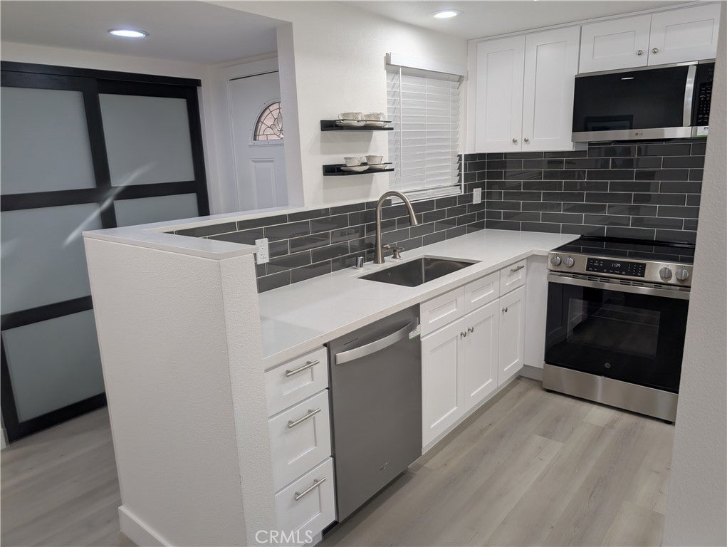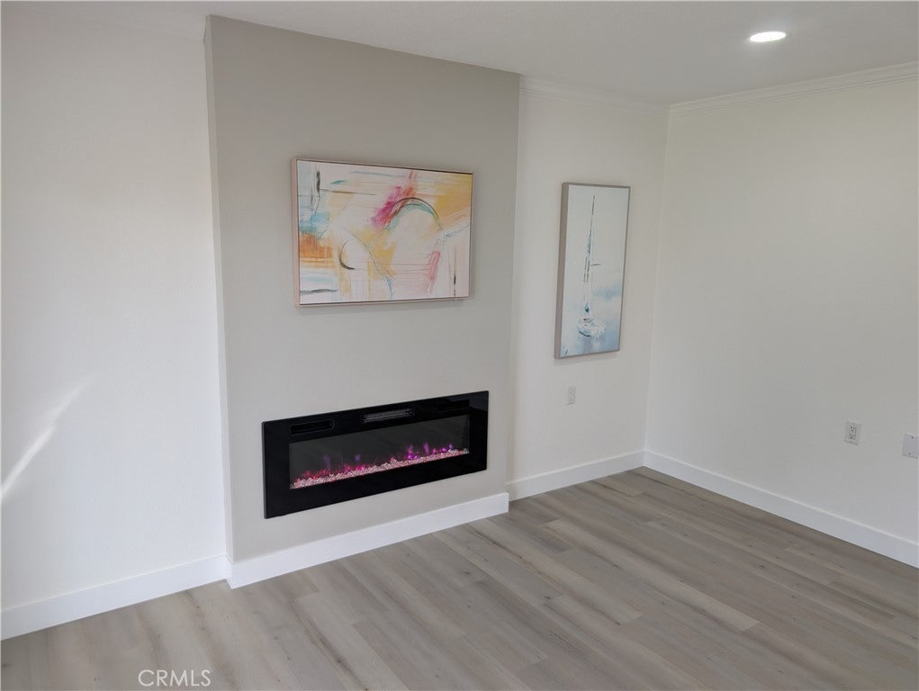 Welcome to your dream home in the heart of Laguna Woods! This extensively remodeled 2-bedroom, 2-bathroom condo is a masterpiece of modern design, offering unparalleled style, comfort, and functionality in a vibrant community. Step into a bright and airy open-concept living space, accentuated by light-toned paint that creates a fresh and inviting atmosphere. The interior features stunning mahogany-style doors with glass accents, adding a touch of elegance and allowing natural light to flow seamlessly throughout the home. The gourmet kitchen is a showstopper, designed to be both aesthetically pleasing and functional. It boasts sleek white cabinetry, brand-new stainless steel appliances—including a full-size refrigerator and a sophisticated slide-in oven—and a chic, gray-toned floor that exudes contemporary flair. A large kitchen island offers extra counter space and seating for bar stools, making it perfect for casual dining or entertaining. A dedicated coffee area adds convenience to your morning routine, while abundant storage ensures everything has its place. The adjacent dining area, complete with a ceiling fan for added comfort, flows effortlessly into the spacious living room. Here, an electric fireplace creates a cozy ambiance, making it the ideal spot for relaxing or hosting guests. Both bedrooms are generously sized, each equipped with a ceiling fan for optimal comfort. The primary suite offers a private retreat, while the second bedroom is versatile enough for guests or a home office. Two beautifully remodeled bathrooms complement the home’s modern aesthetic with their thoughtful design. Practicality meets luxury with a full-size stackable washer and dryer, a highly efficient central AC system to keep you cool year-round, and a nice-sized balcony perfect for enjoying morning coffee or sunsets with views of the Laguna Woods community. This condo is more than just a home—it’s a lifestyle. With access to Laguna Woods’ world-class amenities, including golf courses, pools, and social clubs, this impeccably remodeled gem offers the perfect blend of elegance and convenience. Don’t miss your opportunity to own this stunning residence—schedule your private tour today!