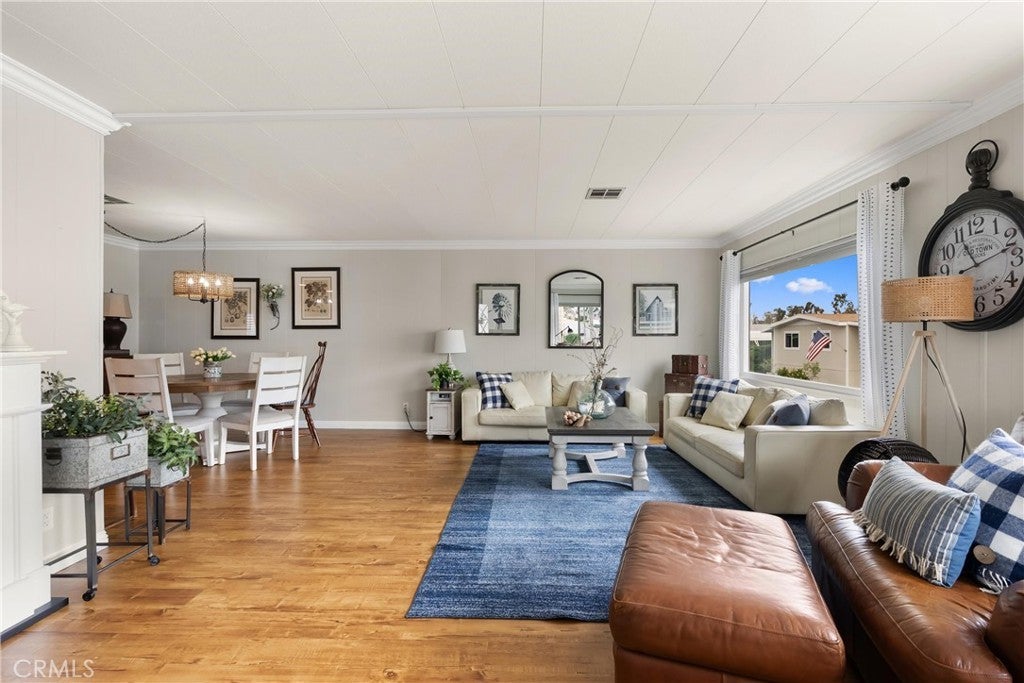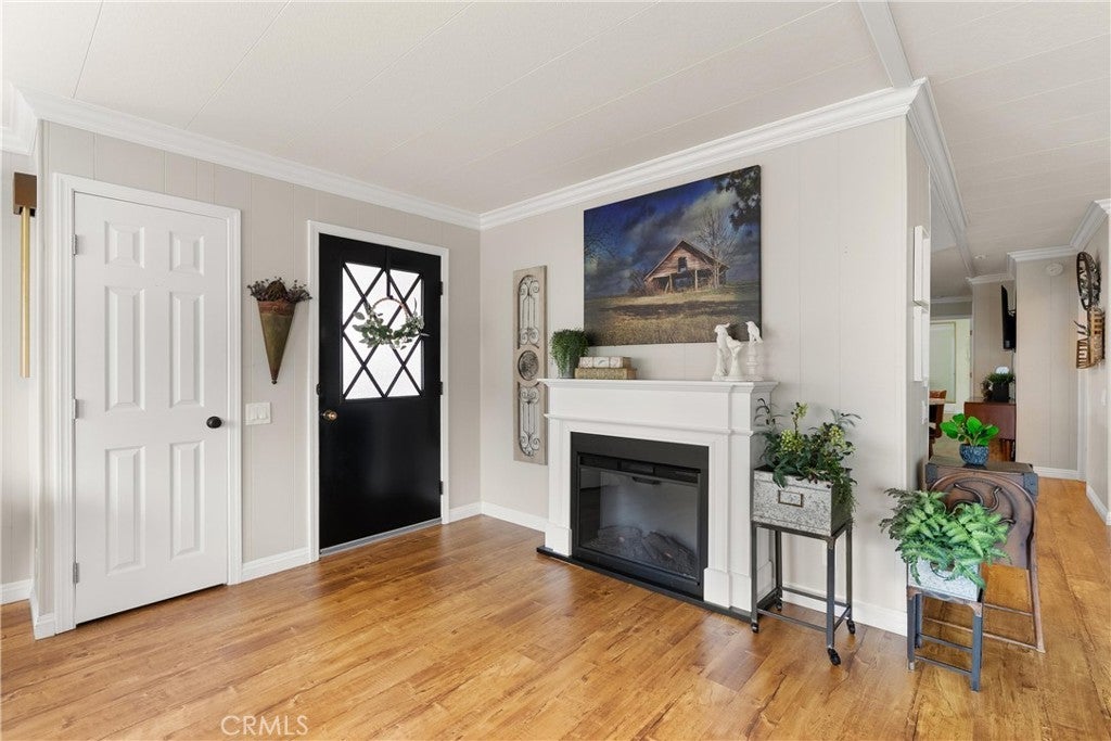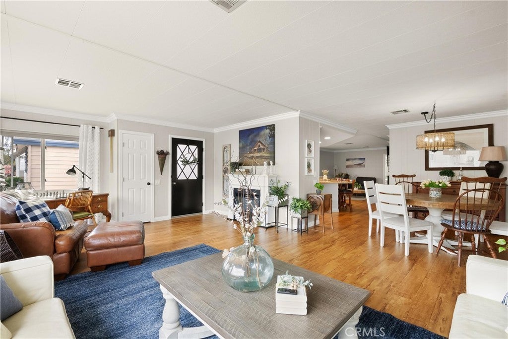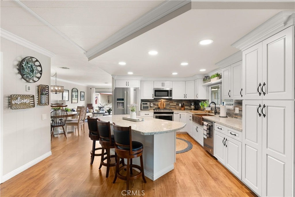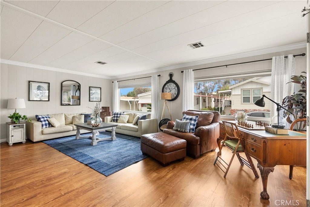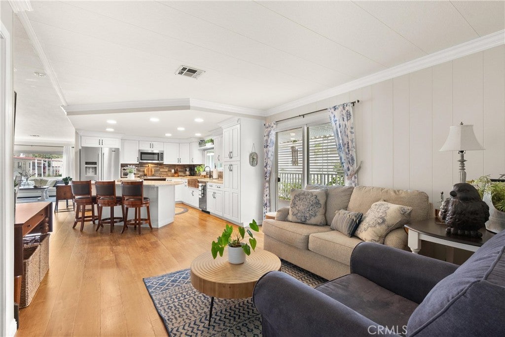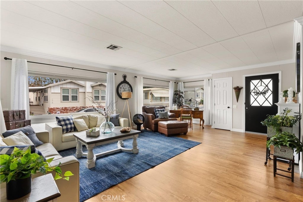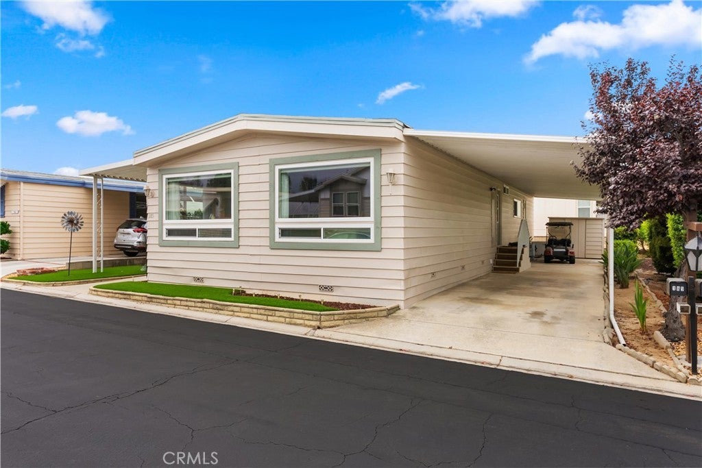 Welcome to Forest Gardens, a highly desirable community offering resort-style living! This beautifully updated 2 bedroom, 2 bathroom home blends comfort and functionality with thoughtful upgrades throughout. Step inside to find recessed lighting, crown molding, and dual-pane windows that fill the home with natural light. The spacious chef’s kitchen features a large island, copper farmhouse sink, and stainless steel appliances, perfect for entertaining. Enjoy cozy evenings by the electric fireplace with custom surround, or retreat to the generously sized bedrooms. A newer water heater and washer/dryer are also included for convenience. Outdoor living shines with an oversized Trex deck with patio cover, artificial turf, a storage shed, and even a golf cart included in the sale! A two-car carport completes this must-see property. Forest Gardens offers incredible amenities including a lake, pool, gym, clubhouse, library, ballroom, and a full calendar of community events such as poker, bingo, social clubs, line dancing, bridge, and exercise classes. This is more than just a home—it’s a lifestyle. Don’t miss your chance to make it yours!