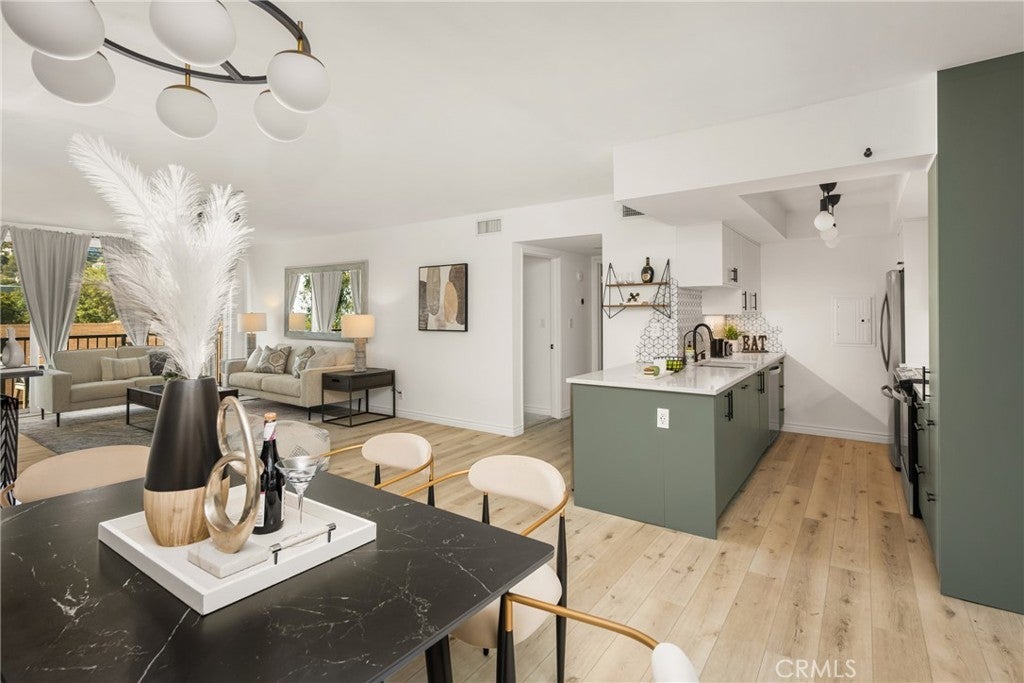 Welcome to Crescent Heights, where modern elegance meets vibrant city living. Perched in a prime location, this 2-bedroom, 2-bathroom condo boasts sweeping views of the scenic West Hollywood Hills—offering a daily backdrop of natural beauty and urban sophistication. Step inside to an open, light-filled layout appointed with luxury vinyl plank flooring and chic, contemporary design choices. The remodeled kitchen impresses with quartz countertops, custom cabinetry, and designer fixtures—perfectly suited for both everyday living and effortless entertaining. The spacious living and dining areas flow seamlessly onto a private balcony, an ideal spot to sip morning coffee or toast the sunset against a hillside silhouette. Throughout the home, thoughtfully selected finishes and stylish décor create a cohesive sense of calm and modern refinement. Each bedroom serves as a peaceful retreat, complete with generous closet space and en-suite or adjacent bathrooms. The bathrooms mirror the home’s contemporary design with clean lines and updated fixtures, blending form and function with ease. Enjoy 2 assigned (non-tandem) parking spaces for maximum convenience. Additional highlights include access to premium community amenities: a sparkling pool, fitness center, and 24/7 security cameras. With Sunset Boulevard and Melrose Avenue just steps away, you'll enjoy unmatched walkability to world-class shopping, dining, and nightlife. Whether entertaining in style or enjoying a quiet evening at home, this is luxury L.A. living at its finest.