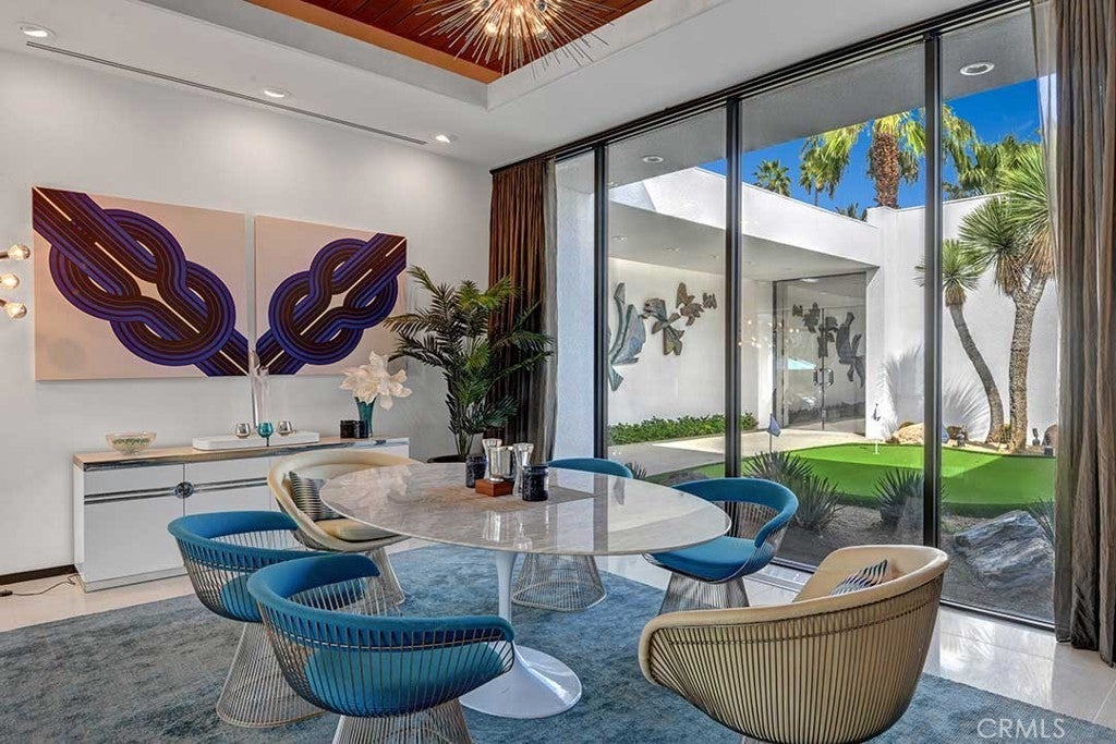This fully renovated Mid Century Modern Oasis Pool home is located in the heart of Rancho Mirage and will lead to your friends and families perfect desert vacation!. Located just minutes from Palm Desert, Palm Springs, Indian Wells and centrally located in the highly desirable Tamarisk area. House has approximately 6,200 sq. ft., four large bedrooms, five bathrooms, an extraordinary large great room with central bar perfect for entertaining friends & family. Three car garage including a large u shape driveway. Professionally landscaped throughout large 1/2 acre property. Large pool and spa with glowing lights at night . Wonderful golf views, with great privacy and security for your little ones & pets as the yard is completely fenced. 4 hole putting green in front courtyard for our Golf lovers. Indoor and outdoor Bar with dual window to entertain all of your guests indoors & while enjoying the outdoor pool and spa. Quartz floors through out the main areas of the house and a beautiful and unique marble countertop through out the kitchen. You will find everything you need in the kitchen for a quick meal or for a holiday dinner with a large family. State-of-the-art sonos stereo in living room, master bedrooms, and kitchen. BBQ connected to the house gas line, outdoor loungers, daybed, sofas, dining al fresco among many other outdoor features that will make all guest wanting to comeback to this great resort home! This is a 30 day or more rental