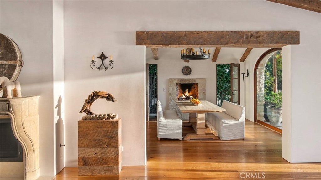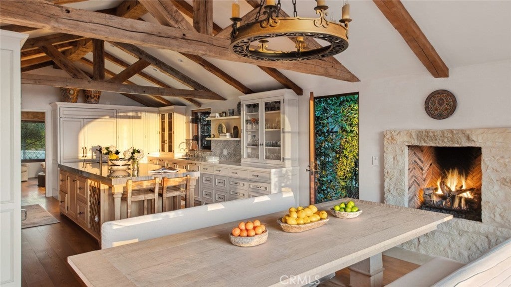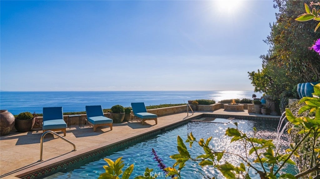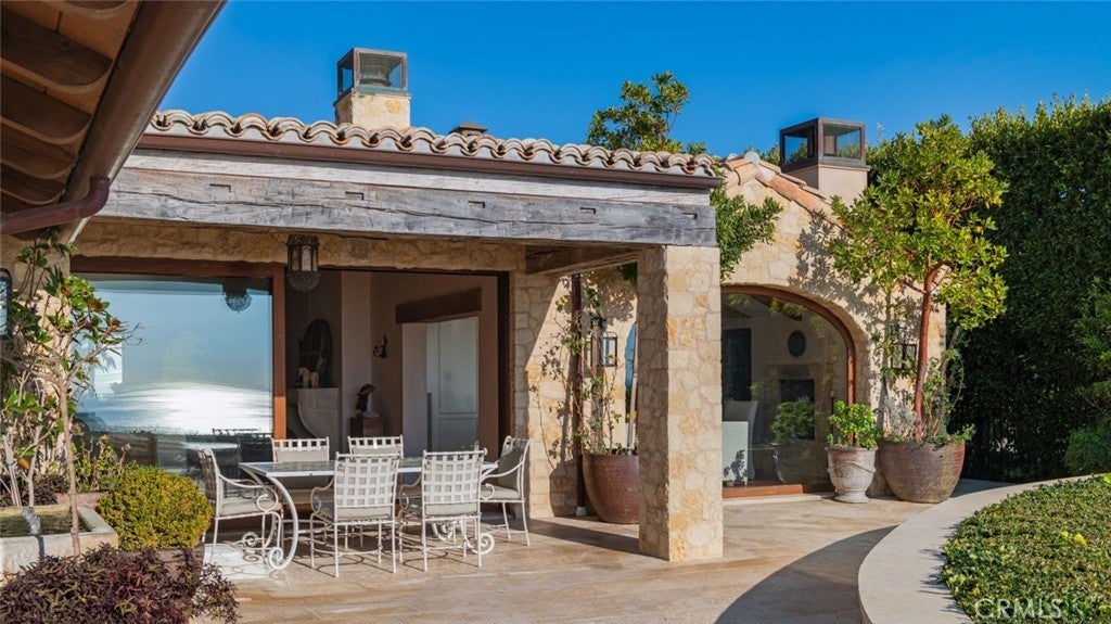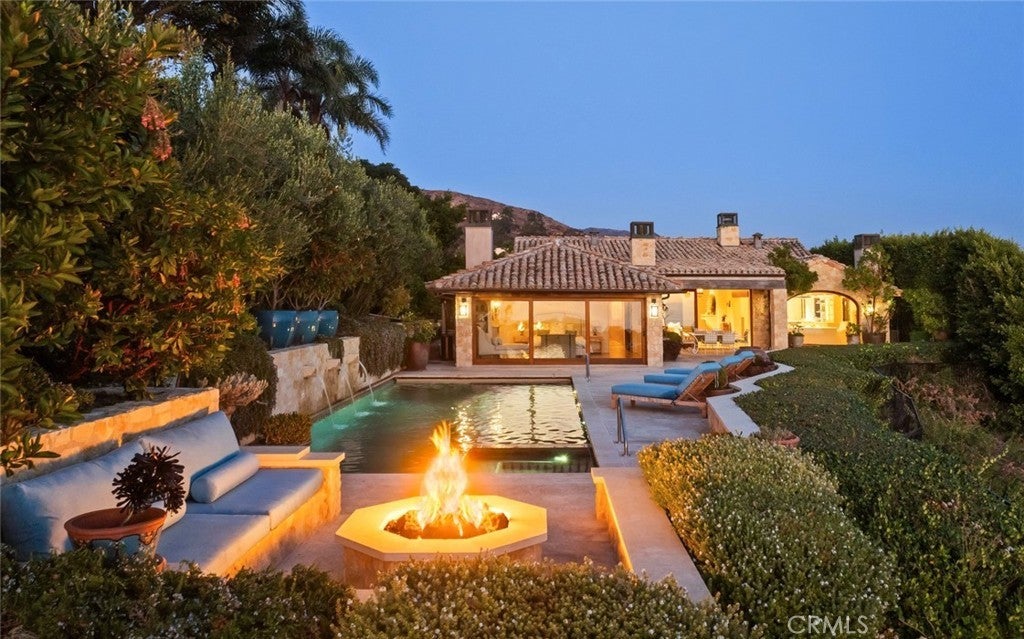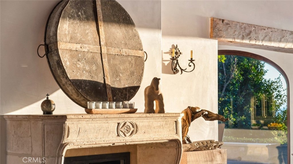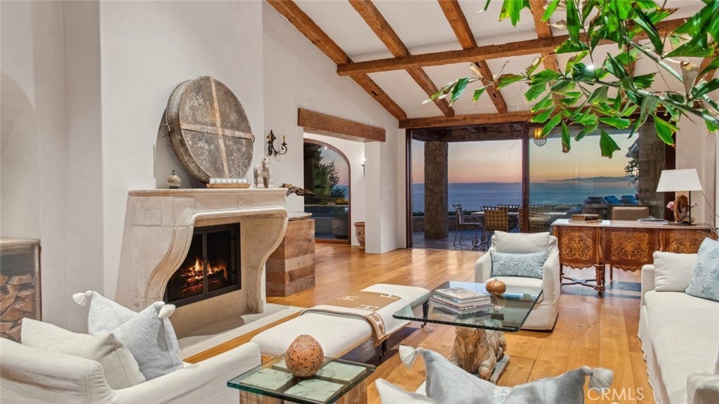 Discover unparalleled luxury in this exquisite French Country-style estate crafted by renowned builder Paul Brant Williger and featured in Luxe Magazine and two HBO productions. Nestled in a prestigious enclave (soon to be part of a gated, fire-wise community) this architectural gem blends breathtaking ocean views over Little Dume, with world-class amenities and impeccable craftsmanship. A stone-arched entryway invites you into a world of sophistication and timeless grandeur, as you are greeted with soaring vaulted ceilings, reclaimed French oak floors, and antique wood beams. The living room is anchored by a French antique wood-burning fireplace that seamlessly connects to the outdoors. The adjacent great room charms with a cozy firewood nook. The chef's kitchen is a culinary masterpiece featuring a sprawling quartzite island, Caesarstone counters, and premium appliances (6-burner Wolf range, Wolf microwave, Miele dual dishwashers, Sub-Zero refrigeration to name a few). The formal dining room captivates with a fireplace, wood-beamed vaulted ceilings, French tiles, and sweeping coastline vistas. A nearby powder room impresses with French tile floors, floating sink imported from France, and bespoke lighting. The primary suite offers ocean and pool views, a vaulted ceiling, walk-in closets, and fireplace, and sliding doors to the lush backyard. Its spa-inspired ensuite boasts mosaic tile floors, stone counters, double vanity, walk-in shower with a marble bench, and an in-ground soaking tub framed by elegant French windows. A converted garage serves as a versatile office or gym, complete with skylights, and French doors opening to the garden. The laundry room includes built-in storage, washer and dryer, and a wine fridge. The backyard is a private paradise, showcasing panoramic ocean views, a rectangular pool with an integrated hot tub, a fire pit with a custom-built couch, and a tranquil waterfall. A covered outdoor dining area, equipped with infrared heaters and an exterior fireplace, ensures year-round enjoyment. Hand-finished French slip-resistant limestone elegantly paves the yard. Uncompromising craftsmanship defines this estate, from imported antique doors to a handmade Tuscan tile roof. Modern conveniences include ultra-sound-resistant glass windows and sliders, push-button automatic shades, a whole-home generator, three-zone climate control, and a comprehensive security system.