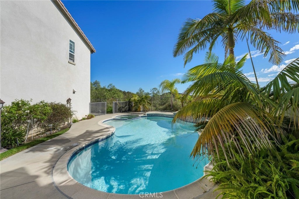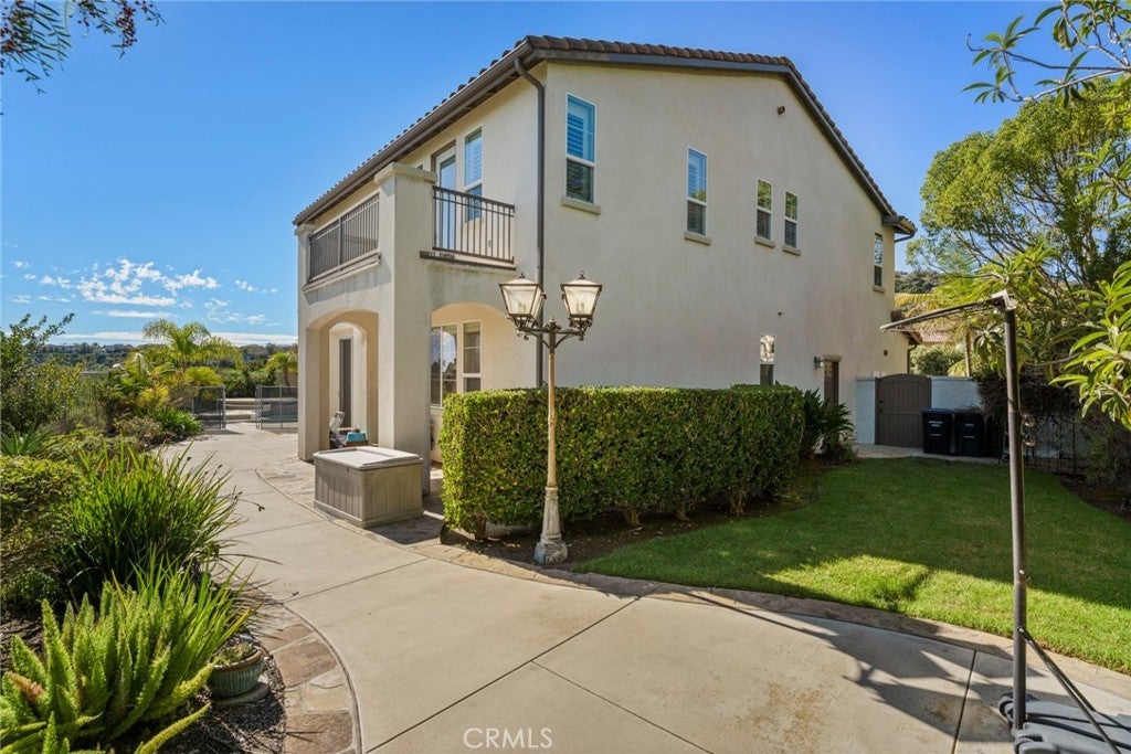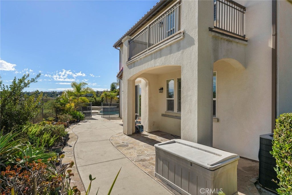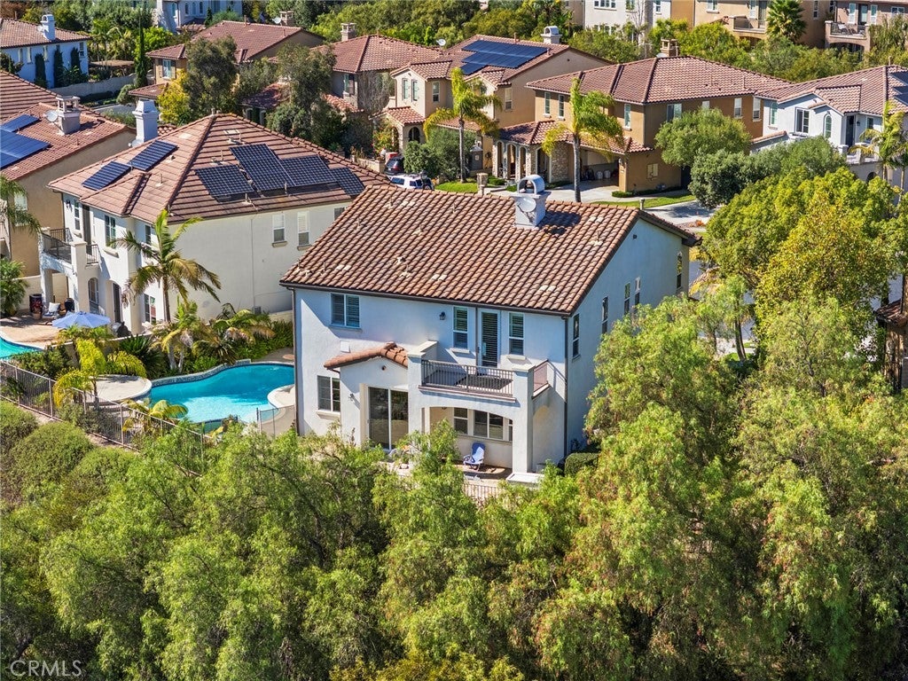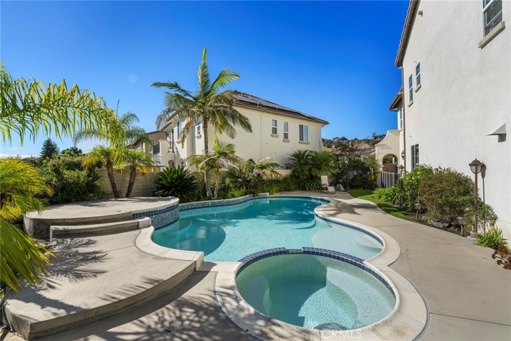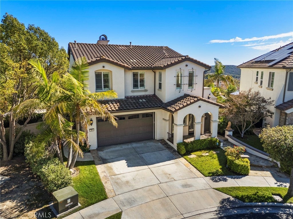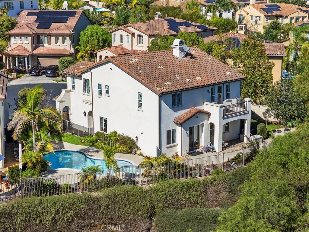 Welcome to this beautifully maintained home located on a private cul-de-sac in the desirable Talega community of San Clemente. Situated on an elevated lot with no neighbors behind, this residence offers privacy, scenic hillside views, and peek-a-boo ocean vistas. Featuring 4 bedrooms, 2.5 bathrooms, and approximately 2,627 sq. ft. of living space on a 6,714 sq. ft. lot, the home showcases an open and versatile floor plan perfect for modern living. The entry is highlighted by double French doors and a charming covered porch, leading to formal living and dining areas.The gourmet kitchen boasts quartz countertops, a stylish backsplash, center island, breakfast bar seating, walk-in pantry, and stainless steel appliances including double ovens. It opens seamlessly to the inviting family room with a cozy fireplace. The expansive backyard is designed for entertaining, complete with a pool, spa with waterfall, tropical landscaping, patio seating areas, and hillside privacy. Upstairs, a central landing with a versatile tech/loft area provides additional flexible space. To the right, the spacious primary suite offers a private balcony with serene views, dual vanities, soaking tub, separate walk-in shower, and a generous walk-in closet. To the left, three secondary bedrooms share a full bathroom and are complemented by a conveniently located laundry room. Additional upgrades include an updated garage door system, newer water heater, plantation shutters, modern lighting, and pre-wired audio/security. Residents of Talega enjoy resort-style amenities such as multiple community pools, sports courts, parks, hiking and biking trails, and proximity to top schools, shopping, dining, and San Clemente’s world-class beaches. This home combines elegant upgrades, privacy, and an ideal location—offering the very best of Southern California coastal living.