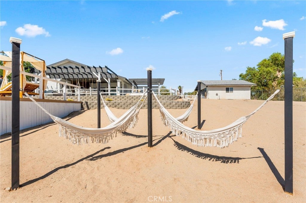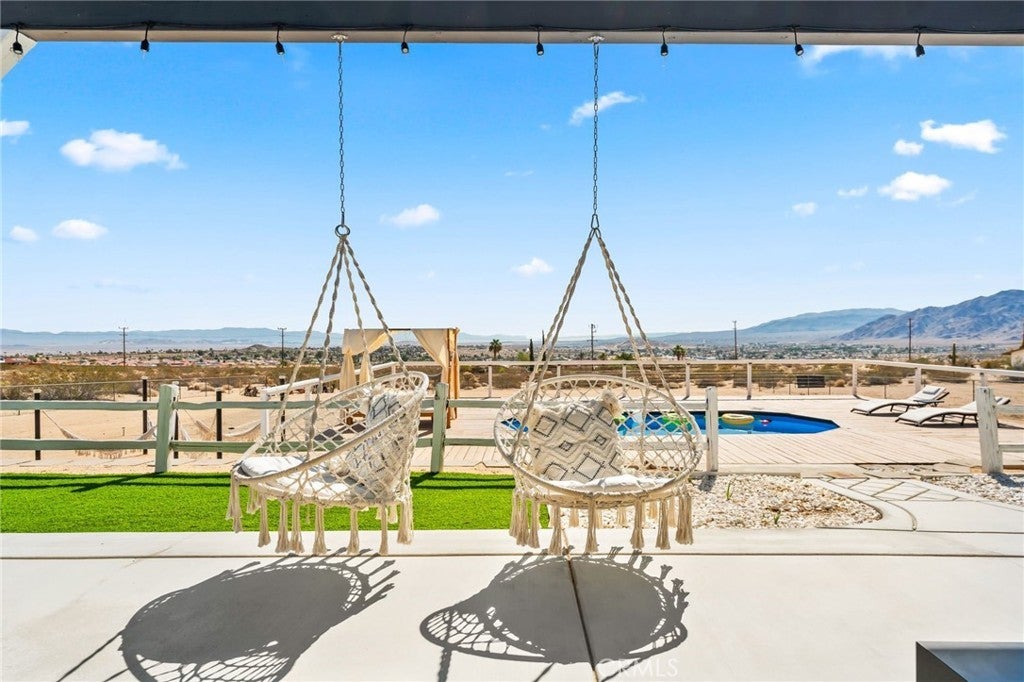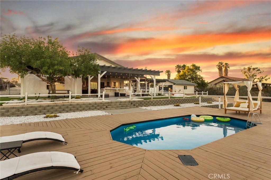 ESCAPE TO THE ULTIMATE RETREAT – A PRIVATE DESERT SANCTUARY ON 1.15 ACRES OF HILLSIDE TERRAIN, JUST MINUTES FROM JOSHUA TREE NATIONAL PARK. This property has been fully renovated to blend MODERN LUXURY with DESERT SERENITY, offering a rare opportunity for a private residence, vacation getaway, or high-performing short-term rental. Step outside to BREATHTAKING PANORAMIC VIEWS of desert and mountain landscapes. Enjoy the IN-DECK SWIMMING POOL, HOT TUB WITH THERAPEUTIC JET PACKS, BBQ ISLAND, OUTDOOR KITCHEN, FIRE PIT, and FOUR LARGE COVERED PATIOS—perfect for relaxing or entertaining. The fully fenced yard includes a LARGE PERGOLA, DECK, and 220V EV OUTLET, with a DETACHED GARAGE offering storage, studio, or conversion potential. Two CENTRAL A/C UNITS plus ceiling fans ensure comfort year-round. The open-concept living area includes a spacious LIVING ROOM WITH LARGE TV, DINING AREA, and a RENOVATED KITCHEN WITH BAR SEATING. Additional highlights include PAID SOLAR, a LAUNDRY AREA, and MODERN FINISHES throughout. For investors, this property is a PROVEN PERFORMER—a SUPER ACTIVE AIRBNB WITH 165 VERIFIED 5-STAR REVIEWS, and AVERAGING $130,000 ANNUALLY. With strong income history, established reputation, and immediate cash flow potential, it represents an EXCEPTIONAL INVESTMENT OPPORTUNITY. Whether as a PRIMARY RESIDENCE, VACATION ESCAPE, or INCOME PROPERTY, 6261 CARODEAN RD delivers the ultimate desert lifestyle with RESORT-STYLE AMENITIES and OUTSTANDING RETURN POTENTIAL. BOOK YOUR SHOWING AND EXPERIENCE THIS DESERT OASIS – YOUR ULTIMATE RETREAT AWAITS.