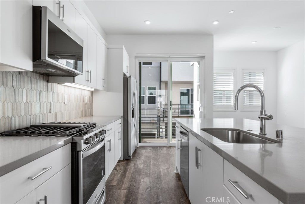 Stunning Modern Townhome in Gated Anaheim Community Welcome to this beautifully designed, modern 4-bedroom, 3.5-bathroom townhome, located in a highly sought-after gated community in Anaheim. Boasting a spacious, open-concept floor plan, this home effortlessly combines contemporary luxury with practical living. The inviting entrance leads to a downstairs bedroom with a private bath and convenient access to the attached two-car garage. Upstairs, enjoy a bright and airy Great Room, complemented by a gourmet kitchen featuring a large center island, abundant counter space, and a walk-in pantry. The separate dining and living area opens to a private outdoor balcony, perfect for relaxation and entertaining.The upper-level primary suite offers a walk-in closet and a spa-like bathroom with a luxurious shower. Additional bedrooms feature generous closet space and share a well-appointed bathroom. Step outside to the rooftop deck, ideal for hosting guests or enjoying panoramic views.Located in the heart of Orange County, this home is just minutes from world-renowned attractions including Disneyland, the Honda Center, and Angel Stadium. With easy access to major freeways, transportation hubs, top medical centers, and esteemed colleges, this property combines convenience with luxury living.