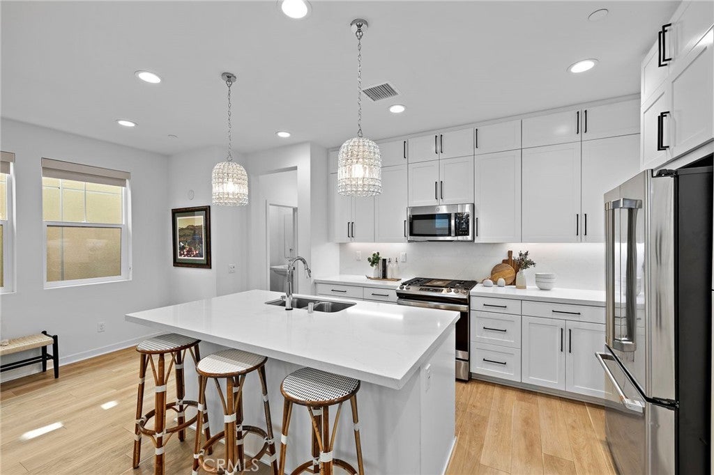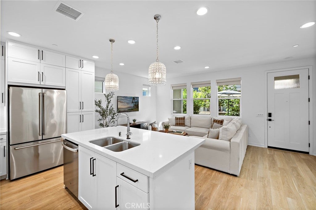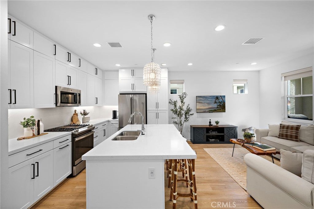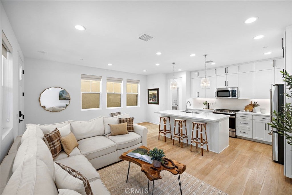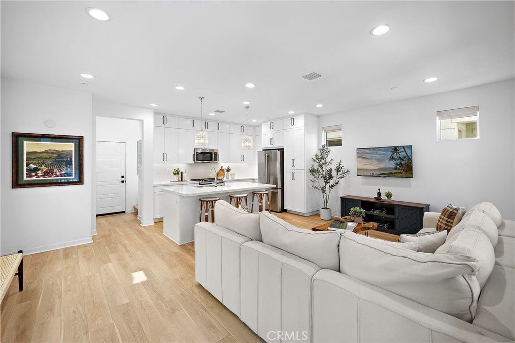 Stylish Living in Rancho Mission Viejo PRICE IMPROVEMENT!!! Welcome to 331 Harvest, a beautifully upgraded 3 bedroom, 2.5 bathroom single-family home located in the sought-after community of Rancho Mission Viejo. From the moment you enter the gated front patio, you’re greeted by a private outdoor retreat—perfect for entertaining, al fresco dining, or relaxing under the shade of mature greenery. Inside, the open-concept layout showcases a bright and airy living space with wide-plank luxury flooring, recessed lighting, and expansive windows that fill the home with natural light. The chef’s kitchen is a showstopper—featuring a large center island with seating, quartz countertops, custom backsplash, stainless steel appliances, and an abundance of sleek white cabinetry with modern hardware. Upstairs, the spacious primary suite offers a tranquil escape with large windows, a walk-in closet, and a spa-like ensuite bath. Two additional bedrooms provide flexibility for family, guests, or a home office. Additional highlights include upgraded designer lighting, a convenient upstairs laundry, and an attached two-car garage. As a resident of Rancho Mission Viejo, you’ll enjoy access to world-class amenities: resort-style pools, fitness centers, sports courts, playgrounds, miles of hiking and biking trails, and exclusive access to the award-winning Hilltop Club. This home blends modern design with the unmatched lifestyle Rancho Mission Viejo is known for—don’t miss your chance to make it yours!