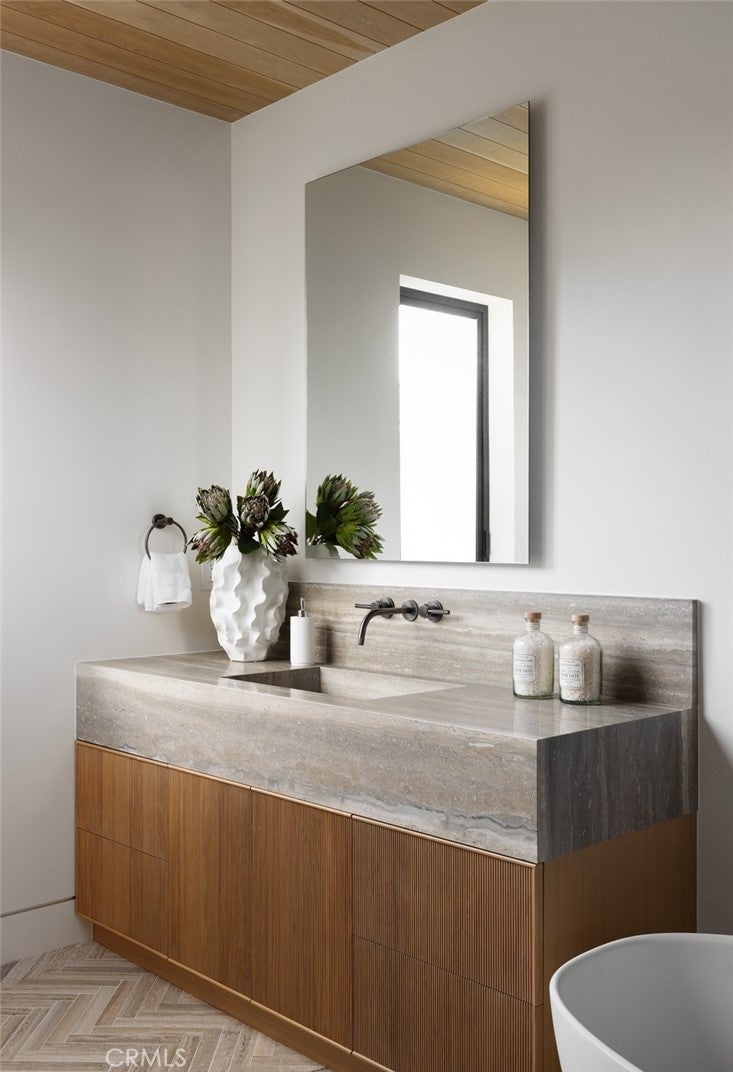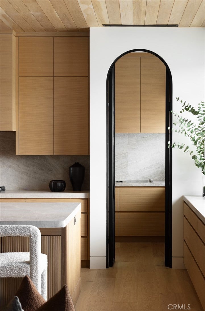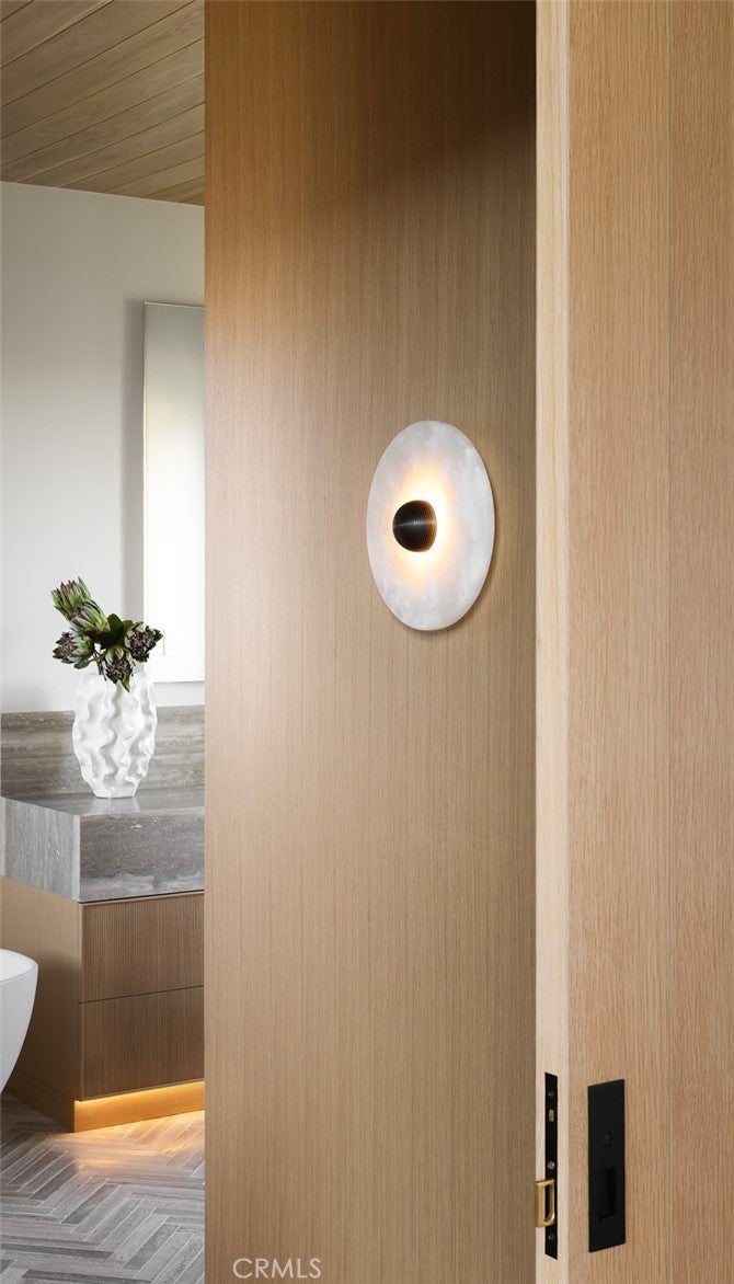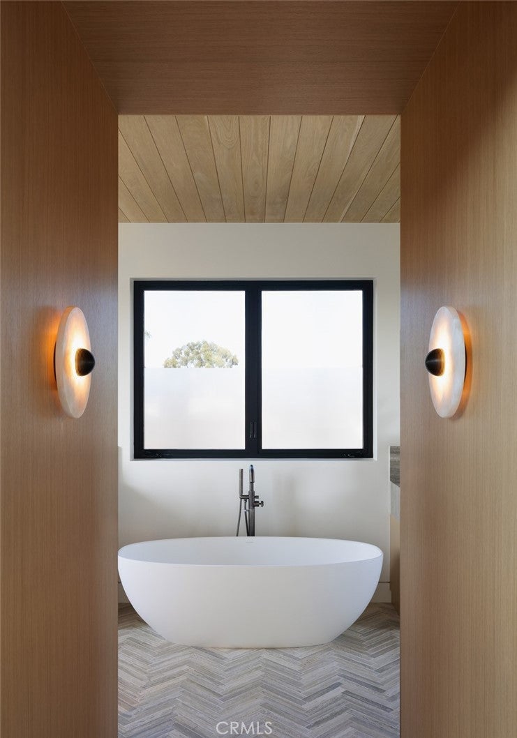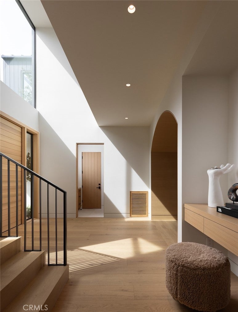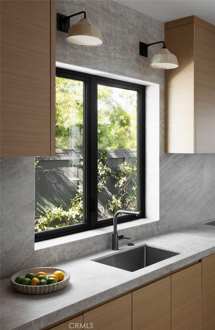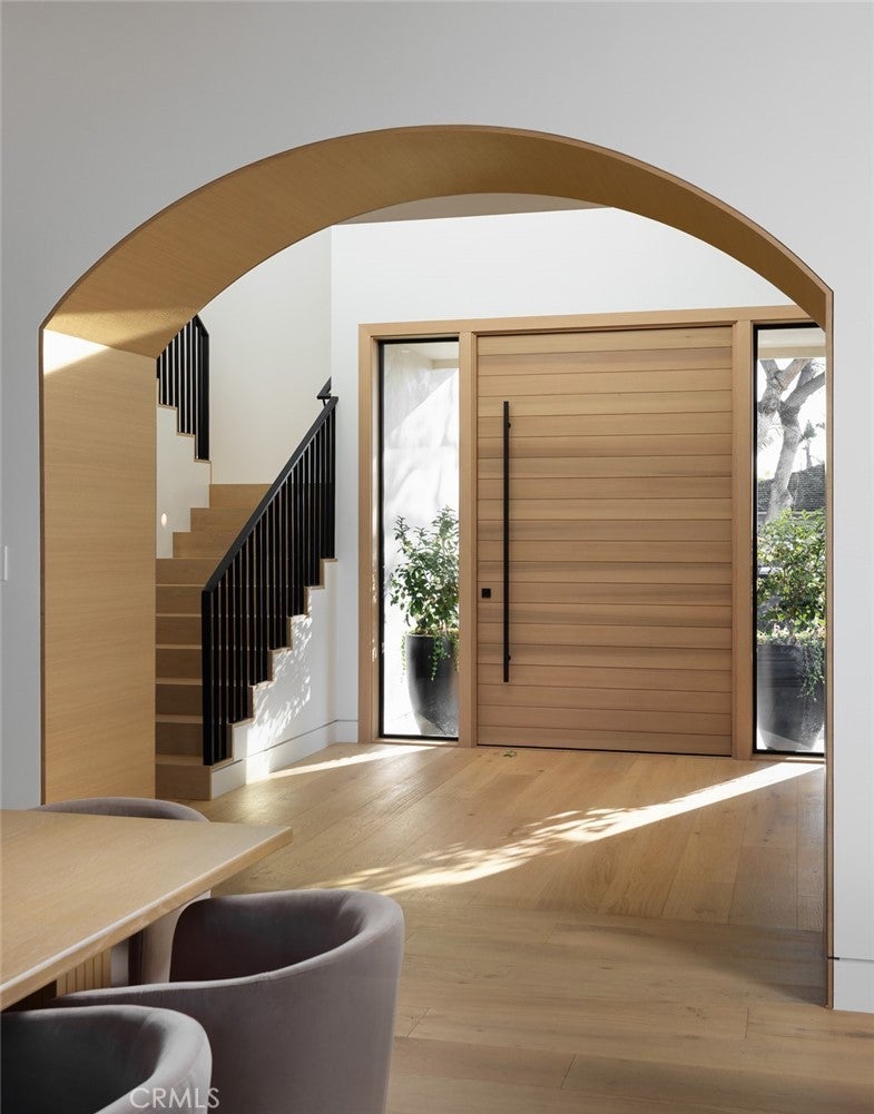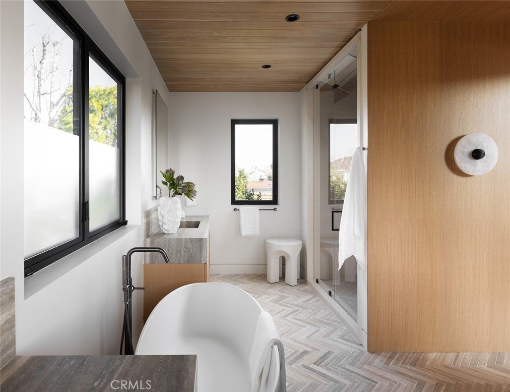 Step into an architectural masterpiece where every element of design invites you into a world of elegance and innovation. The journey begins at a double-height entry, framed by a grand custom oak archway, bringing to mind the tranquil water wall of the pool. Towering 16-foot privacy hedges guide your gaze inwards toward the expansive great room with kitchen and dining areas. Central to the home is a chef's kitchen featuring a Pitt cooktop and elite Gaggenau appliances that enhance the culinary experience, complemented by an island with fluted woodwork, masterfully placed Taj Mahal leather quartzite, and seamless custom oak cabinetry. A convenient automatic pass-through window connects to an outdoor eating area, beside a matching secondary full catering kitchen hidden behind custom-created fluted glass and steel archways. Here, in the heart of the home, additional majestic oak archways merge form and function seamlessly, centering the bar area and art walk behind.The contemporary design, envisioned by award-winning architect Eric Aust, enhances the neighborhood's charm with dramatic dormers, a lush full width living roof, expansive windows, and expert landscaping from Garden Studio. Within its striking exterior, the home features five ensuite bedrooms, five-and-a-half baths, plus an office and a separate loft, spanning 4,857 square feet of harmonious living space. The interior designed by Serendipte, blends luxury and comfort with white oak flooring, vaulted ceilings, and rich limestone and quartzite details, creating an upscale ambiance across two levels. The first-floor bedroom suite offers easy access to the office, which opens to a private front patio. Upstairs, additional bedrooms with private baths and a bonus room offer further living flexibility. The primary suite is a sanctuary with a massive walk-in closet, floating vanities, a freestanding tub, and an indulgent steam shower. Every detail speaks of handcrafted excellence, from wood-clad archways to mud in LED lighting and natural stone tiles by Ann Sacks and Walker Zanger. A three-car garage further provides function with two entry points one to the secondary kitchen and one to the mud room, with a laundry room located upstairs. Wrapped around this home is a lush backyard oasis with a custom pool, spa, 700 sqft California room, full outdoor kitchen, flush mount heat lamps, sound, fireplace and fire pit. This exclusive SkySail residence is destined to elevate your lifestyle for generations.