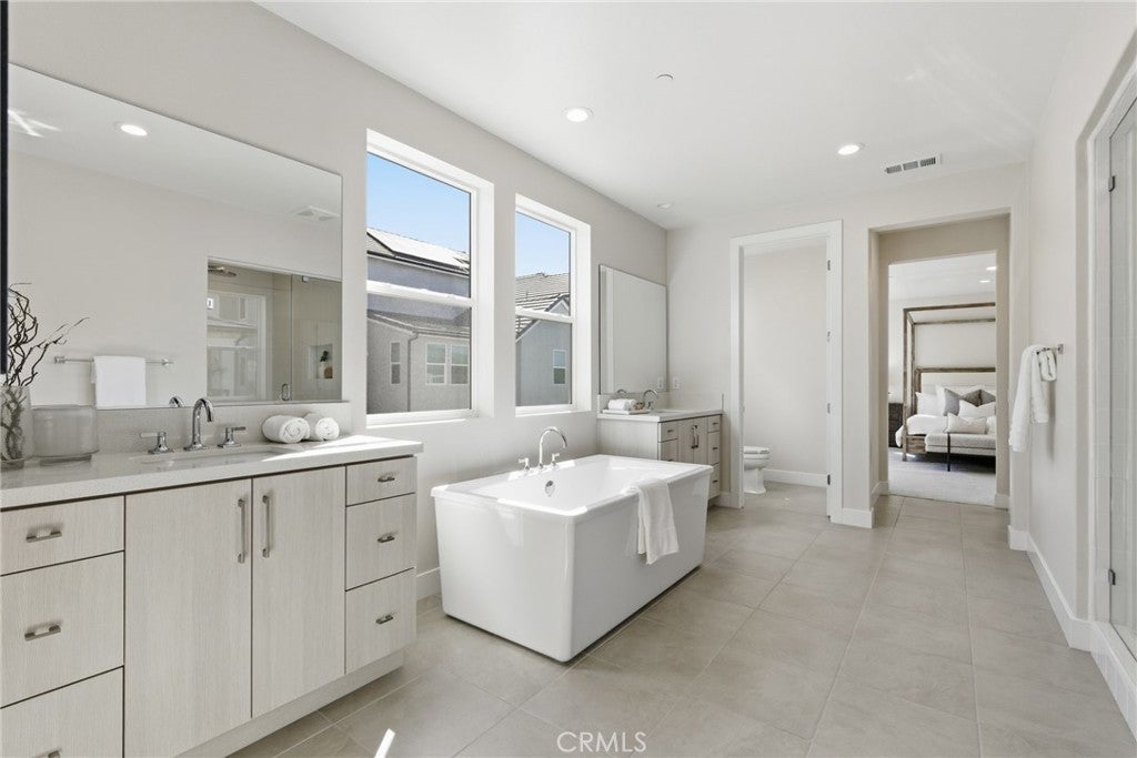 Welcome to The Sequoias, a new community located in Lake Forest, which is close to everyday amenities including shopping, restaurants, entertainment and sports facilities as well as financial institutions. Home site 56 is a new construction, quick move-in home with a south east facing backyard. The Sagewood floor plan features 5 bedrooms, with 5.5 bathrooms, and is approximately 3,559 sq. ft with a 2 car garage. Upon entering the home you are greeted with a 2-story foyer and floating staircase, the chef inspired kitchen showcases premium Wolf/Sub-Zero appliances, upgraded granite and quartz counter tops, and sleek Kohler fixtures. The luxurious primary bedroom offers a walk-in closet, a spa-like shower, and a freestanding soaking tub. The secondary bedrooms each with their own en-suite ensure both comfort and privacy for everyone. Highlights of the home are a first-floor bedroom, complete with a private bath and a versatile flex room. The community amenities include a clubhouse with 2 pools, 2 spas as well as BBQ and lounge areas. Home site 56 is complete and move-in ready for it's new family! Photos provided are of the model home, actual home is shown by appointment.