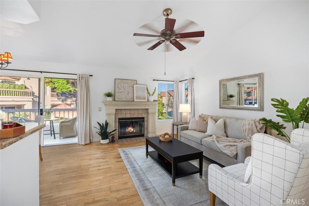 Welcome to this beautifully customized and spacious two-bedroom condo with an additional office/den or third bedroom, permitted and thoughtfully designed for single-level carriage style living! Step inside to an open floor plan bathed in natural light, featuring high ceilings, wood floors and a charming fireplace in the great room. The sunny kitchen seamlessly connects to the living space, ideal for entertaining. Enjoy serene views from the wrap-around balcony overlooking the lush greenbelt. Features include upgraded and newer AC, HVAC and water heater, added interior square footage, inside full size laundry room, ample storage in the two car direct access garage plus a double car driveway (which is almost impossible to find in this price range) and the essential appliances of washer, dryer, and refrigerator included. Please note the third bedroom is the room addition and currently being used as an office/den. It does have a closet and a door and is separate from the main living areas and built above the garage with interior access from the interior hallway and stairs to the attached two car garage. It is a fabulous addition with so many possibilities and makes a wonderful office and would be an excellent theater room, gym or combo office/guest room…the possibilities are whatever you desire. Perfectly situated, this condo offers easy access to Laguna Beach, town center, popular shops, trendy eateries, pristine beaches and coves of Orange County, top-rated schools, and just minutes to major freeways and toll roads. As a resident, you'll have access to a community pool and spa, with optional membership to the Aliso Viejo Golf Club and Aliso Viejo Aquatic Center. Don’t miss out on this incredible opportunity for stylish and convenient living.Call today to schedule a tour!
