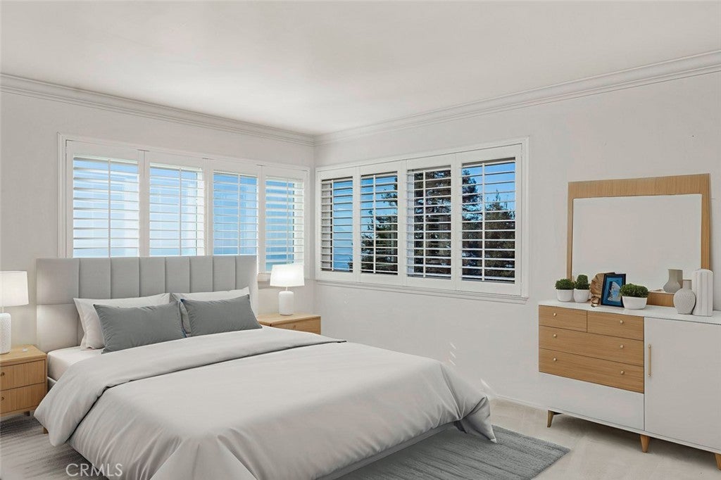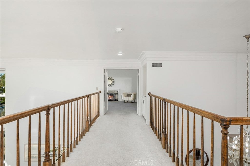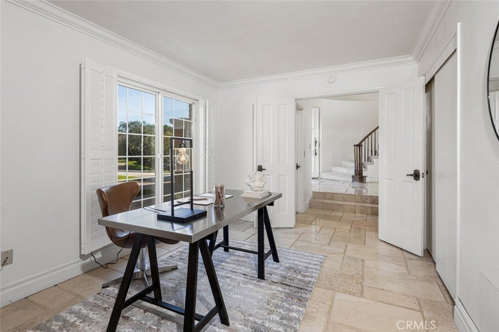 Designed with restraint and proportion, this Rolling Hills Estates residence reflects a timeless blend of coastal California sensibility and classic colonial grace. The architecture feels both grounded and elevated, with an effortless connection between the interiors and the sea beyond. Inside, every space is guided by light and balance. Tall windows invite the ocean into daily life, casting reflections across soft tones and natural textures. The living areas flow with intention, creating quiet transitions from room to room while maintaining a clear focus on the view. Each space has its own rhythm, from the formal dining room to the open family areas, united by a sense of calm continuity. Outside, terraces and garden paths wrap the property, providing natural extensions of the interior and quiet places to take in the shifting light of the ocean. Whether bathed in morning sun or the amber glow of sunset, the home feels at ease, refined, balanced, and deeply connected to its surroundings. Downstairs, a private suite offers flexibility for guests or a secluded workspace. Upstairs, the bedrooms unfold across the upper level, each one framed by sweeping views of the coastline and the horizon beyond. Subtle details, clean millwork, classic lines, and fine materials add to the home’s enduring warmth without distraction or excess. This is an estate that doesn’t compete with its setting but complements it, a timeless expression of coastal living where architecture, light, and landscape exist in perfect conversation.