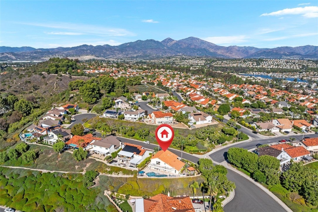 Panoramic Perfection: Turnkey Luxury on a Coveted Mission Viejo Street A rare opportunity awaits on one of Mission Viejo's most sought-after cul-de-sacs. Perched high on a premium corner lot, this pristine & fully remodeled residence captures an expansive 270-degree panoramic view that sweeps from the sparkling coast to nightly Laguna Canyon sunsets and Disneyland fireworks. This home is a true masterpiece that has been meticulously upgraded & maintained to the highest standard. It offers the ultimate blend of luxury living & breathtaking views. The exceptional condition and high-end upgrades define this property. A gourmet chef’s kitchen is the heart of the home, designed for both serious cooking & elegant entertaining. It features premium Thermador WiFi appliances, hand-picked tile accents, a beadboard ceiling, & a massive 10' quartz island complete with generous storage & a dedicated wine & beverage fridge. The open-concept living & dining areas flow seamlessly through multiple sets of sliding glass doors, turning coastal views into your daily backdrop. Step outside to an entertainer’s dream where the sweeping vistas take center stage to create a true sanctuary for year-round gatherings. The resort-style backyard offers a saltwater pool & spa with a waterfall feature, an outdoor kitchen incl. a built-in BBQ island and beverage fridge, a fire pit, multiple refined seating areas, and a gazebo tucked within the beautifully landscaped side garden. The home’s impeccable condition is reflected in its extensive list of renovations, including a PEX re-pipe, new HVAC, and comprehensive upgrades. The front-yard enjoys new hardscaping, stone accents, and landscape lighting to provide impressive curb appeal. The nearly 8,000 sq ft lot offers not only privacy but also the potential to add an ADU. On the main level, a fourth bedroom with serene views is currently used as a stylish office. Upstairs, the primary suite features two walk-in closets, an ensuite bathroom, and a private balcony. Imagine starting your day by taking in the mountain landscapes or enjoying your evening surrounded by the sparkle of the city lights below. Mission Viejo's residents enjoy exclusive Lake Mission Viejo privileges including boating, beaches, concerts, and lakeside dining all Around the corner. This is more than just a home; this property is a refined expression of luxury, meticulous care, and the kind of view-centric living that turns everyday moments into something extraordinary.