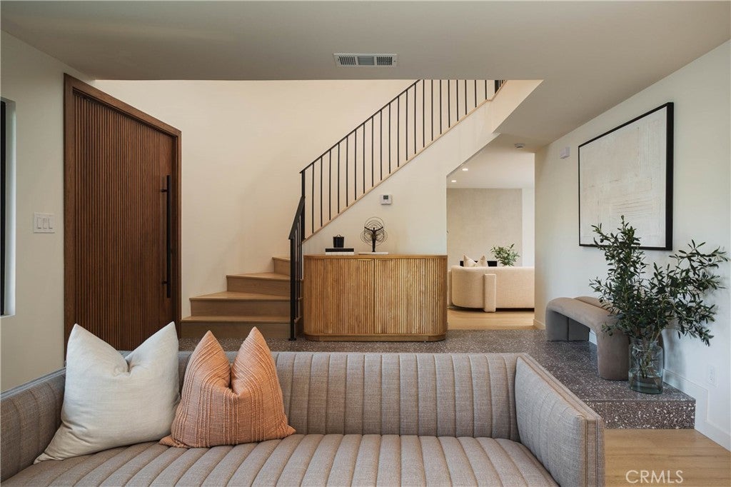 Welcome to this masterfully reimagined residence in the prestigious Upper SeaCliff neighborhood, where mid-century design meets modern coastal luxury less than one mile from Surf City's iconic beaches. Nestled on a quiet cul-de-sac and within walking distance of the Huntington Beach Wetlands, local parks, the HB Urban Forest, and top-rated schools—and just minutes from The Huntington Club—this home offers an exceptional lifestyle in one of Orange County’s most desirable coastal enclaves. Recently expanded and meticulously renovated with indoor-outdoor entertaining in mind, this four-bedroom, two and a half-bathroom home features an open, light-filled floor plan complemented by high-end finishes and sophisticated designer touches throughout. Upon entry, you're welcomed by a striking modern-line pivot door, setting the tone for the refined interiors. The kitchen is a chef’s dream, showcasing Taj Mahal quartz countertops, Thermador appliances, and an ActiveWall awning-style passthrough window that opens to the beautifully landscaped backyard. A spacious living area flows effortlessly outdoors through WinDor bifold doors that lead to a firepit lounge—ideal for entertaining or relaxing year-round. The primary suite offers a spa-inspired wet room with soaking tub, dual vanities, and serene, resort-style finishes. One secondary bedroom includes a private balcony with neighborhood views—ideal for enjoying morning light and coastal breezes. Additional features include luxury wood-look flooring, roman clay fireplaces, black-framed Milgard windows, recessed lighting, new plumbing fixtures, updated interior doors, and a private elevator. The finished garage, upgraded with epoxy floors and new doors, offers flexible space for storage or hobbies. System upgrades include a new furnace, AC, water heater, and sleek metal roof. The oversized lot is fully landscaped with new concrete, sod, mature trees, flagstone entry, and dramatic lighting for standout curb appeal. With four bedrooms, multiple living areas, and expansive outdoor space, this turnkey home delivers the best of coastal Huntington Beach living in one of Orange County’s most desirable neighborhoods.