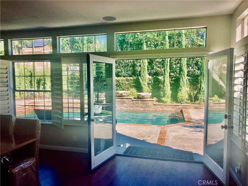 GORGEOUS BACKYARD!Perfect for entertaining! Picture a backyard oasis on a cut-de-sac in prestigious Moulton Ranch. This popular Brock Estates Floor plan welcomes you through a double door entry and greets you with a grand entry, curved stairway, and soaring ceilings. A fabulous Master Suite reminds you of a fine resort. A dual sided fireplace warms the coolest Southern California nights, whether in the over sized tub or sitting fireside in the master suite retreat. The fabulous walk-in-closet will delight you, and your wardrobe. There is also a private balcony overlooking your resort-like backyard. Upstairs secondary bedrooms have their own ensuite bathrooms. The upstairs is completed by a Bonus room. The main floor bedroom is graced by a walk-in closet and is currently used as an office. The Galley Kitch is huge, topped with granite counters, upgraded with stainless appliances, overlooks the spacious Family Room, Fireplace and beautiful backyard. The backyard starts with French Doors opening from the Dining Room, Family Room, and Breakfast Nook. Beautiful stacked stone enhances the fountains and pebble finished pool and spa. LUSH LANDSCAPING ENHANCES YOUR SECLUDED BACKYARD EXPERIENCE. MOULTON RANCH is conveniently located close to Mickey Hayden Stables, transportation, including the 73 Toll road, local airports, and freeways. Shopping and restaurants are never too far away. World famous beaches are just down the road as well. Come discover MOULTON RANCH.