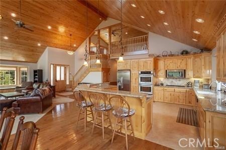MOONRIDGE MAJESTY !! Peek A Boo Baldwin lake view. Incredible Luxury!! PRIME LOCATION END OF CUL DE SAC FOR AN EXTRA SERENE MOUNTAIN GETAWAY. Beautiful Knotty Alder throughout this well built Entertainers delight. This gorgeous mountain retreat features 4 spacious bedrooms all on the main floor, including an extra large master bedroom, gas fireplace, expansive master bathroom, walk in closet, with linen closets galore throughout both Master, and common hallway access. All hardwood flooring in living and dining rooms, including the hallway. Massive Wood Burning Fireplace as a focal point for the main level family gathering, Expansive 698 sqft Game/ loft retreat on second level. The most functional floor plan, and beautiful oversized Chef Kitchen, granite counter tops, with all Stainless Steel Appliances. Surreal mountain views from the massive decking, on quiet grounds, with a Huge Adventurous Lot. Massive oversized 2 car garage will accommodate all the toys. High Quality is the only description of this very well cared for HOME! ADDITIONALLY, THIS PROPERTY HAS MASSIVE PARKING FACILITATION, AS A MUCH SOUGHT AFTER FEATURE REQUIRED FOR A COUNTY APPROVAL OF 16 PEOPLE MAX. FOR A MASSIVE INCOME PRODUCING RENTAL!!! ONE PERSON PER EVERY 200 SQ FT.