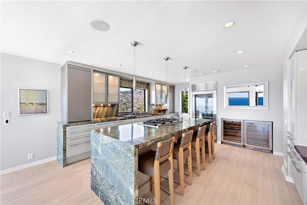 Welcome to a one-of-a-kind Laguna Beach retreat where style, privacy, and jaw-dropping views converge. Resting on a hilltop promontory along Summit Drive, this extraordinary contemporary residence was crafted by Morris Skenderian and offers uninterrupted panoramas of ocean waves, coastline cliffs, sparkling city lights, and serene hillsides. Every space of the home was designed to impress-walls of glass dissolve into open-air terraces, creating a seamless indoor-outdoor lifestyle. Entertain in grand style on the 1,000 sq. ft. travertine patio with sweeping lawns, or retreat to your private ocean-view fitness area for quiet reflection. The updated kitchen gleams with custom finishes, while dual primary suites promise comfort, luxury, and their own unforgettable vistas. Professionally landscaped and tucked away with no immediate neighbors, this residence provides a sense of true escape while remaining moments from the vibrant culture of Laguna Beach. An iconic lease offering unlike anything else on the coast.