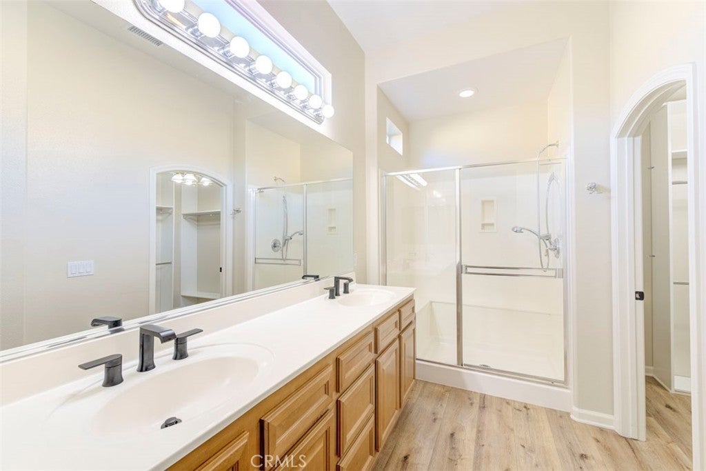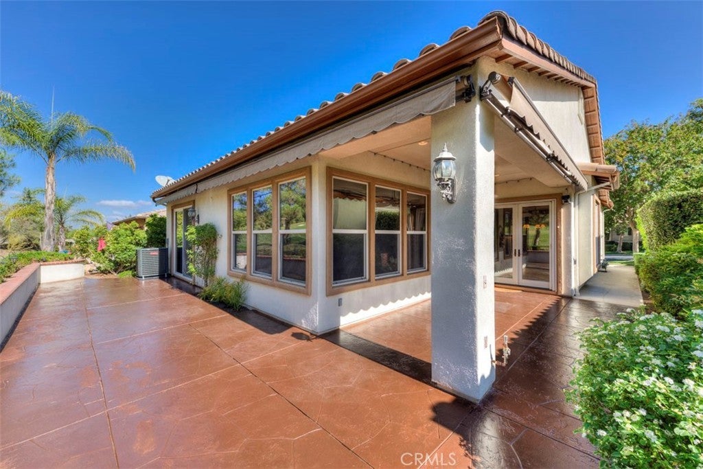 Located on the 8th Fairway with fairway views, this highly desired Shea Home Manzanita model has New Luxury Vinyl Plank flooring and Fresh Interior Paint in gated community of Trilogy. Secluded and privately located through the Coldwater Canyon gates enjoy breathtaking golf course and Cleveland National Forest Mountain views visible from the principal bedroom and living areas. Built in 2004, this home boasts 10-foot ceilings with 8” Crown Moulding, creating an impressive atmosphere perfect for casual entertaining. Custom doors and a wood paneled archway with new modern hardware have recently been installed. New plumbing fixtures and fresh paint make this home Ready to Move in! The expansive outward-facing kitchen with pull out kitchen drawers and an oversized breakfast bar & wine bottle storage w/cabinets that opens to the great room makes it ideal for gatherings. Whether hosting formal dinners in the elegant separate dining room or enjoying a cozy meal in the kitchen nook, this home is designed for both relaxation and entertainment. A custom wood built-in media niche and cabinets complete the great room with in ceiling surround speakers, 50” Sony flatscreen and cozy corner fireplace. The striking formal dining room offers extra space for larger gatherings, while the en-suite guest suite ensures privacy and comfort for your visitors. The primary suite includes a spacious walk-in closet w/ custom organizers & access to sit down golf course views and it’s own patio off the primary bedroom—perfect for enjoying your morning coffee or evening drink. Wrap around full size electric retractable awnings ensure comfort and privacy all year around. Two covered patios offer ample space for dining al fresco. Enjoy natural light from large premium dual-pane windows & privacy from neighbors with a wrought iron front gate. A shade tree lined street greets you at the top of the hill location. Low-maintenance design includes a concrete-tiled roof, stucco exterior & polished stamped colored concrete. Recent upgrades include a new water heater, New Amana HVAC system, smart thermostat & custom window coverings. The 4,792 square-foot premium Shea lot also includes stainless steel appliances, water softener, overhead storage in garage, whole house fan, new garage door opener, gas BBQ outlet & more. Located between Temecula Wine Country & Orange County, Trilogy offers exceptional 55+ living with amenities like a fitness center, indoor/outdoor pools, tennis & Activities/Clubs.