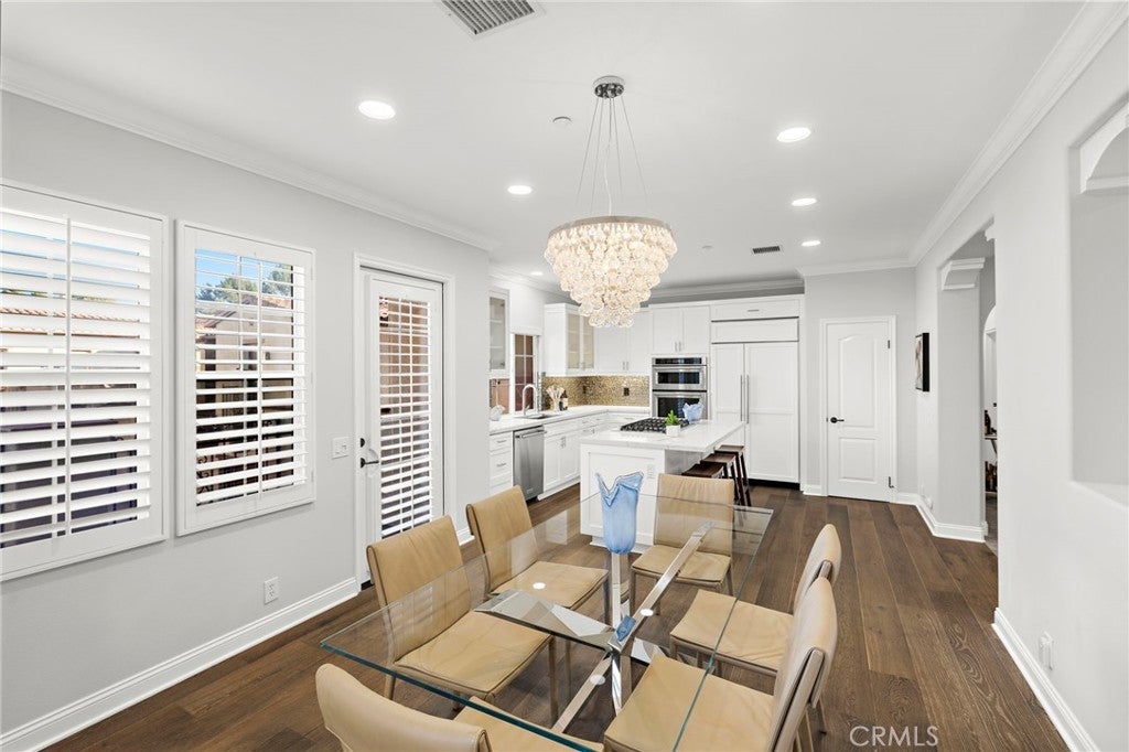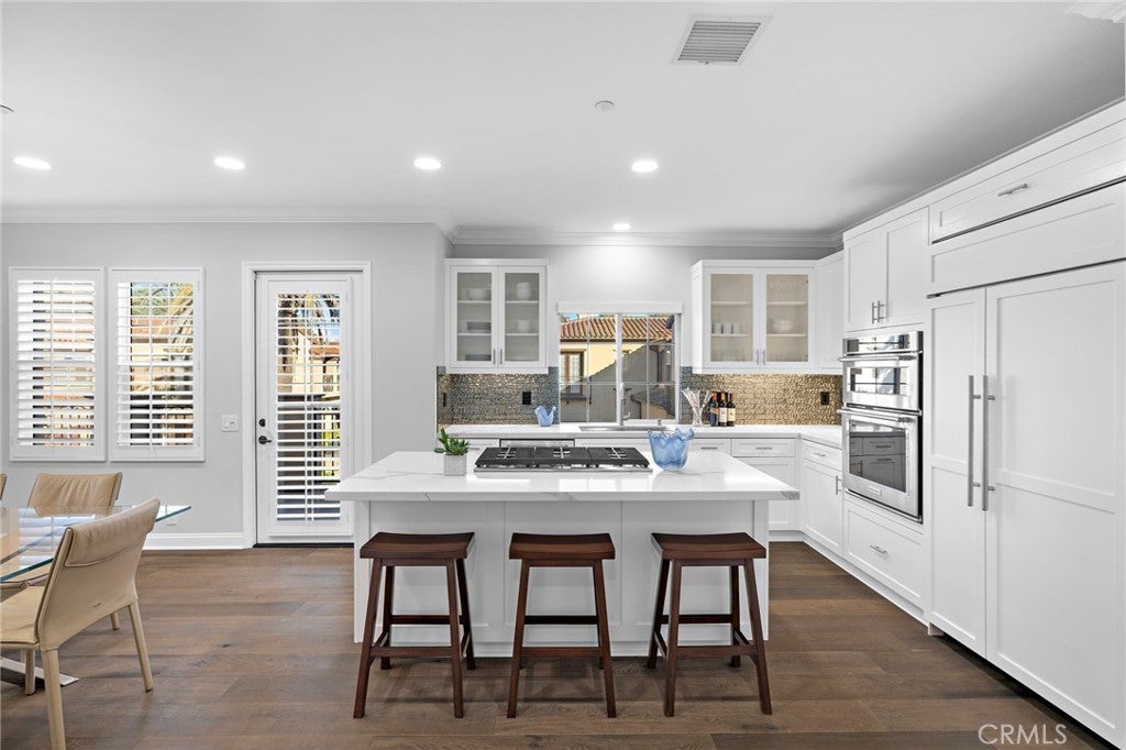 Welcome to a sanctuary of sophisticated coastal elegance nestled in the exclusive enclave of Ziani, Newport Coast. This exquisitely reimagined residence offers an unparalleled lifestyle of luxury and refinement, where every detail has been thoughtfully curated to elevate daily living into an art form. Step into an impeccably styled interior, where a crisp white palettes and rich wood accents create an atmosphere of serene sophistication. Boasting three spacious bedrooms and a refined den/office, this home seamlessly blends comfort with high design. Expansive living spaces are bathed in natural light, flowing effortlessly onto two generous balconies that capture gentle ocean breezes and tranquil vistas - ideal for relaxation or alfresco entertaining. Arched doorways and plantation shutters lend timeless architectural charm, while designer finishes add modern flair, crown molding, wide-plank flooring, and recessed LED lighting. A chef’s dream kitchen is airy and expertly appointed with a quartz island, counter seating, a built-in SubZero refrigerator, high-end stainless steel appliances, and a striking designer backsplash. The adjacent dining room and inviting living room with a glowing fireplace are perfect for sophisticated entertaining or intimate gatherings. Additional highlights include a second-level laundry room and a finished two-car garage with abundant storage offering added convenience. Residents of Ziani enjoy access to an array of resort-style amenities, including a private pool and spa, clubhouse and putting greens. Ideally located moments from world-class golf courses, upscale dining, premier shopping, and scenic hiking/biking trails with direct access to the Beach. A rare offering in one of Southern California’s most coveted coastal communities, this turnkey residence is the epitome of California elegance—where elevated design meets effortless lifestyle.