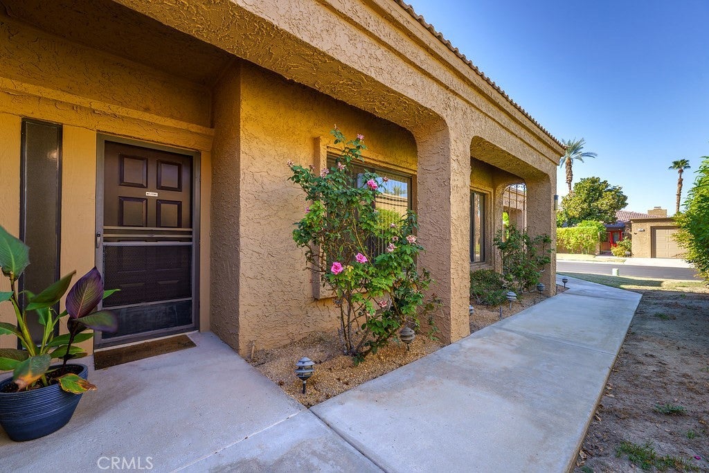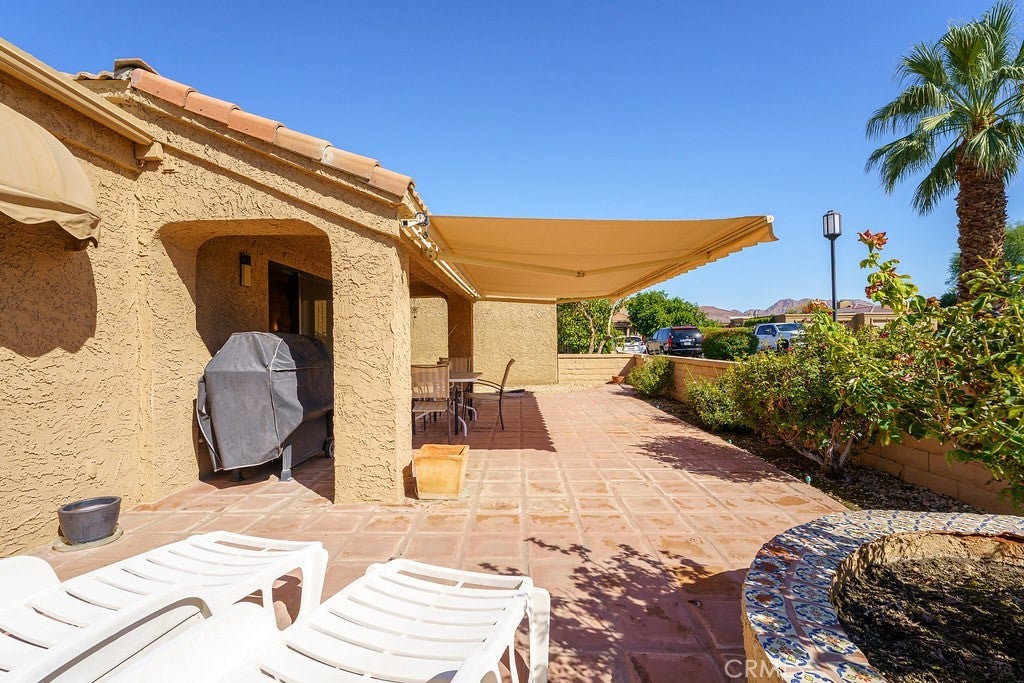 Single-Story 3 Bedroom | 2 Bath | 2-Car Garage | Mountain Views Welcome to Hidden Palms, one of Palm Desert’s most desirable gated communities, known for its single-story homes, peaceful flat streets, and scenic walking paths. This beautifully maintained 3-bedroom, 2-bath home offers light-filled living with vaulted ceilings, an open floor plan, and effortless indoor-outdoor flow. Three sets of sliding glass doors provide easy access to both the private backyard and a charming atrium, which connects to the office/third bedroom — a perfect space for relaxation or working from home. The spacious living room features a wood-burning/gas fireplace and adjoins the formal dining area, ideal for entertaining. The kitchen has all replaced cabinetry, granite countertops and enjoys morning sunlight and includes a cozy breakfast nook for casual dining. Step outside to a roomy backyard designed for comfort and enjoyment, featuring an electric retractable awning and a scalloped awning off the primary bedroom, adding both shade and ambiance. With no home directly behind, this property backs to a lush greenbelt offering wide open space and gorgeous mountain views — the perfect backdrop for sunset evenings. Additional highlights include ceiling fans in all bedrooms, a welcoming entry foyer, and vaulted ceilings in the main living areas. Residents of Hidden Palms enjoy resort-style amenities including: 4 sparkling pool & spa areas 8 pickleball courts 3 tennis courts Beautiful lakes and water features throughout the community All this, just minutes from El Paseo, Palm Desert’s premier shopping and dining district with boutiques, fine restaurants, and art galleries. Experience the relaxed desert lifestyle in this charming home set in a friendly, walkable community.