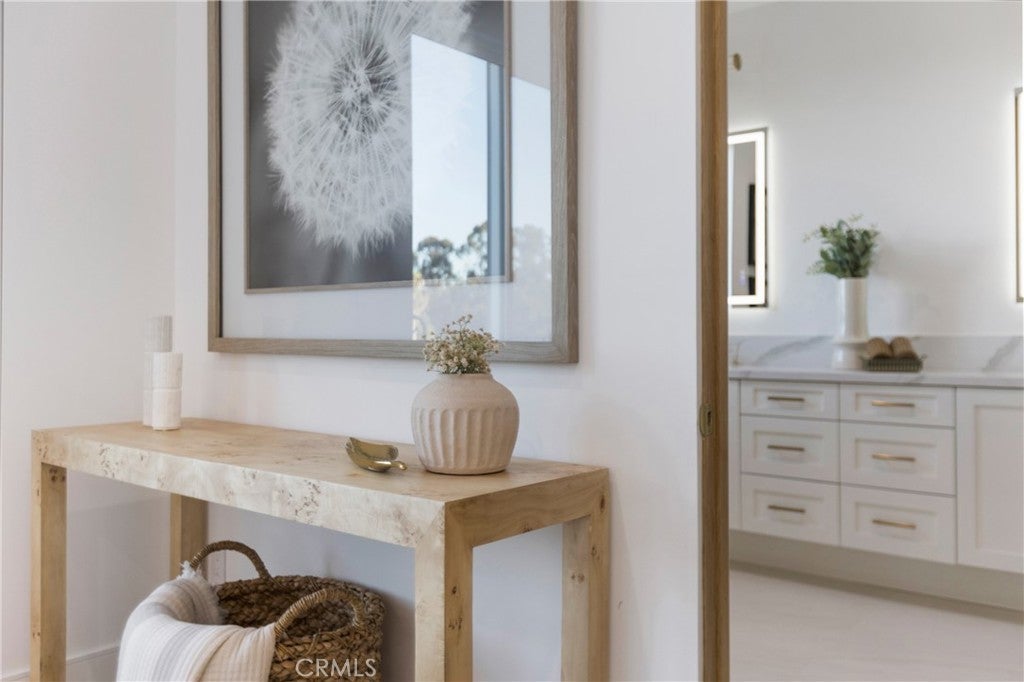 Exquisite Brand-New Contemporary Home in Laguna Niguel. Nestled at the end of a serene cul-de-sac, this corner-unit contemporary residence offers the perfect combination of modern design, luxury finishes, and smart-home technology. With 4 bedrooms, 4 bathrooms, and 2,165 sq. ft., this home is ideal for families, entertaining, and effortless Southern California living. Step inside to a bright, open-concept floor plan featuring soaring high ceilings and expansive windows that frame breathtaking city light views. Every detail has been thoughtfully designed — from the European cabinetry and white oak reeded interior doors to the custom wrought-iron staircase railing. The home's high-end finishes and designer touches create a harmonious blend of elegance and functionality. The gourmet kitchen is a centerpiece of the home, featuring European cabinetry, a wine captain, built-in appliances, and an open layout that flows seamlessly into the living and dining areas — perfect for hosting family and friends. This residence is fully prewired for home automation, including integrated surround sound, ceiling speakers, and ready-to-install TVs in every bedroom, making technology seamless and intuitive. Security and peace of mind are ensured with a Ring door camera and burglary alarm system, while a central vacuum system adds convenience to daily life. Each bathroom reflects modern luxury, with LED mirrors, sleek fixtures, and thoughtfully designed layouts. Closet organizers maximize storage while maintaining style and order. Outdoor living is equally impressive, featuring a built-in BBQ and gas firepit, perfect for entertaining or relaxing under the California sky. The expanded two-car garage and ample guest parking complete this property, ensuring both functionality and comfort. This home is more than just a residence — it is a masterpiece of contemporary design, offering modern technology, premium finishes, and a lifestyle of ease and sophistication. Rarely does a newly constructed smart home of this caliber become available in Laguna Niguel, making this an extraordinary opportunity for discerning buyers.
