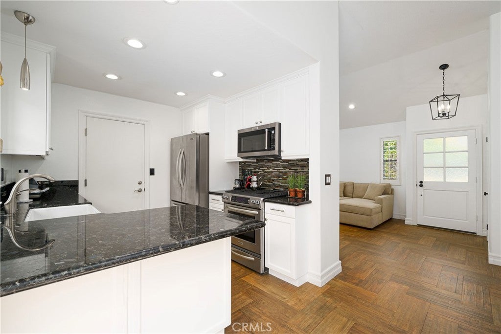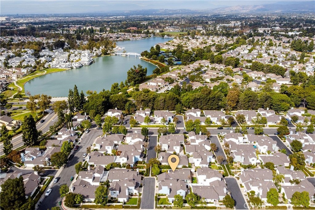 Welcome to your turn-key beautifully upgraded modern 2 bedroom, 2 bathroom, SINGLE-LEVEL end unit home in the prestigious South Lake community of WOODBRIDGE! Enter through a beautifully manicured front yard welcomes you with lush, low-maintenance artificial grass and a charming white picket fence—offering classic curb appeal with modern convenience. Step into this light and bright home featuring a spacious living room with soaring cathedral ceilings that create an airy, open ambiance. A custom-built entertainment center anchors the space with style and functionality, perfectly complemented by a cozy fireplace that adds warmth and charm. This stunning Updated Kitchen combines style and function with granite countertops, a designer glass tile backsplash, and a spacious ceramic farmhouse sink and breakfast bar. Soft-closing cupboards provide a quiet touch of luxury, while sleek stainless-steel appliances offer both elegance and performance. Spacious primary suite featuring mirrored closet doors, built in closet and a modern barn door leading to a tiled en-suite bath. Enjoy a walk-in shower with dual shower heads, a dual-sink vanity, updated lighting, and two medicine cabinets for extra storage. Second bedroom features a built-in closet and its own charming private patio. Guest bathroom includes a bathtub and a new mirror. New paint, new carpet, built-in closets, custom entertainment center, newer HVAC, ceramic wood-look flooring, and designer shutters throughout. Enjoy private back patio. Perfect for entertaining, sitting/lounge space, A built-in gas BBQ station, complete with a refrigerator and prep space, makes outdoor cooking a breeze—turning every gathering into a memorable occasion. Spacious 2-car garage with epoxy floors, built-in cabinets, and direct access to the home. This beautifully situated home is just a short walk to South Lake, the Beach Club Lagoon, Springbrook Elementary, and South Lake Middle School, with Woodbridge High School also nearby. Enjoy easy access to resort-style amenities including pools, parks, tennis courts, and more. With close proximity to major freeways, shopping centers, and dining options, this home offers the perfect blend of comfort, convenience, and community. Truly a must-see! ONE COMMON WALL ONLY ATTACHED AT THE GARAGE ..... LOW ASSOCIATION DUES , NO MELLO ROOS!