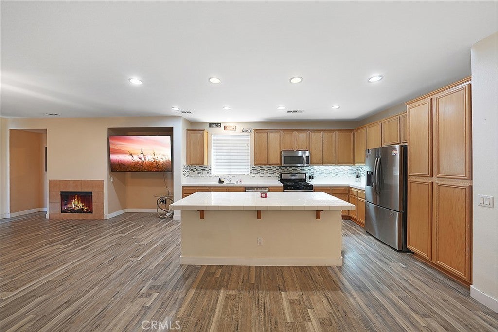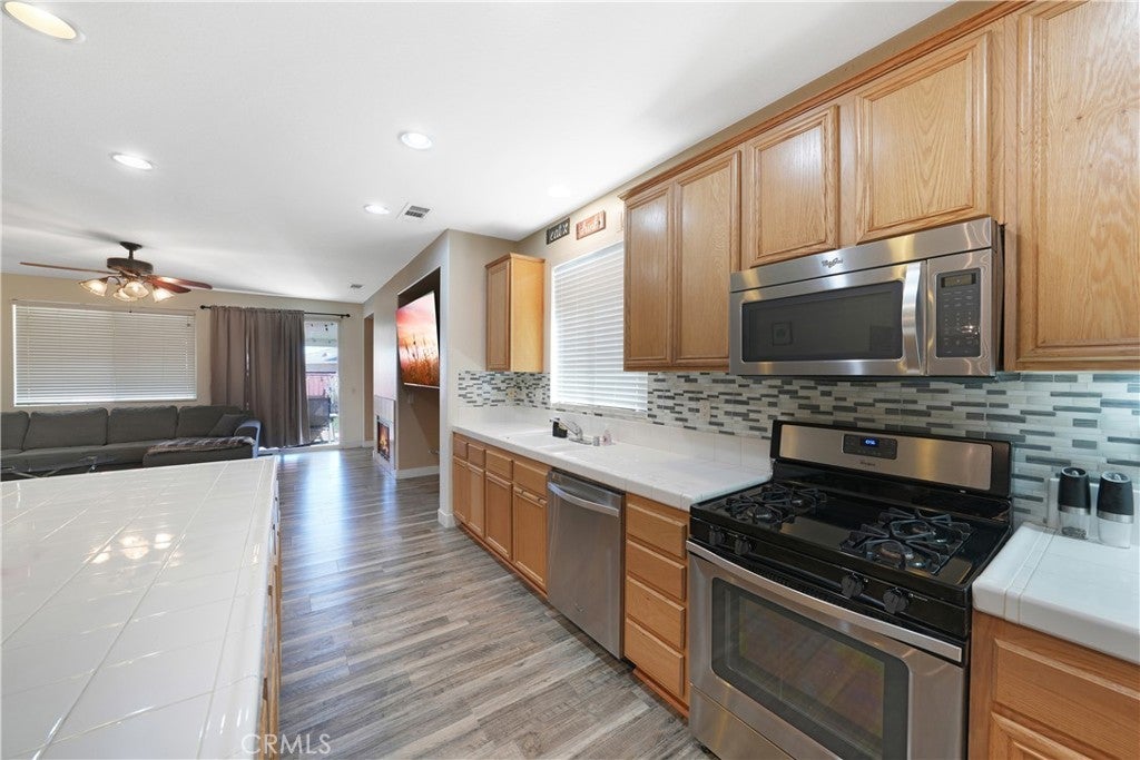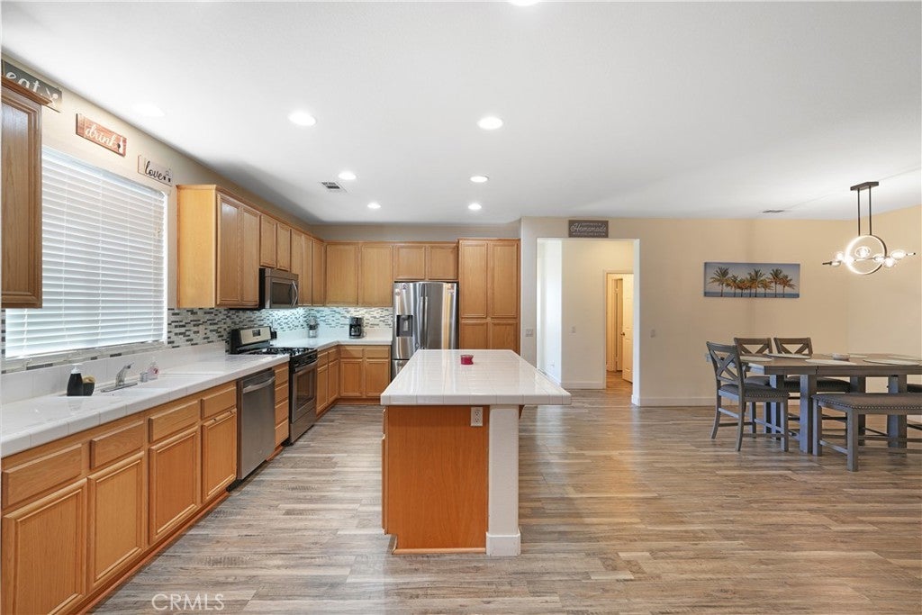**Back on Market** (Buyer did not perform). Appraisal in hand, reflecting $488,000 value. Fantastic listing in the Beautiful, Oak Hills area of Hesperia. If you're looking for a spacious, single level home with low maintenance side/back yards and huge RV parking, then look no further! This home has recently undergone an expansive exterior upgrade. The massive, gated RV parking has been updated from dirt/gravel to CONCRETE, complete with its own RV clean out access that's connected directly to city sewer! The back yard beautification includes new, low maintenance, drought resistant turf, perfect for your furry friends. Yard is also equipped with a large, covered patio, great for hosting outdoor gatherings. The home boasts 4 bedrooms and 2 bathrooms with over 2000 sqft of single level living area, which recently had NEW VINYL FLOORING installed throughout the entire home. The open concept living and kitchen area with an over-sized island lends itself as the perfect gathering point for any occasion. Make your way down the hallway and you'll see 3, generously sized bedrooms and 1 bathroom. Make your way to the end of the hallway and you're greeted by your enormous primary bedroom, complete with a vast, primary bathroom and spacious walk-in closet. With this home you don't need to worry about the costly electricity bills from running your central AC during those hot, summer months or charging your electric vehicle with the included TESLA CHARGER as this home comes fully equipped with a SOLAR PRODUCTION SYSTEM. Production covers 100% of the current owners monthly electricity usage. This home is a fantastic opportunity and will not last long.