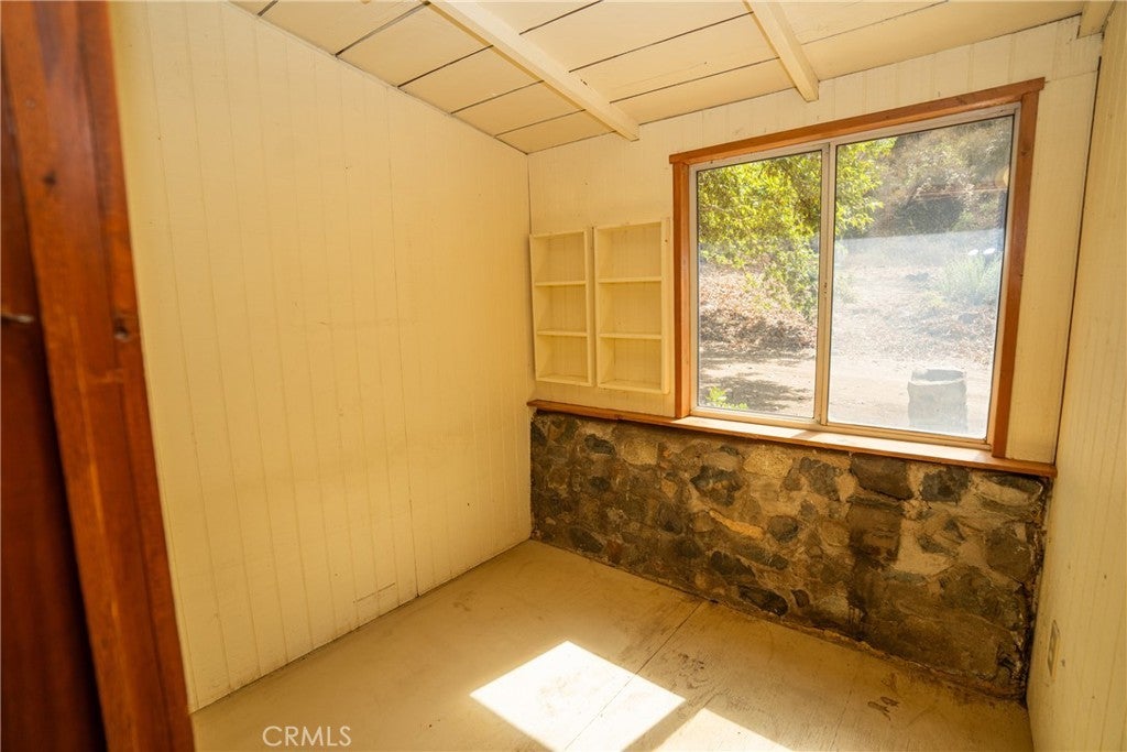 All Bedrooms Down, Beamed Ceilings, Bedroom on Main Level, Ceiling Fan(s), Country Kitchen, Galley Kitchen, High Ceilings, Main Level Primary, Storage, Unfurnished, Wood Product Walls
