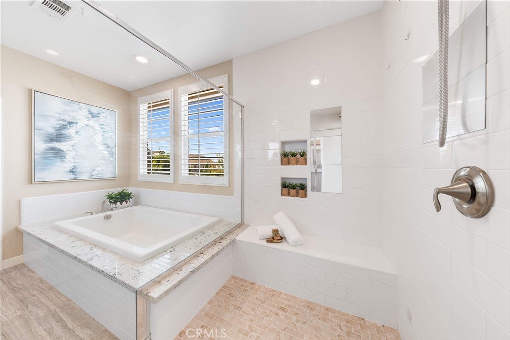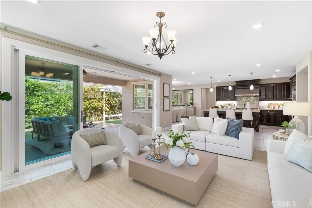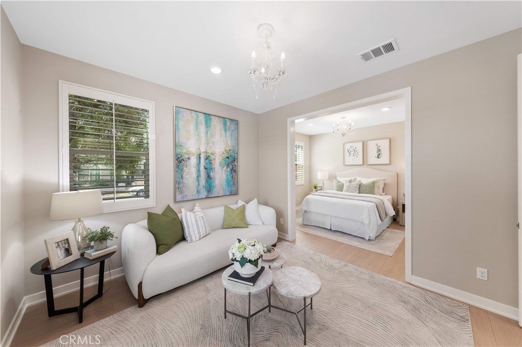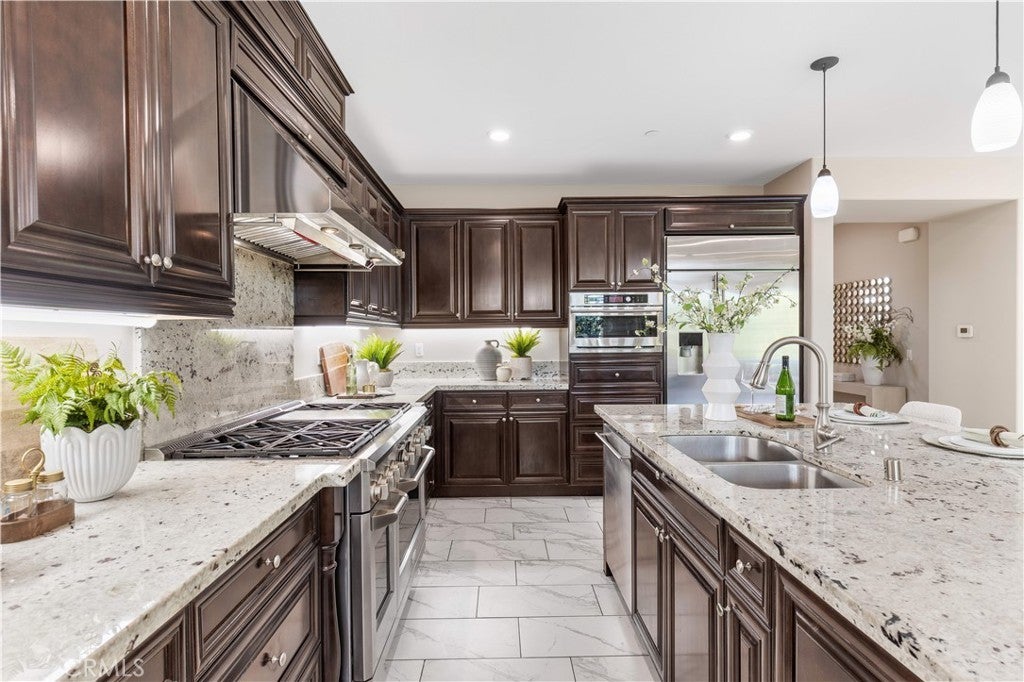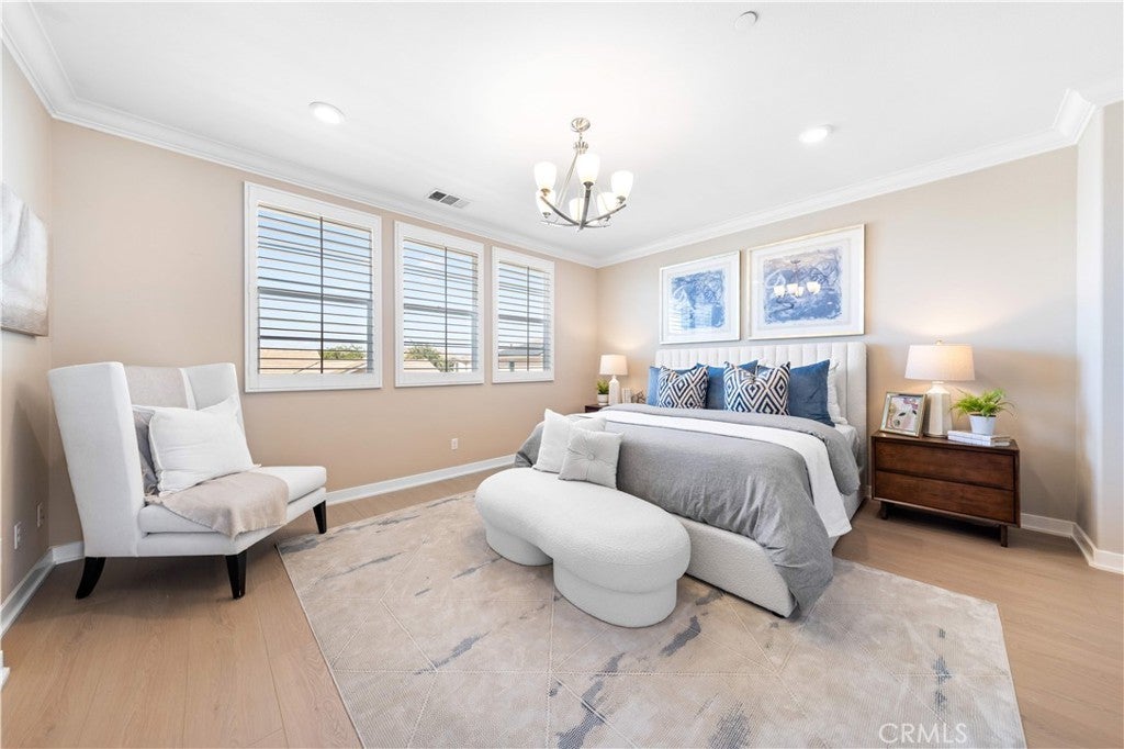 Corner-lot luxury home in Beacon Park at Great Park! This 3,250 sqft residence stands proudly as the most prominent, eye-catching home on the street, with a grand, wide front entrance and abundant natural light. It features 5 bedrooms and 5.5 baths, each with its own en-suite. A standout feature is the first-floor private suite, ideal as a secondary master with sitting room, bedroom, and full bath—perfect for guests or multi-generational living. Another first-floor bedroom offers flexible use as an office, gym, or guest suite. Upstairs, the main master and additional bedrooms provide ample family space, plus a spacious balcony with views of the Bosque trail. Set on a 5,283 sqft lot, the home boasts a beautifully landscaped backyard. The interior includes a gourmet kitchen with high-end appliances, a large center island with a built-in wine cooler, and luxury tile floors extending to the California Room—perfect for entertaining. Thoughtful upgrades such as an epoxy-coated garage floor, plantation shutters, and enhanced tile flooring on the first level further elevate the home’s comfort and elegance. Energy-efficient design keeps the home comfortable year-round. Enjoy 1.8-mile Bosque trails, parks, and recreational amenities, with top-rated schools within walking and biking distance—Beacon Park K–8 and Portola High. The community is evolving with world-class amenities under development, including sports fields, library, museums, botanical garden, artificial lakes, and an open-air theater. This home combines luxury, functionality, and lifestyle in the heart of Great Park—truly a standout opportunity.