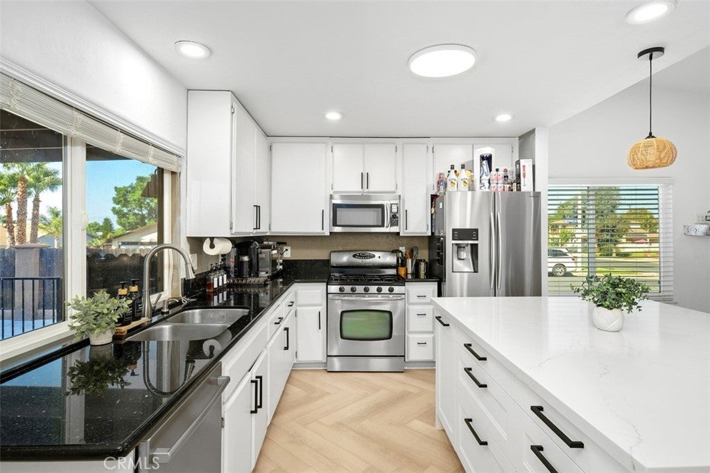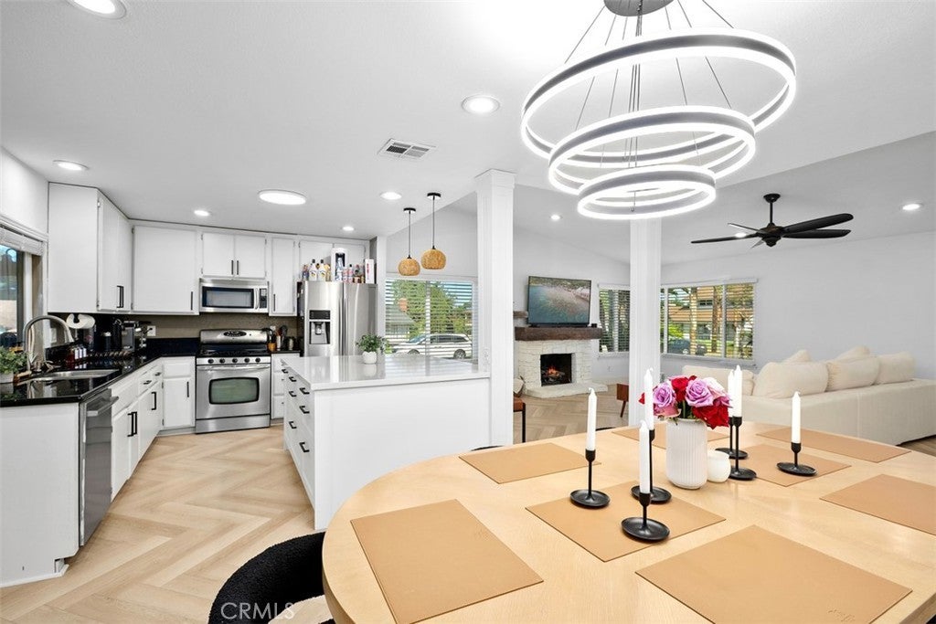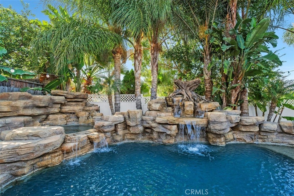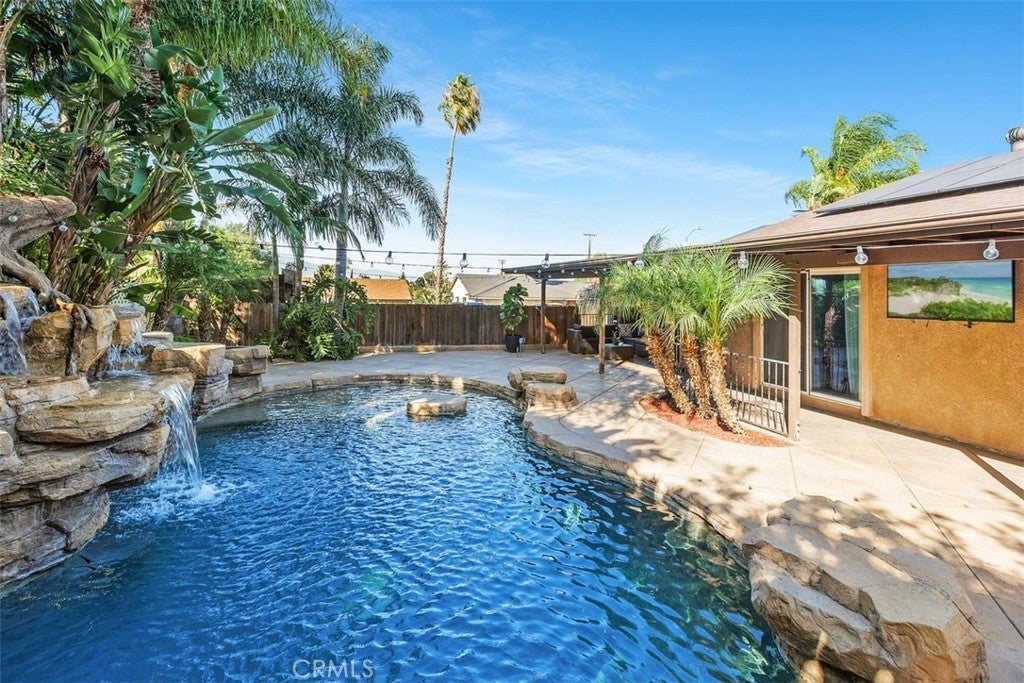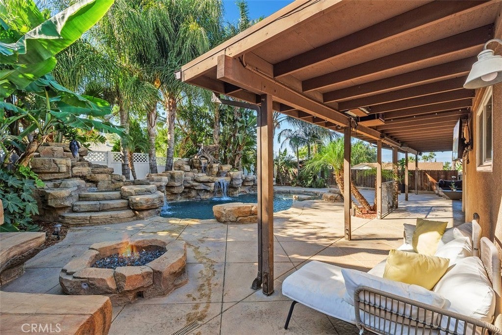 As you step into this resort-style retreat, you’re greeted by light, space, and the feeling that every day could be a getaway. Beautifully updated throughout, this single-story home features a custom rock pool and spa on a premium corner lot with gated RV parking — with the possibility to create an ADU (buyer to verify with the City of Corona), opening doors for multigenerational living or added income. LOW TAXES & NO HOA keep ownership simple. Inside, the open-concept design flows effortlessly across 1,624 sq. ft. with four bedrooms and two bathrooms. The newly added custom kitchen island and extra storage is a chef’s dream, paired with stainless steel appliances and seamless connection to the vaulted great room with cozy fireplace, LED lighting, and new LVP flooring (2025). Step outside to your private resort-like backyard oasis — a stunning rock pool and spa with waterfall and PebbleTec finish, a covered patio with TV, firepit, lush tropical landscaping, stamped concrete, accent lighting, storage shed, and gated dog run an entertainers dream. Thoughtful upgrades include a newer roof, new water heater (2025), newer dual-pane windows, newer HVAC, fresh interior paint (2025), a custom front door, mirrored wardrobes, smooth ceilings, solar panels, and elegant shutters. The primary suite opens directly to the backyard and features a luxurious walk-in rock & stone shower, while three additional bedrooms offer flexible living space. With welcoming curb appeal, a two-car garage with extended driveway parking, and ready for RV hookups, this home is move-in ready and built for the way you want to live. Close to schools, shopping, dining, and easy freeway access — it’s peaceful, bright, and ready to make everyday living (and unforgettable gatherings) feel effortless.