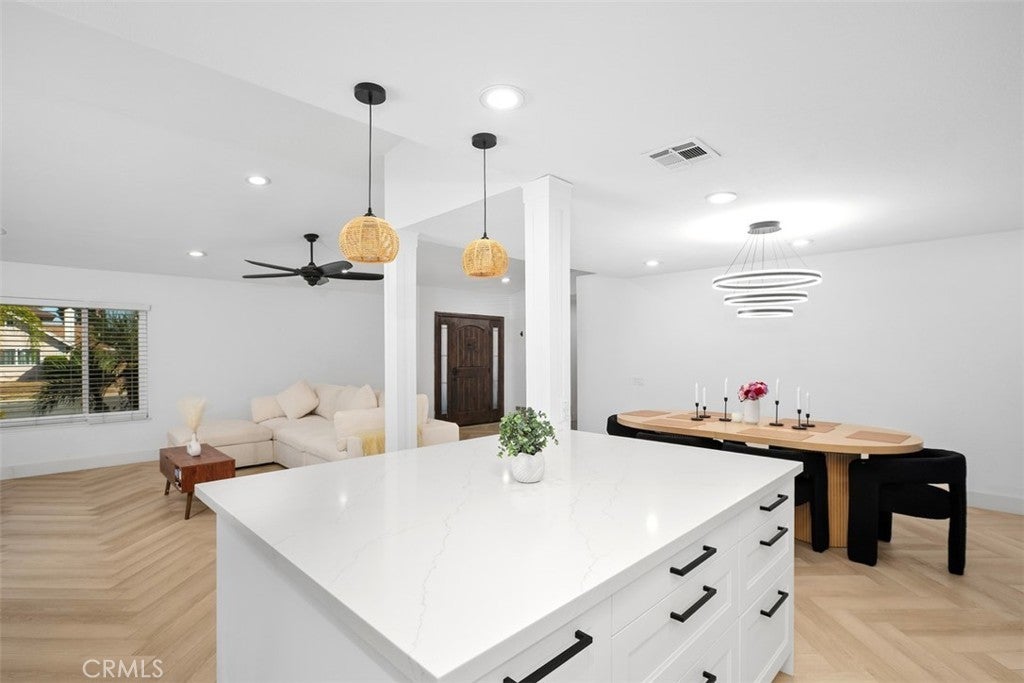 Ceiling Fan(s), Separate/Formal Dining Room, Eat-in Kitchen, Granite Counters, High Ceilings, Recessed Lighting, All Bedrooms Down, Primary Suite, Walk-In Closet(s), Attic, Dressing Area, Instant Hot Water, Stone Counters