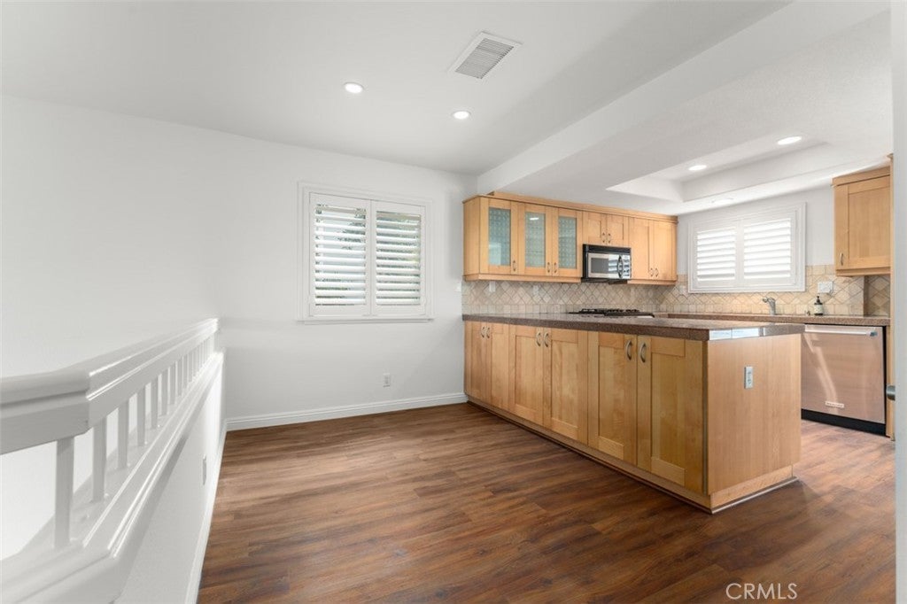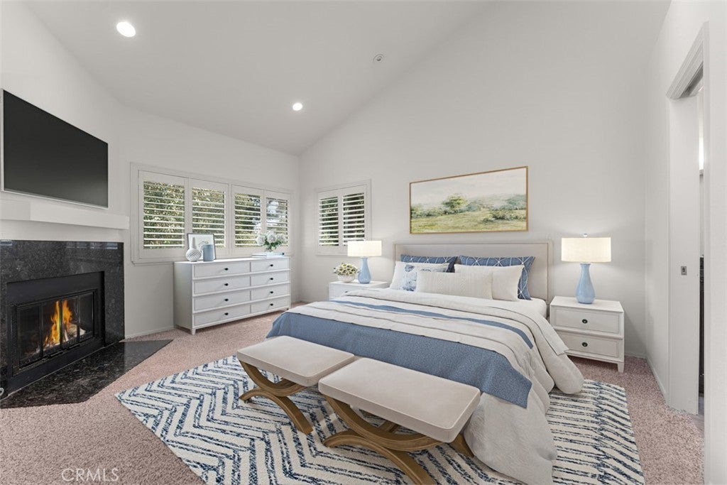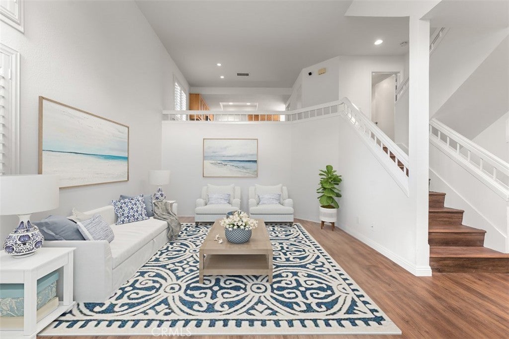Discover your serene retreat in this beautifully updated stylish 2-bedroom end-unit townhouse, perfectly nestled in the heart of Laguna Niguel. Bathed in natural light, this home features soaring vaulted ceilings and picturesque views of lush trees and scenic walking trails. The unique open-concept floor plan flows effortlessly, showcasing a cozy fireplace in the inviting living area and a modern kitchen designed for culinary enthusiasts. The kitchen boasts sleek stainless steel appliances, stunning stone countertops, and a tumbled travertine backsplash, complemented by elegant shaker-style maple cabinets. Enjoy sunlit mornings in the charming eat-in dining nook with a bay window. This home offers two spacious master suites, each with its own private full bathroom, ensuring comfort and privacy. Additional highlights include a convenient laundry room, a two-car garage with direct access, fresh paint, new carpet, a newer AC and furnace, and a water softener for enhanced living comfort. Ideally located near Laguna Niguel Lake, Crown Valley Community Park, and the Laguna Niguel Botanical Gardens, this townhouse provides easy access to scenic walking and biking trails, as well as nearby shopping, dining, and the coastal charm of Laguna Beach and Dana Point. Welcome home to tranquility and style! Welcome home to 24839 Nueva Vista.