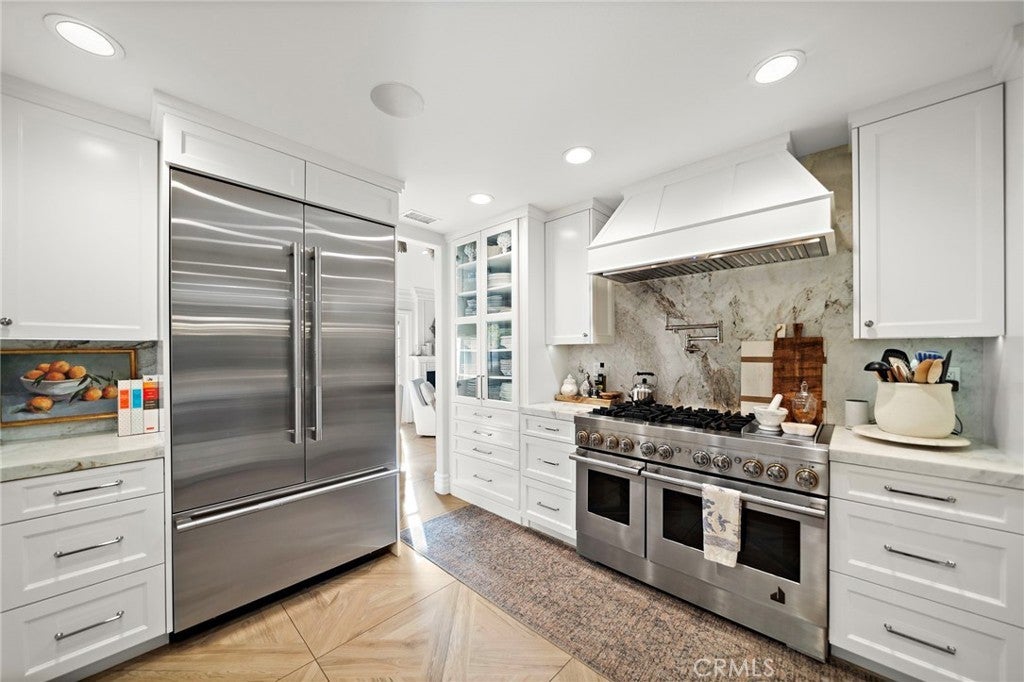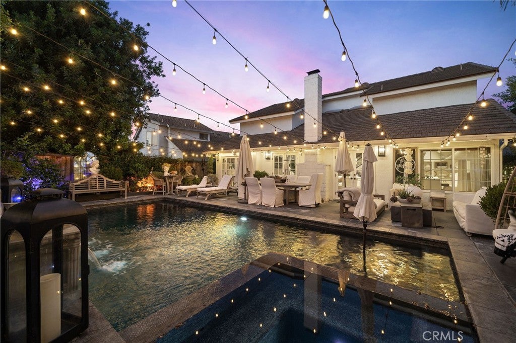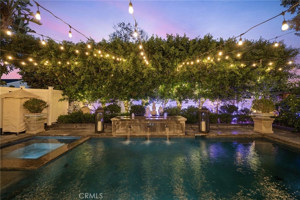 Don't miss out on this one-of-a-kind GEM! Located in the heart of Irvine's highly sought after Northwood community, this highly upgraded pool home with soaring vaulted ceilings offers 4 bedrooms, 2.5 baths, a large loft, and touches of custom design and quality craftsmanship that truly bring this unique, warm home to life! Elegant design elements include crown molding, wainscoting, skylights, romantic fireplace, custom wallpaper, dutch doors, high-end light fixtures, recessed lighting, and custom entertainment/closet built-ins throughout! Step outside into your own private oasis with NO HOMES BEHIND to find the real meaning of tranquility. Enjoy entertaining around the beautiful pool or relaxing under the gazebo while surrounded by the peaceful ambiance created by multiple water features, an abundance of greenery, incredible lighting, and the soothing aroma of jasmine. Recently remodeled, the luxurious kitchen is adorned with beautiful Calacutta marble, professional grade stainless steel appliances including a dual oven and large range hood, pot filler, oversized Rohl stainless steel sink, step-in pantry, and a peninsula with bar seating. Plenty of soft-close cabinetry, counter space, and bright light make this kitchen a living dream! The main floor primary suite is fit for royalty, with a custom built-in entertainment and storage system, french doors opening to the magnificent backyard, and a large bathroom with Pereira marble flooring and countertops, walk-in closet, oversized shower with dual shower heads, and a standalone tub. Head upstairs to find the large loft, three bedrooms, and a full bathroom. Other upgrades include: Nest thermostat; interior and exterior surround sound system; alarm system equipped with door, window, and motion sensors; newer dual paned vinyl windows. Dedicated laundry room and 2-car garage with epoxy flooring and overhead storage and cabinetry.