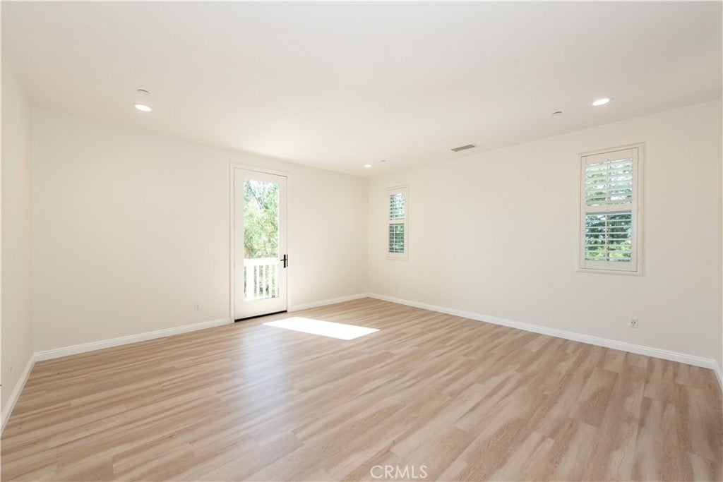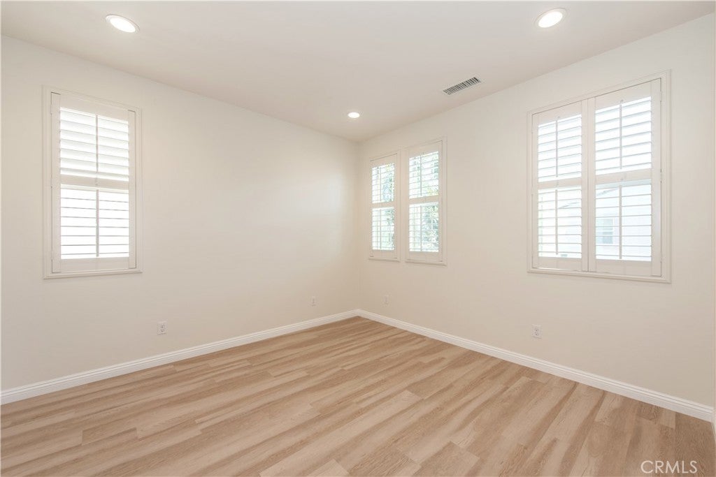 Located in the highly sought-after Portola Springs village of Irvine, this elegant 4-bedroom, 3.5-bath residence sits on a premium corner lot, offering exceptional privacy, abundant natural light, and beautiful curb appeal. The home features a rare full driveway and an attached two-car garage. Step inside to an inviting open-concept floor plan with modern flooring, neutral designer paint, and custom wood shutters throughout. The spacious great room connects seamlessly to the chef's kitchen, featuring quartz countertops, full back splash, a centeral island, upgraded cabinetry, and stainless-steel appliances perfect for entertaining or everyday living. The first-floor guest suite offers privacy and flexibility for visitors, extended family, or a home office. Upstairs, the luxurious primary suite features a spacious walk-in closet and a spa-inspired bathroom with dual vanities and a walk-in shower. Two additional bedrooms, a full bath with double sinks, a convenient laundry room, and a versatile loft with its own private deck complete the upper level, providing the perfect space for work, play, or relaxation. Enjoy true California living in the wrap-around private backyard, ideal for outdoor dining or quiet moments under the sun. Energy efficiency is built in with paid-off solar panels, a tankless water heater, and a whole-home water-softening system. Within walking distance to top-rated Portola Springs schools, parks, and scenic trails, and just minutes from shopping, dining, and major freeways, this turnkey home offers the perfect blend of comfort, style, and modern convenience.