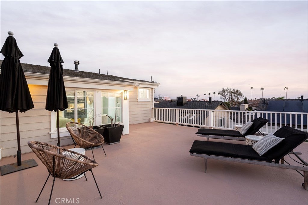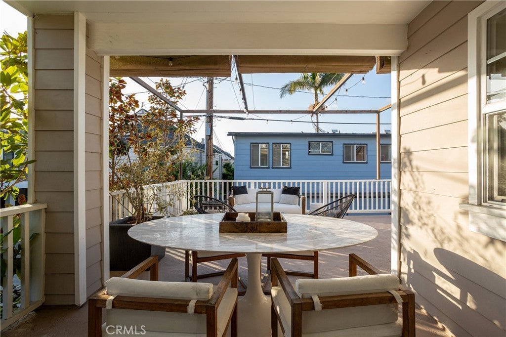 Located on the coveted Flower Streets of Corona del Mar, this stunning home sits on the ocean side of PCH, perfectly positioned in the heart of the Village. Rare in design, this rear unit lives like a front home, offering both privacy and space with its wide side alley, attached two-car garage, and two generous decks. Inside, three bedrooms and three en-suite baths blend modern luxury with coastal charm. The primary suite features a cozy fireplace, spa-inspired bath, and a private rooftop deck with sweeping views—your own sanctuary above the Village. Light pours through every space, accentuating the French oak floors and the bright, open-concept living area. The crisp white kitchen flows effortlessly into the great room and onto a lushly landscaped deck—complete with retractable cantilevers that transform it into an all-season entertaining retreat. No detail has been overlooked, with high-end finishes throughout, including Viking appliances and Carrera marble accents. Whether as your full-time residence or a refined coastal escape, this turn-key home captures the quintessential CDM lifestyle—vibrant, elegant, and distinctly inviting.