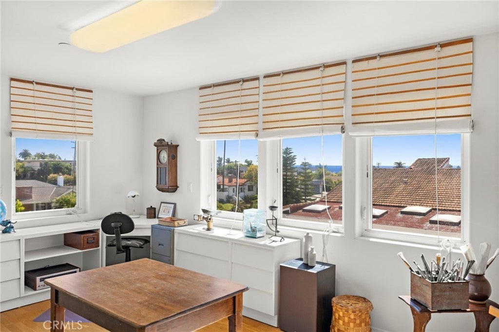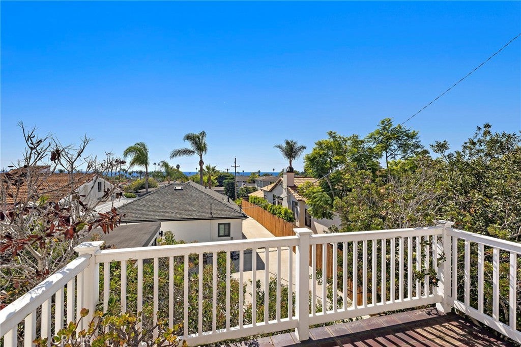 Just a short distance from the shimmering Pacific Ocean, this home embodies the quintessential Southwest San Clemente lifestyle—a perfect balance of laid-back coastal charm and comfortable, everyday beachside living. Here, every day feels like a beachside retreat. Ride your golf cart to neighborhood gatherings or Avenida Del Mar’s boutique shops and restaurants. Walk or bike to the popular T Street and Lost Winds beach or surf world-renowned Trestles just minutes away. The home itself radiates warmth, offering the ambience of a welcoming embrace the moment you step inside. This custom residence, lovingly built and held by the original owner, captures the heart of a true San Clemente beach home. The entry opens into a sunlit living space, where soaring ceilings, picture windows, and a sliding glass door create a sunny sanctuary filled with ocean breezes. Wood floors carry throughout both levels, setting a timeless tone. The formal living room, anchored by a dual-sided fireplace shared with the family room, invites gatherings both large and small. Across from the living room, the formal dining room offers an elegant space for entertaining. Toward the back of the home, the kitchen, breakfast nook, and family room flow together seamlessly, creating the perfect hub for everyday living. A main floor bedroom and bathroom add flexibility for guests or multigenerational living. For added convenience, there are laundry facilities on both the first and second floor. Ascending the stairs, you’re welcomed by an airy landing with built-in bookshelves and a seating area where the OCEAN VIEW creates a perfect setting for reading or relaxing. The OCEAN VIEW PRIMARY SUITE is a retreat of its own, generous in scale with a fireplace and sliding doors that open to an ocean-view deck. The ensuite bathroom features dual sinks, tiled flooring and counters, a soaking tub, a walk-in shower, and an exceptionally spacious walk-in closet. Two additional sunlit GUEST BEDROOMS, EACH WITH OCEAN VIEWS, share a hall bath. Additional highlights include a three-car garage with soaring ceilings—ideal for a car lift—plus driveway parking. Practical enhancements such as a durable metal shingle roof, steel framing, vinyl shingle siding, dual-pane windows and sliders, and dual hot water heaters ensure lasting quality.