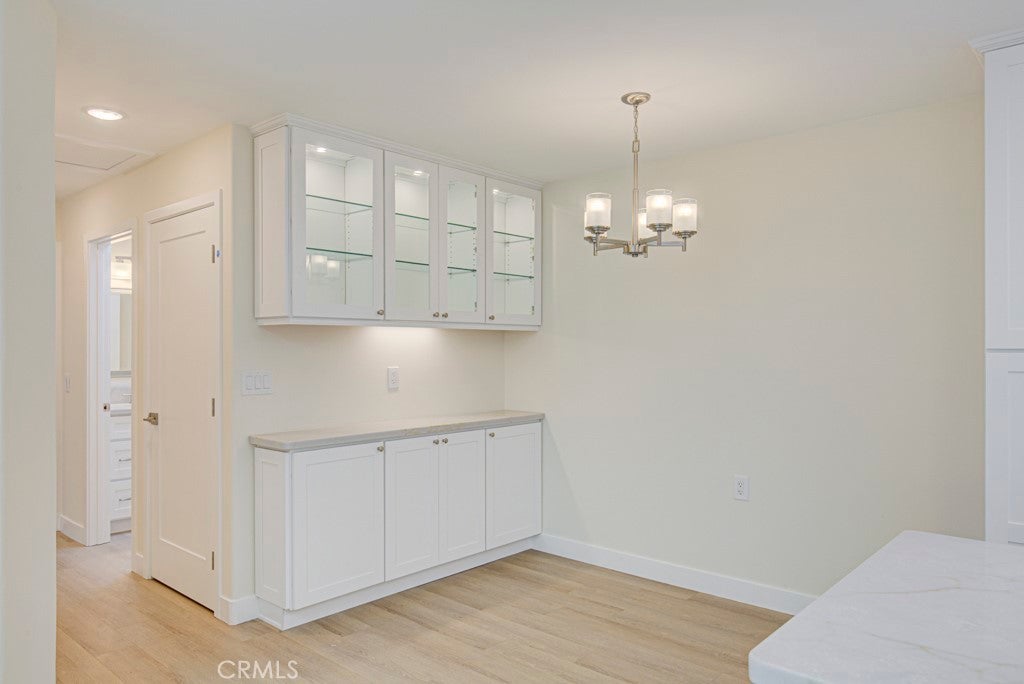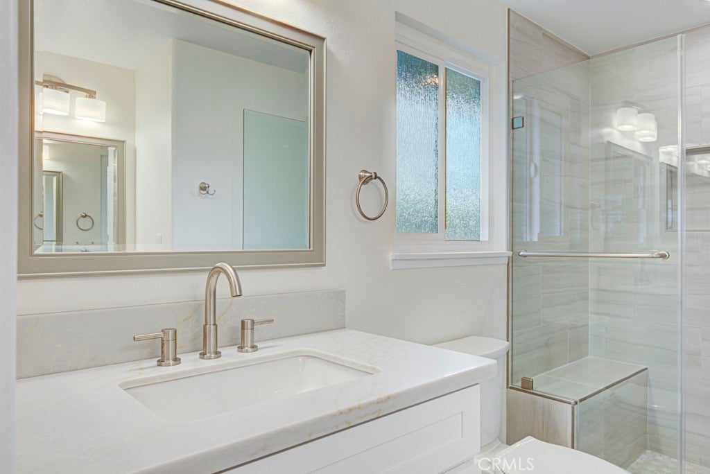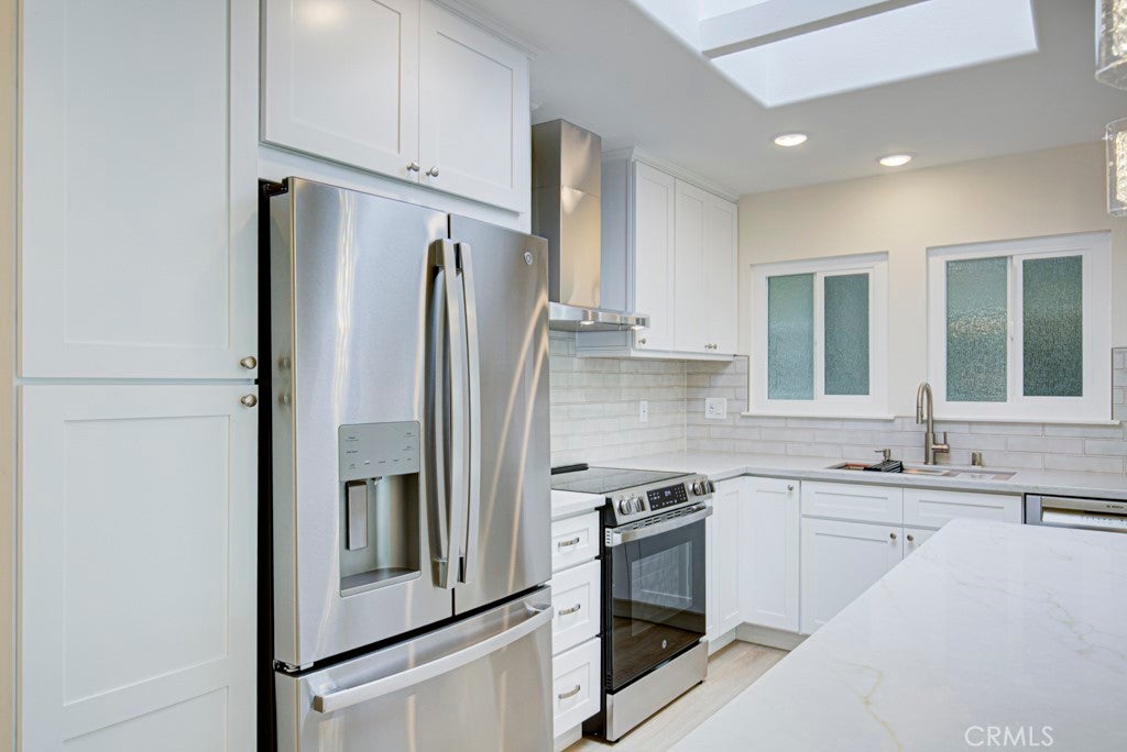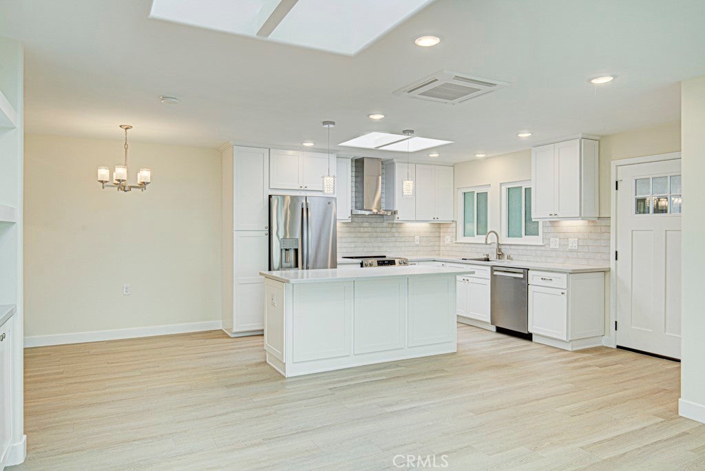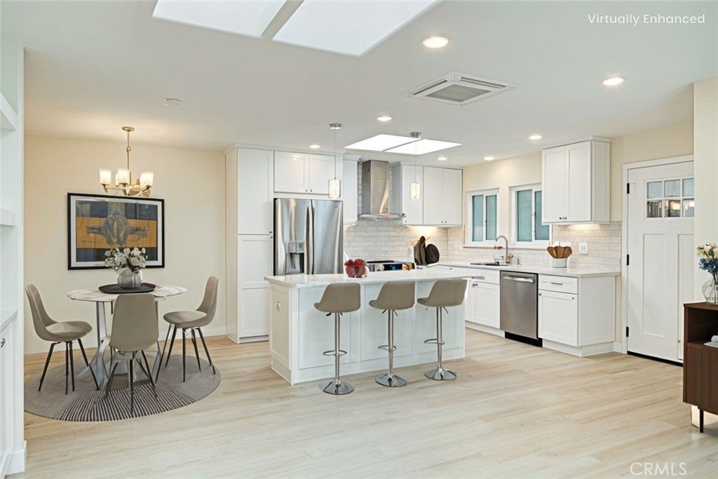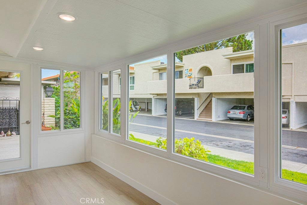 Light, bright, and newly remodeled single-level 2BR/2BA in Laguna Woods Village (55+) Gate 5 with no one above or below and same-level carport for easy access. A reimagined plan opens to an enclosed, covered patio converted to a sunroom-perfect for office, art space, or morning coffee. The living room with built-in entertainment center and electric fireplace is bathed in natural light from a Velux solar skylight with remote-control shade. The new kitchen adds a walk-in pantry, GE range & refrigerator, Bosch dishwasher, and euro-style hood. In home laundry with LG washer/dryer. Year-round comfort via an energy-saving mini-split A/C (ceiling cassette) with independent zone control. The primary suite features a remodeled bath with double vanity and linen cabinet. Solid wood interior doors with Craftsman-style entry door. Approx. 1133 sqft of easy single-level living plus a sun-filled bonus room. Enjoy resort amenities - clubhouses, 5 pools & spas, 27 hole golf courses, tennis courses, fitness centers, equestrian facilities, garden centers, library, art & crafts, studios, and 200+clubs- about 6 miles to Laguna Beach and close to shopping, dining, medical, and major routes.