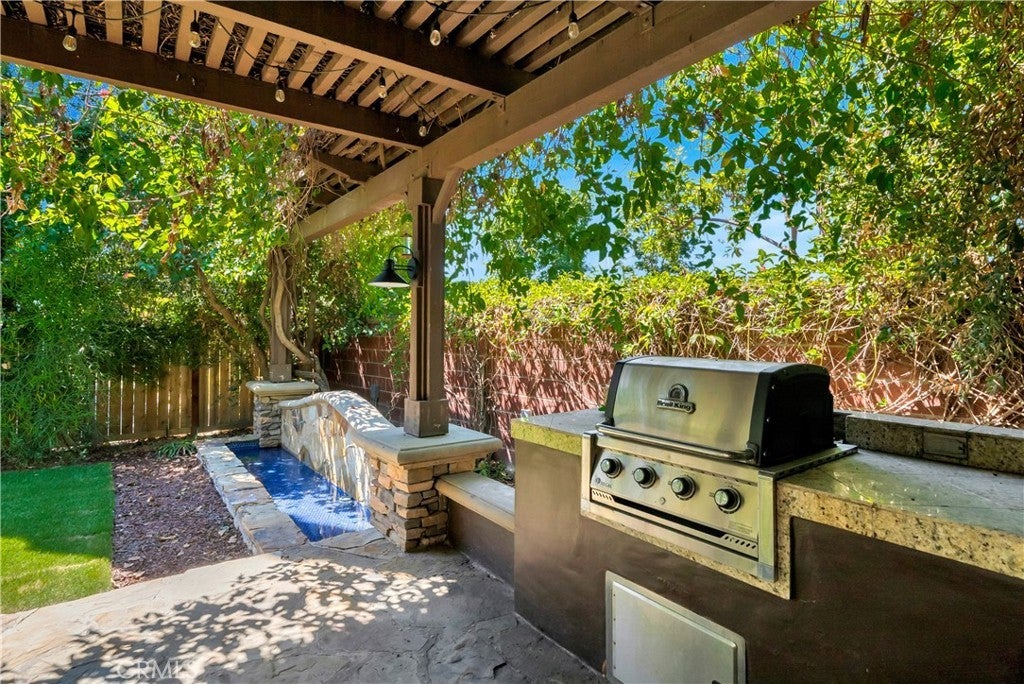 Nestled in the highly desirable Potters Bend neighborhood of Ladera Ranch, this wonderful 3 bedroom, 2.5 bath home spanning over 1,700 square feet and situated on one of the largest lots in the neighborhood, showcases an array of impressive features throughout. First floor offers a large living room with cozy fireplace that looks out onto the backyard, providing the perfect flow for entertaining. The recently remodeled kitchen boasts quartz counter tops, newer stainless appliances, recessed lighting, and separate eating area with custom lighting. Upstairs features 2 spacious secondary bedrooms along with a large primary suite offering a walk in closet, remodeled bathroom with dual vanities, oversized tub and separate shower. Laundry room is also conveniently located on the second level adding to the home's practicality and comfort. The oversized backyard has been thoughtfully designed for both beauty and function, featuring newly installed grass, built-in BBQ, soothing water fountain, along with tailored hardscape and mature landscape making it perfect for outdoor gatherings and quiet evenings alike. 2 car garage completes this incredible home. Prime location as this home is walking distance to Ladera Ranch Elementary and Middle Schools, Library, and Clubhouse. Ladera Ranch association amenities include high speed internet, award winning schools, 13 pools, 4 club houses, tennis, water parks, skate park, community events, and miles of biking & hiking trails. This home is a rare find, offering both luxury and comfort in one of Ladera Ranch's most ideal communities. Don't miss the opportunity to make this exceptional property your own.