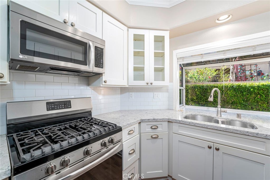 Beautiful single-level condominium located in the highly desirable community of Aliso Viejo. This bright and open home offers 2 bedrooms, 2 bathrooms, and an attached one-car garage with ample storage. The remodeled kitchen features granite countertops, updated cabinetry, and a breakfast bar that opens to the dining and living area. The spacious great room includes a cozy fireplace and sliding doors leading to a large private patio that backs to a tranquil lawn and pocket park. The primary suite offers a walk-in closet, a remodeled bathroom with a large soaking tub/shower combination, and direct patio access. Additional features include inside laundry with washer and dryer included, updated bathrooms, and direct gate access to the nearby pocket park. The community features 2 pools, spas, and a walking path. This property combines comfort with resort-style amenities. Conveniently located near Laguna Beach, Dana Point, shopping centers, dining, parks, and hiking/biking trails. Enjoy all that Aliso Viejo has to offer in this beautiful move-in-ready home.