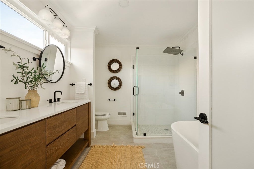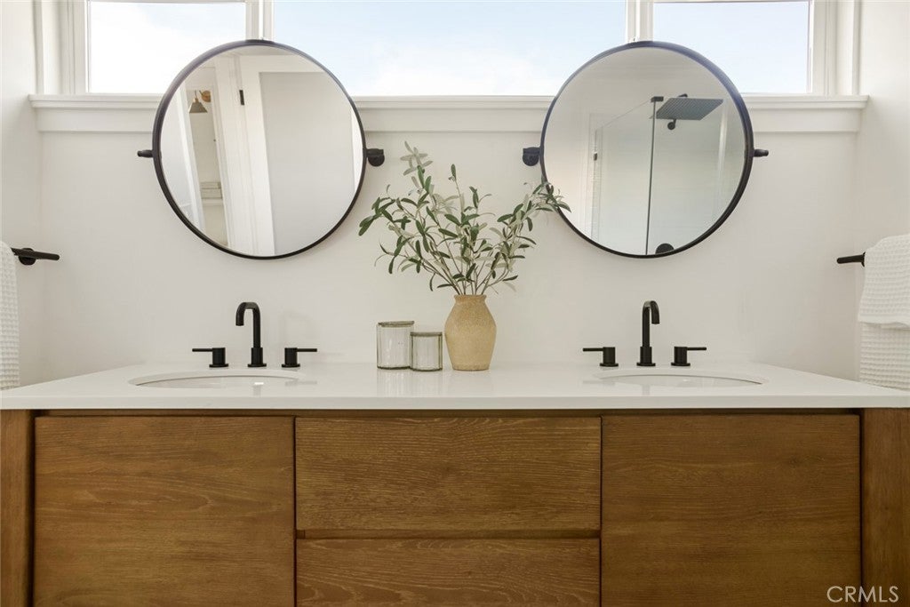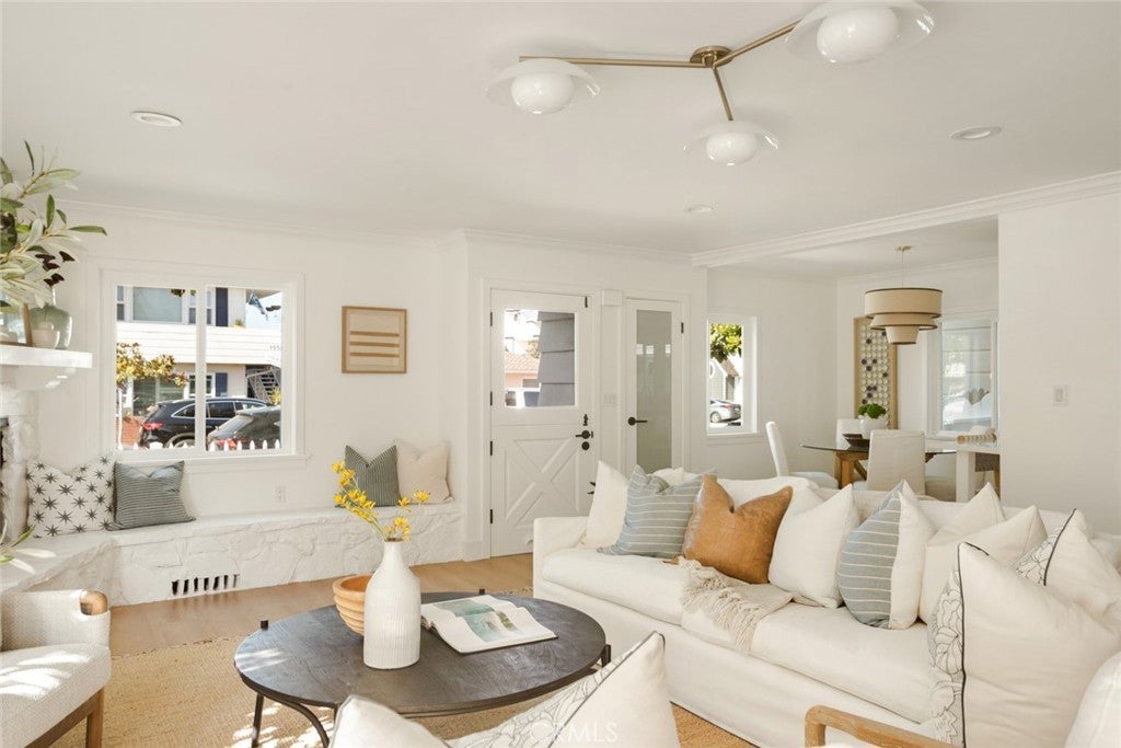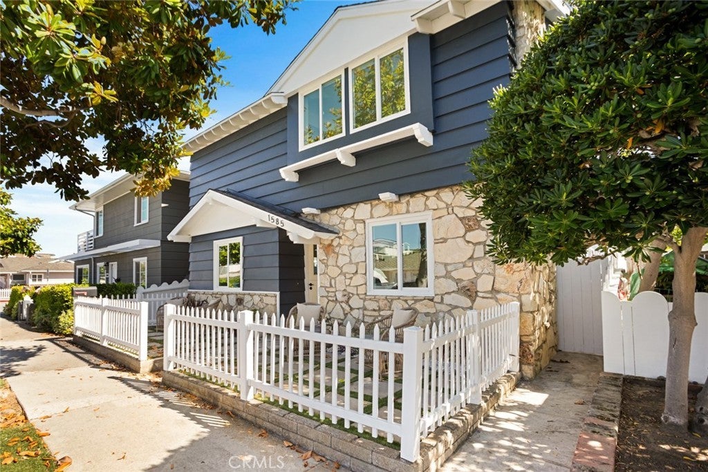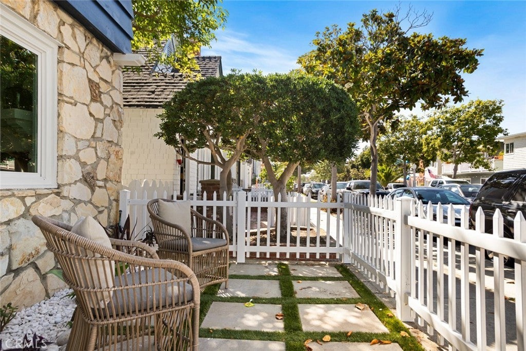 Nestled in the heart of Newport Beach’s coveted Balboa Peninsula, just two blocks from beaches along the Pacific Ocean and nearly as close to Newport Bay, this exceptionally upgraded and remodeled home is destined to enhance your lifestyle. Stroll to fashionable cafés, restaurants, shops and galleries, or relax at home on your inviting front patio, complete with a classic white picket fence. Beyond the Dutch entry door, a reimagined first level reveals open-concept style with a seamless dining room, living room and kitchen. A custom mantlepiece and white stone hearth grace a corner fireplace, while the new kitchen opens to the dining room with a passthrough bar and hosts Shaker cabinetry, stainless appliances, quartz countertops and a door to the side yard. Elegant craftsmanship is revealed through the inclusion of crown molding, wide white oak-inspired luxury vinyl plank flooring, designer lighting fixtures and custom wall treatments. Approximately 2,630 square feet, the four-bedroom, three-bath residence continues indoor/outdoor living on the second level, where a private deck is accessed by a versatile den, the primary suite and a secondary bedroom with separate entrance, making it perfect for guests. A spiral staircase leads from the main deck to a sunny rooftop deck with panoramic city-light views, and both decks are finished with slotted wood flooring. The primary suite showcases a sitting area, wood-finished accent wall, a romantic fireplace with floating hearth, a spacious dressing area with mirrored wardrobes, and a new custom bath with rain shower, freestanding tub and dual sinks. Further enrichments are led by recessed LED lighting, upgraded windows and sliding-glass doors that bathe interior spaces in natural light, a fresh white color palette, and an attached two-car garage. Close to The Wedge, a world-renowned surf spot, and minutes from Fashion Island, Balboa’s pier and Fun Zone, scenic parks, golf courses and luxury resorts, this turnkey home presents the ultimate mix of style, functionality and proximity to the water.