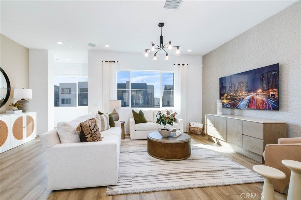 FULLY FURNISHED by a designer, all you have to do is pack your toothbrush! This exquisite move-in-ready model home features 4 bedrooms, 3 bathrooms, and a dedicated office across 2,100 square feet of thoughtfully designed living space. Ideally situated in Solis Park, a vibrant enclave within the prestigious Great Park master-planned community, this residence offers a perfect blend of comfort and convenience. The first floor includes an attached two-car garage, while the second level boasts a spacious great room, a contemporary kitchen, and a bedroom with a full bathroom. The kitchen is elegantly appointed with quartz countertops, upgraded cabinetry, and brand-new stainless-steel appliances. The third floor showcases the luxurious primary suite and two additional bedrooms. Zoned for the highly acclaimed Irvine School District, the home is just a short walk from Portola High School, the K–8 Solis Park School, and the community’s amenities, including a park, pool, and clubhouse. Additional highlights include fully paid-off solar panels and the inclusion of all furniture, TV, and washer/dryer—making this truly a move-in-ready home you won’t want to miss.