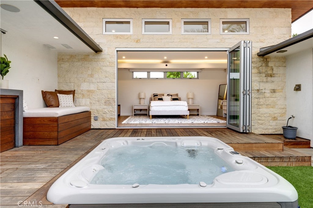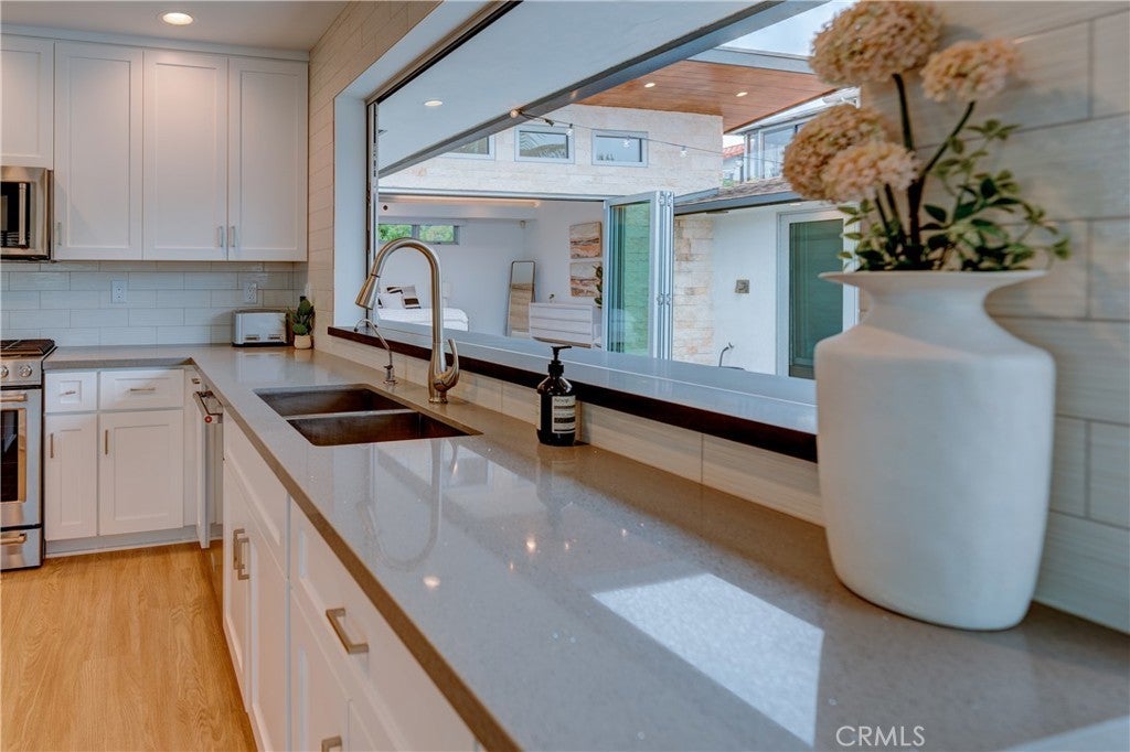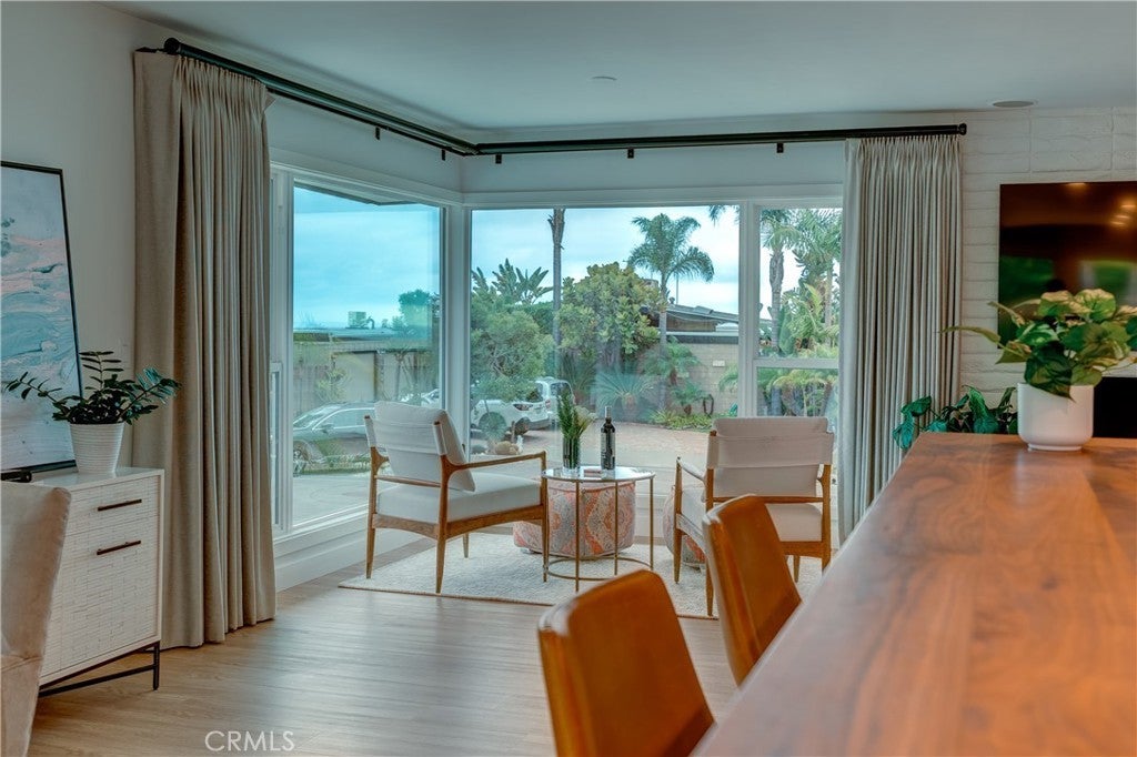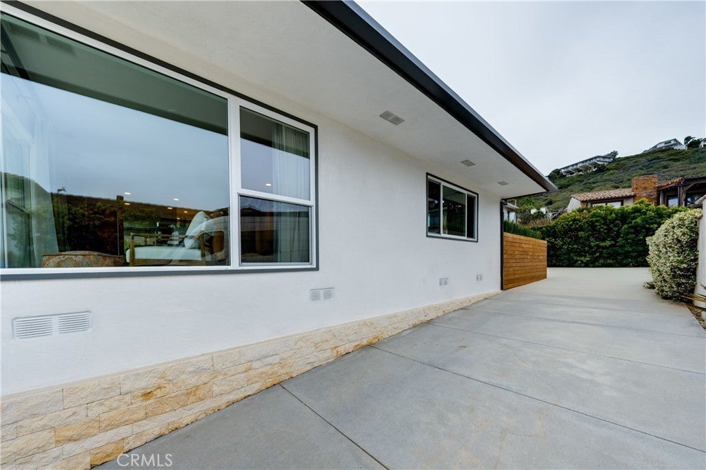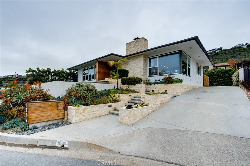 Price reduced $151,000! Seller is motivated. Tucked away on a peaceful cul-de-sac in Southeast San Clemente, this beautifully redesigned single-level home captures sweeping ocean and island views, offering a rare blend of tranquility, style, and location. Completely reimagined by Eyoh Design in 2015, the home reflects a refined coastal aesthetic inspired by mid-century modern architecture and organic materials. From the moment you arrive, the thoughtful design is evident—clear cedar siding, Ipe wood accents, limestone details, and textured concrete create a warm, modern exterior. A custom pivot entry door opens into an expansive great room where floor-to-ceiling picture windows frame endless ocean views. A sleek mid-century style fireplace, built-ins, and seamless indoor-outdoor flow set the tone for sophisticated beachside living. The open-concept kitchen features shaker-style cabinetry with a beachy twist, a custom Walnut waterfall bar, stainless steel appliances, and a pass-through window that connects directly to the outdoor concrete bar—perfect for entertaining. The outdoor spaces are just as impressive. A private rear courtyard features Ipe decking, built-in seating, and lush landscaping that feels like a secluded retreat. Two bedrooms with ocean views share a stylish full bath, while a separate powder room accommodates guests. The standout feature is the luxurious primary suite, added during the 2015 renovation. Vaulted ceilings, a dual-sided limestone fireplace, and a spa-inspired soaking tub create a serene atmosphere. Other highlights include a cosmic granite seating area, dropdown projector and screen, custom Walnut cabinetry, Western 8’ bi-fold doors, and an expansive ensuite bathroom with dual vanities, a walk-in shower, and a skylit walk-in closet. Direct access to the sunken spa and outdoor shower completes the resort-like feel. Additional features include a walk-in pantry, interior laundry, upgraded electrical and plumbing, surround sound, and custom window treatments throughout. The oversized two-car garage, long private driveway, and multiple grassy areas—ideal for play or relaxing. The flat driveway even doubles as a basketball or pickleball court. Situated near San Clemente’s 2.5-mile beach trail, renowned surf breaks, the pier, and the vibrant downtown with new restaurants and shops, this property is a true coastal sanctuary. Opportunities to own a home of this quality are few and far between. NO MELLO ROOS or HOA